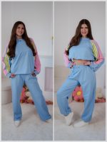 Komplet dresowy 3w1 bluza bejsbolówka, top i spodnie PasteLove błękitny