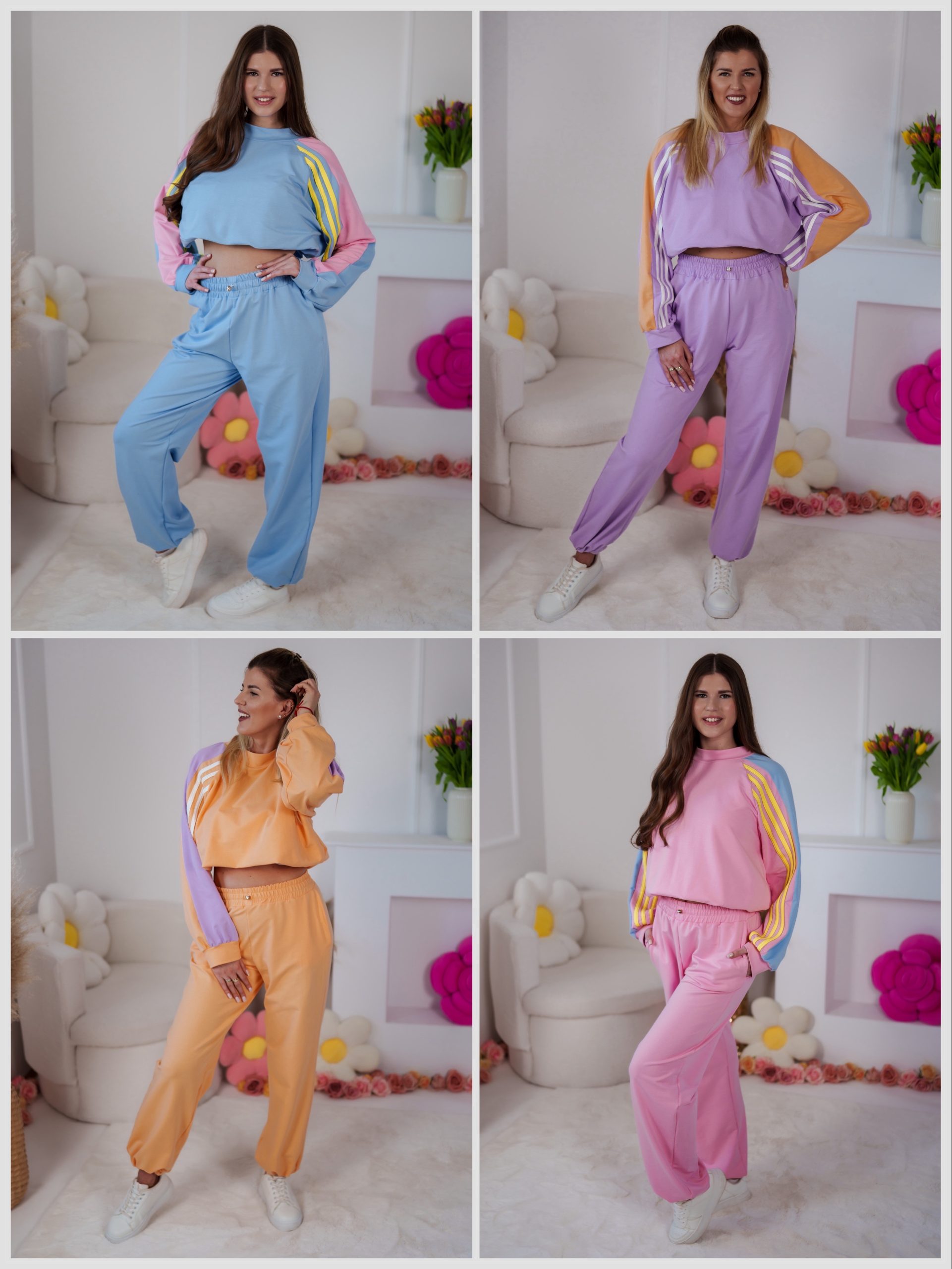 Wybierz dowolną bluzę Color Block z lampasami i reglanowymi rękawami oraz z cienkiej dzianiny (dzianina pętelka). Tabele rozmiarów oraz więcej zdjęć każdej z bluz znajdziesz w kompletach dresowych na naszej stronie (dostępne w kategoriach „dresy” oraz „komplety”)