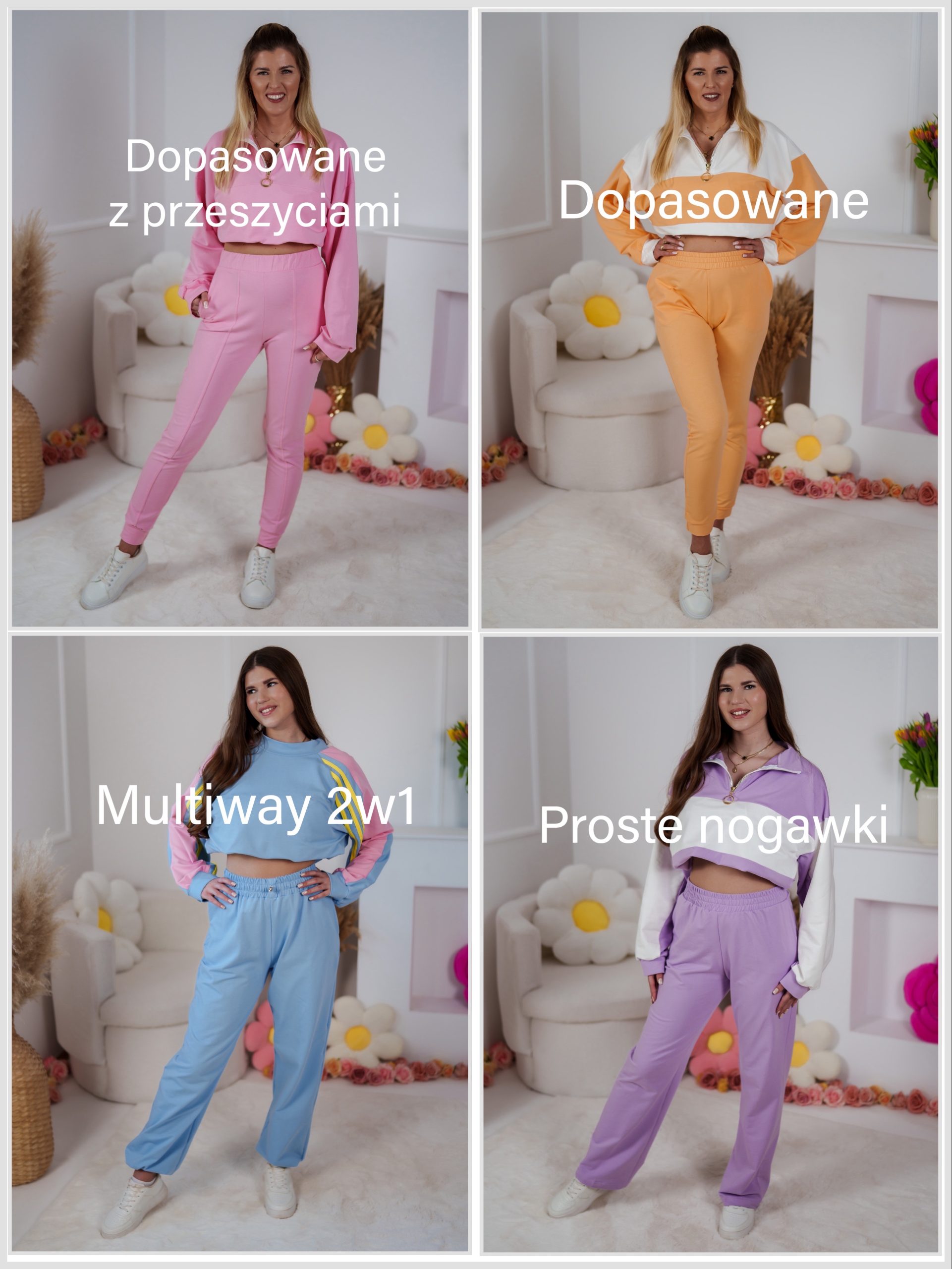 Wybierz dowolne spodnie z cienkiej dzianiny. Tabele rozmiarów oraz więcej zdjęć spodni znajdziesz w kompletach dresowych na naszej stronie (dostępne w kategoriach „dresy” oraz „komplety”)