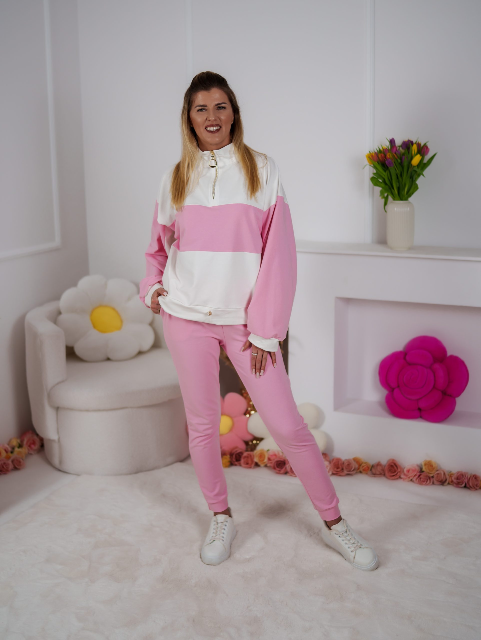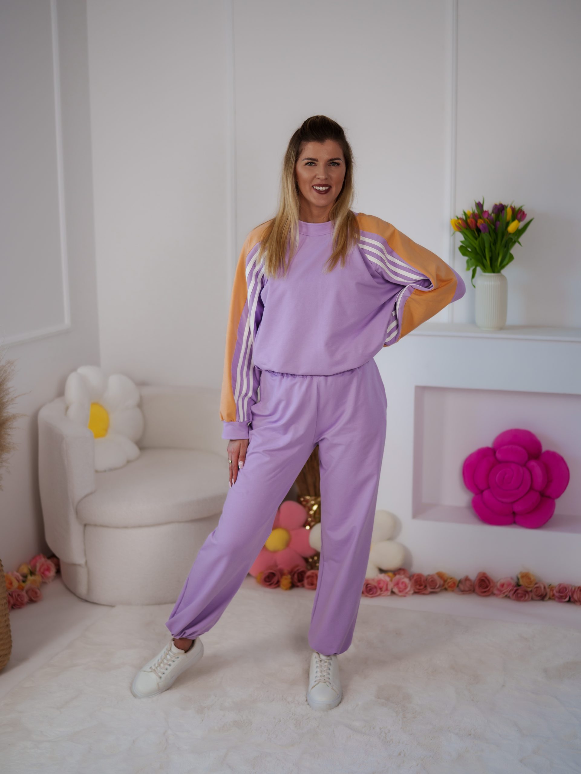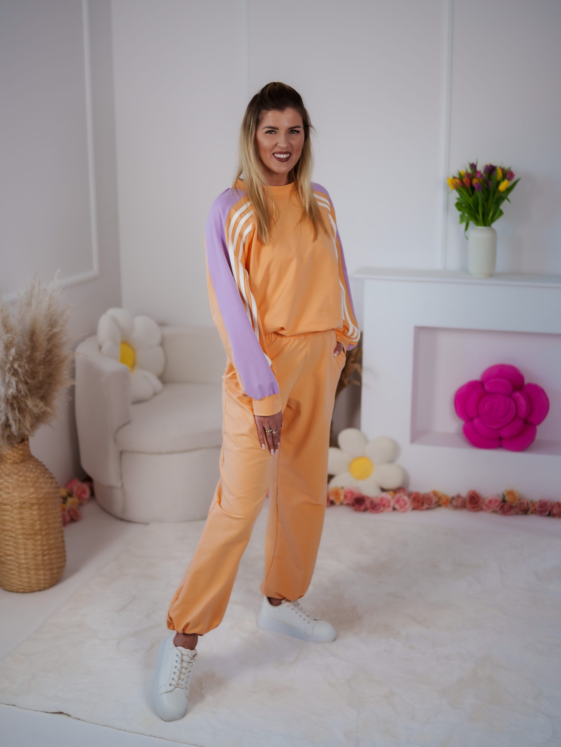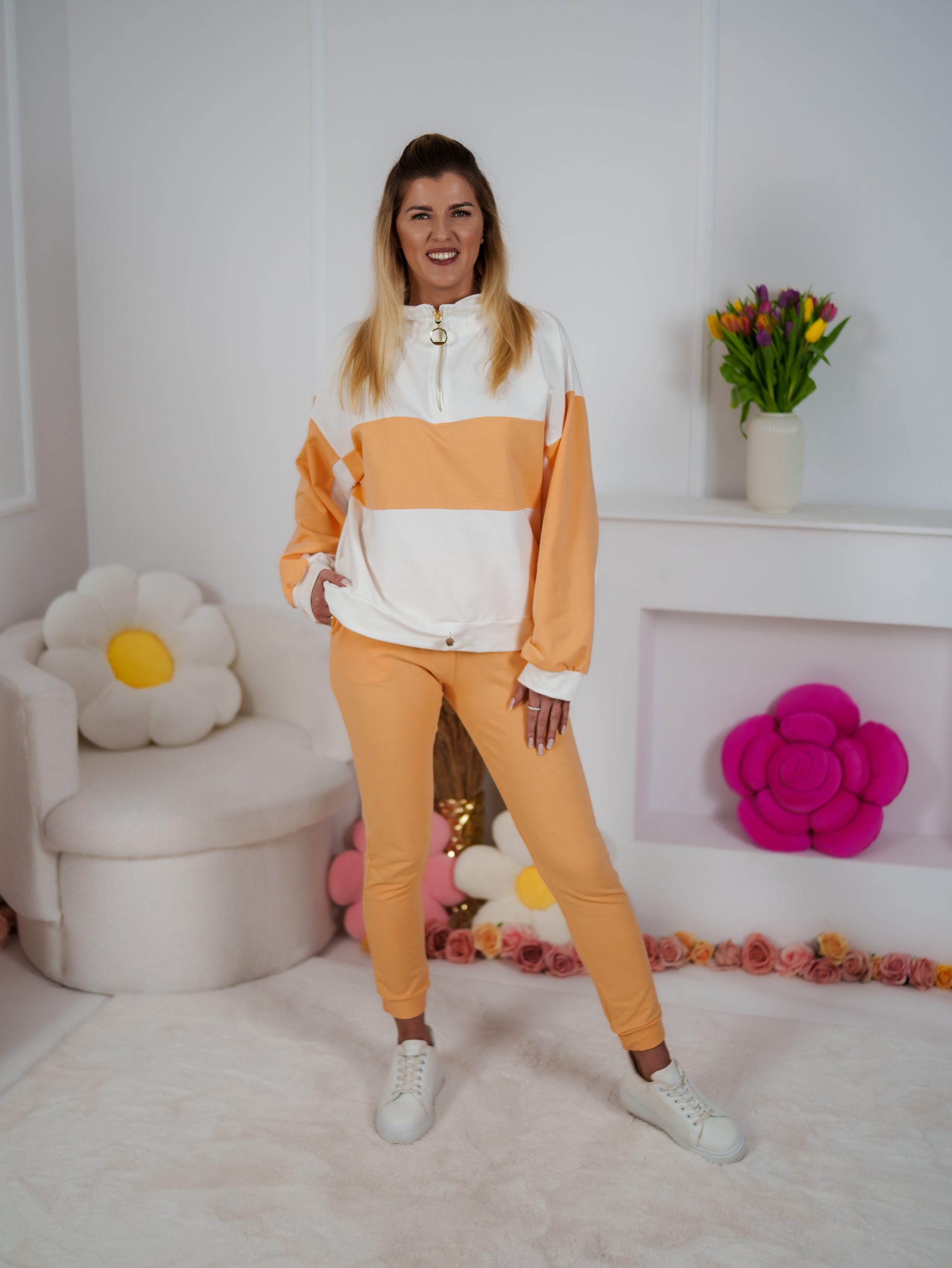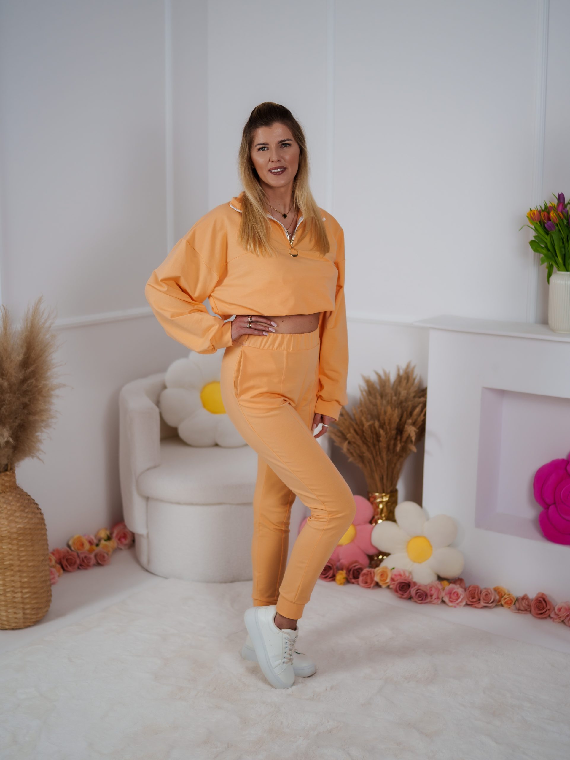 Komplet dresowy 3w1 bluza ze złotymi napami, legginsy i top PasteLove pomarańczowy