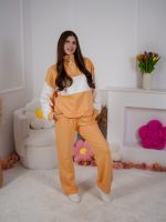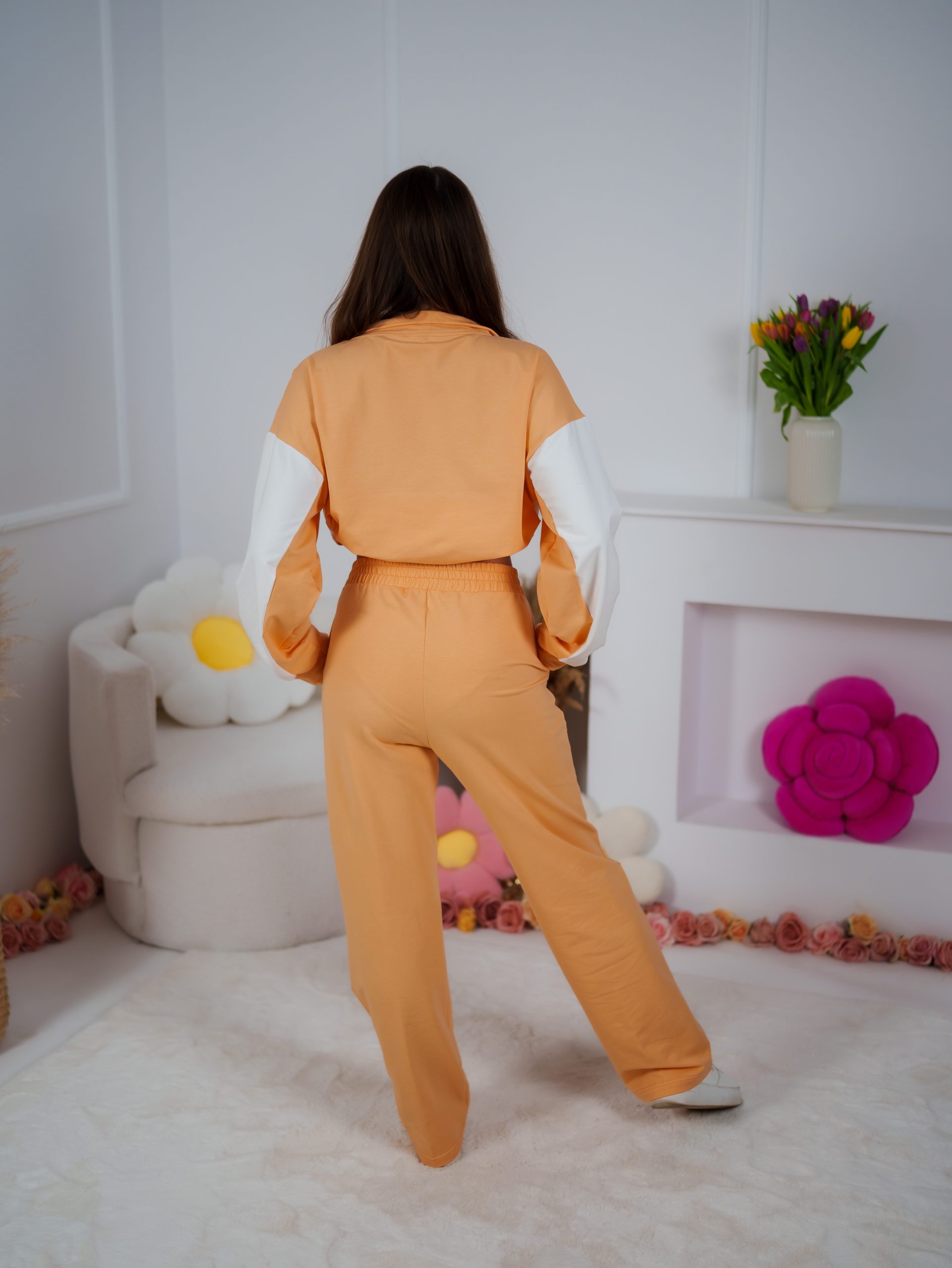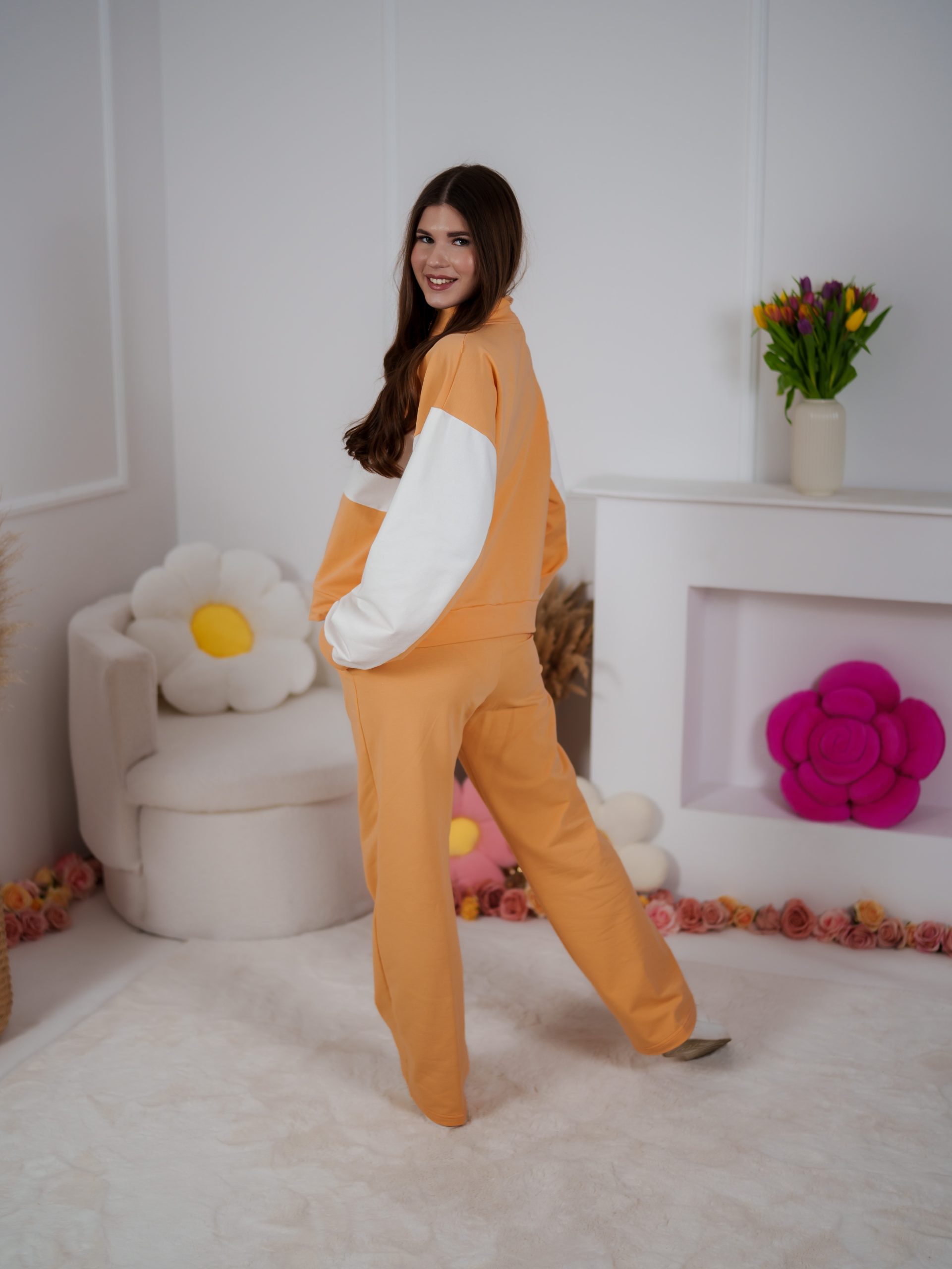 Strona główna Dresy Dzianinowy komplet dresowy Color Block bluza Multiway 2w1 i spodnie z prostą nogawką pomarańczowy-ecru