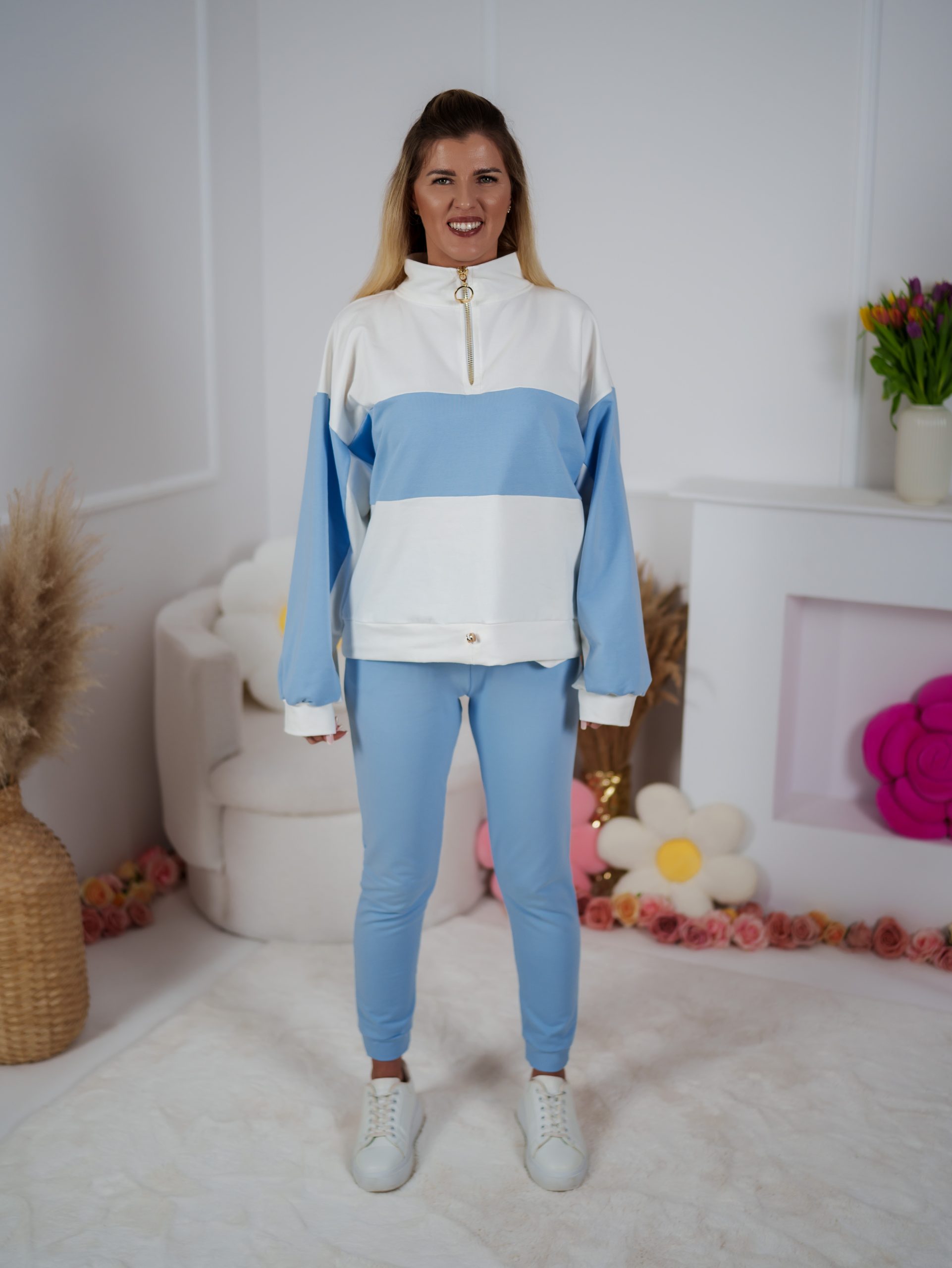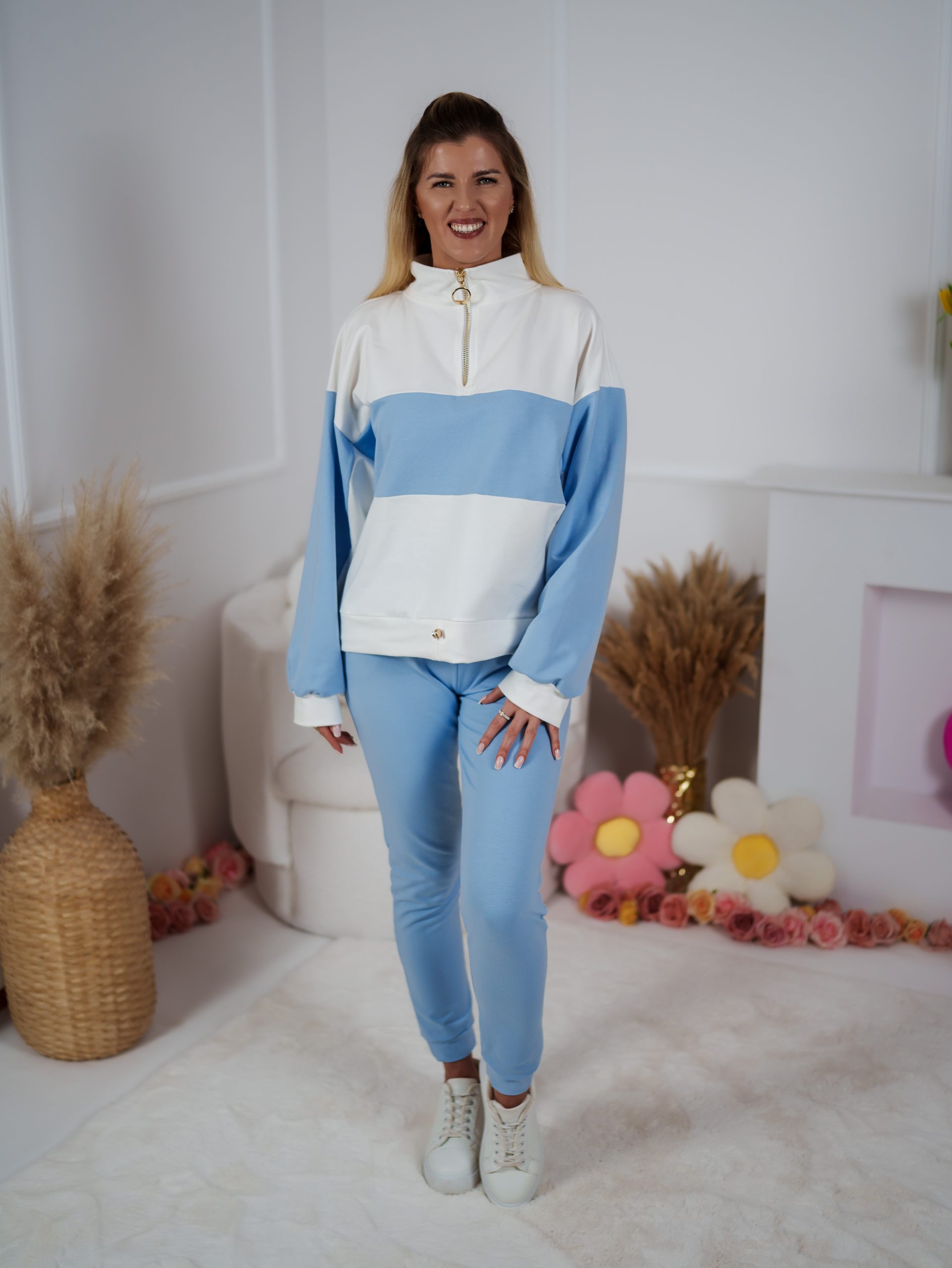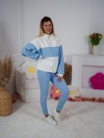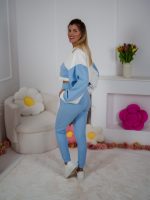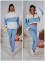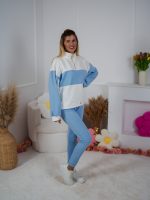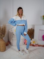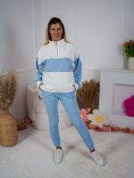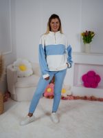 Strona główna Dresy Dzianinowy komplet dresowy Color Block bluza Multiway 2w1 ze stójką i dopasowane spodnie ecru-błękitny