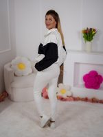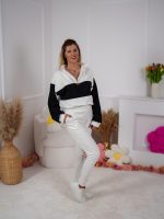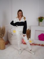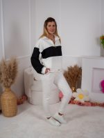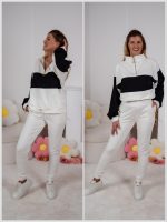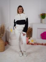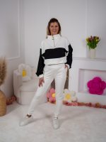 Strona główna Dresy Dzianinowy komplet dresowy Color Block bluza Multiway 2w1 ze stójką i dopasowane spodnie ecru-czarny