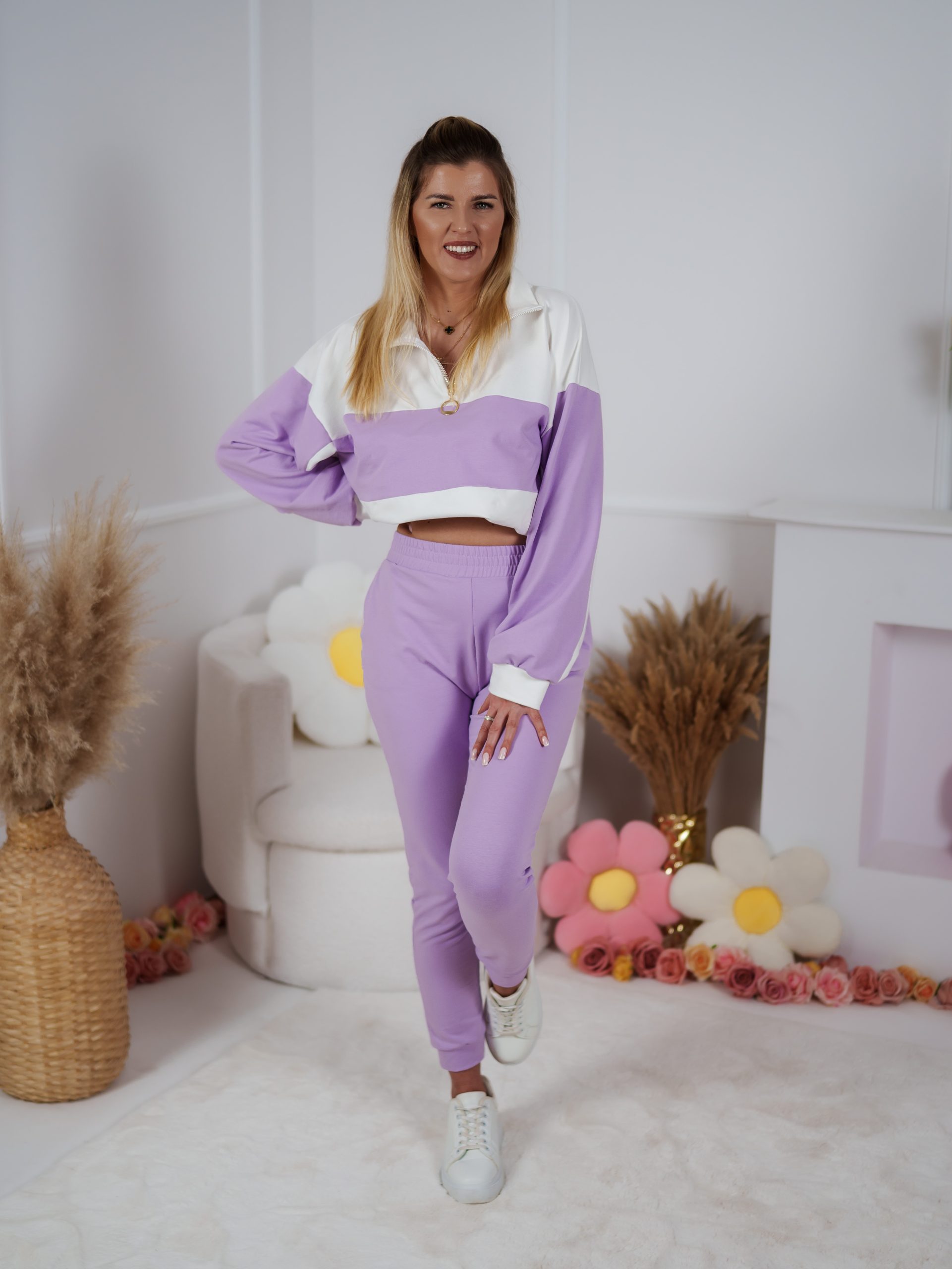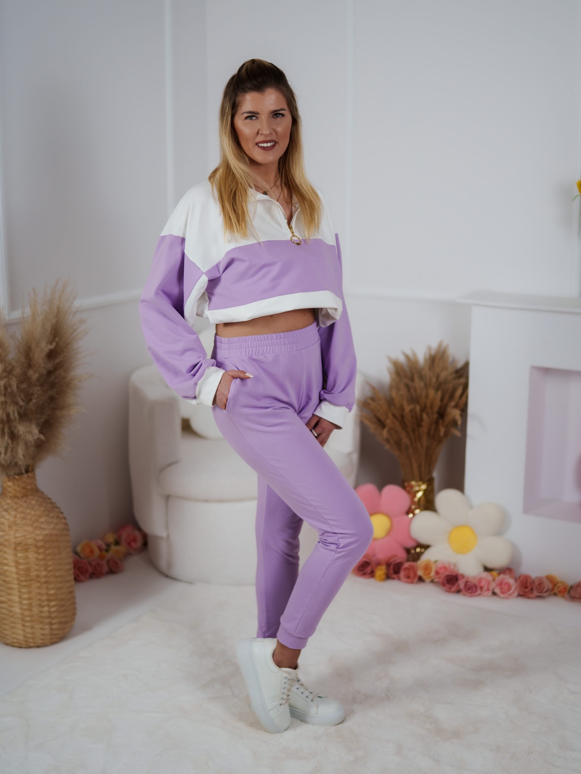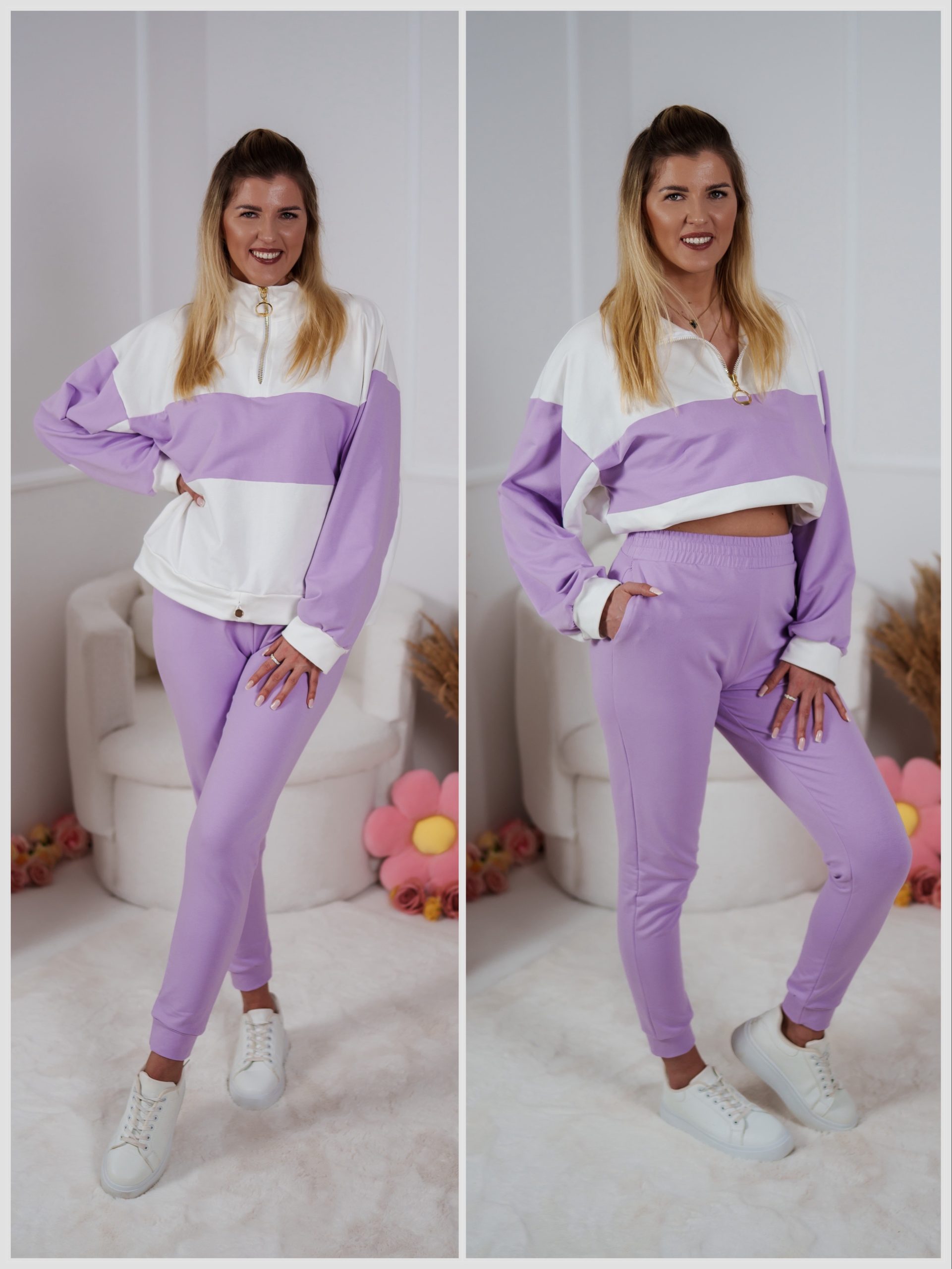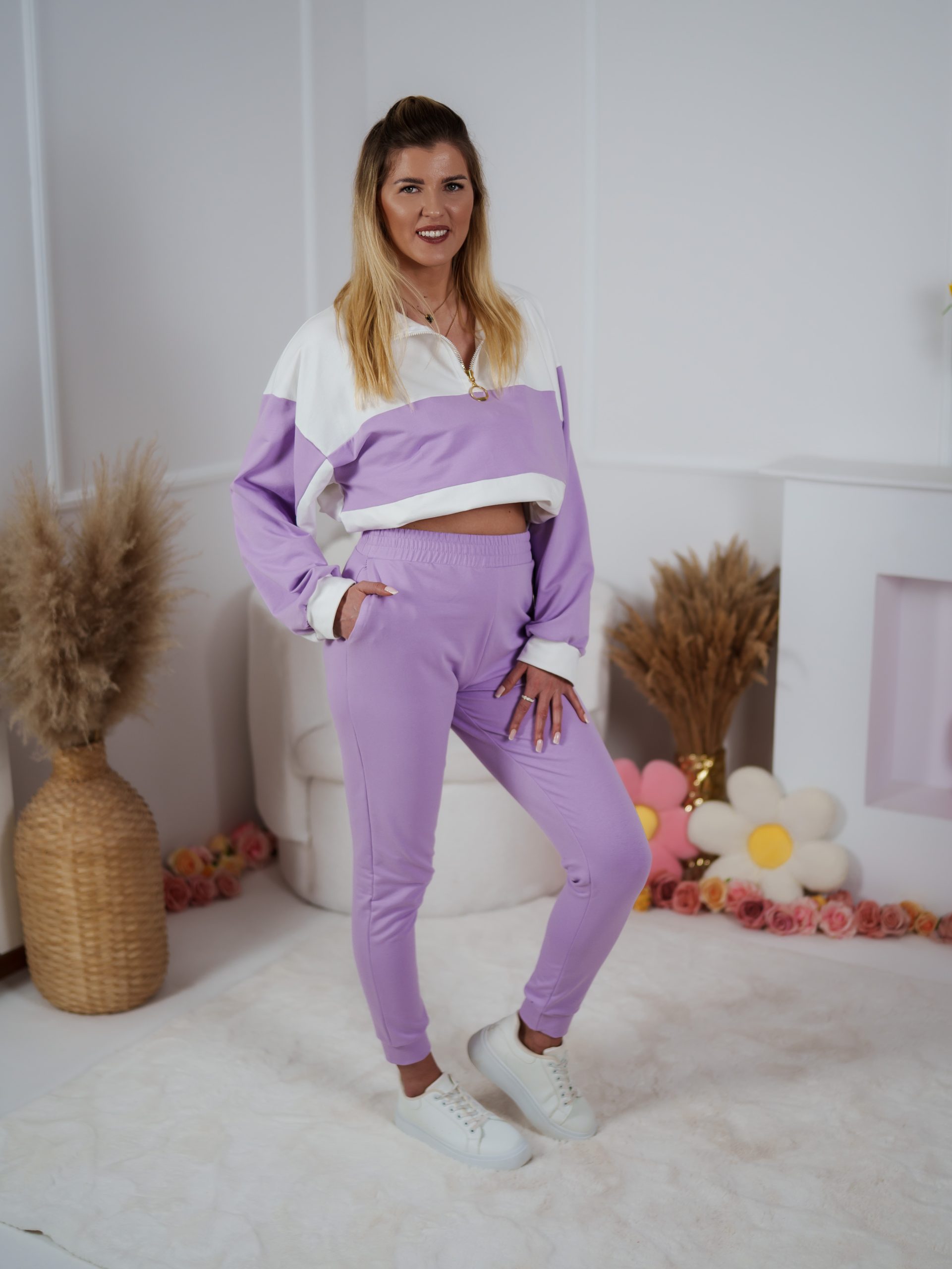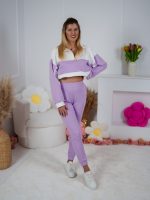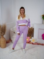 Komplet dresowy 3w1 bluza bejsbolówka, top i spodnie PasteLove liliowy