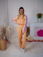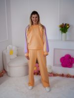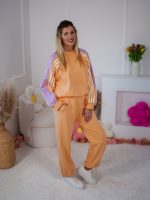 Strona główna Dresy Dzianinowy komplet dresowy Color Block z lampasami i stoperami pomarańczowo-liliowy