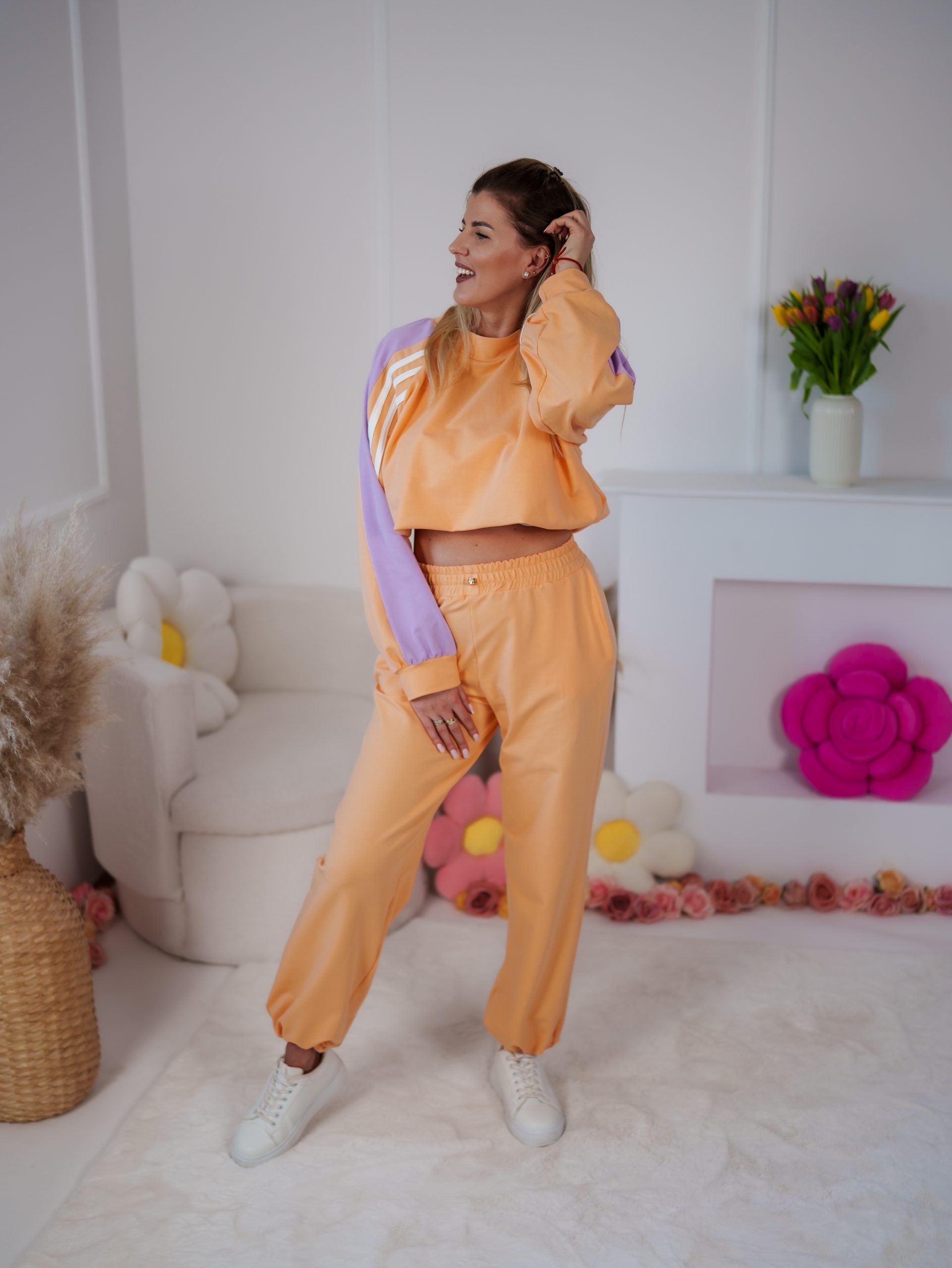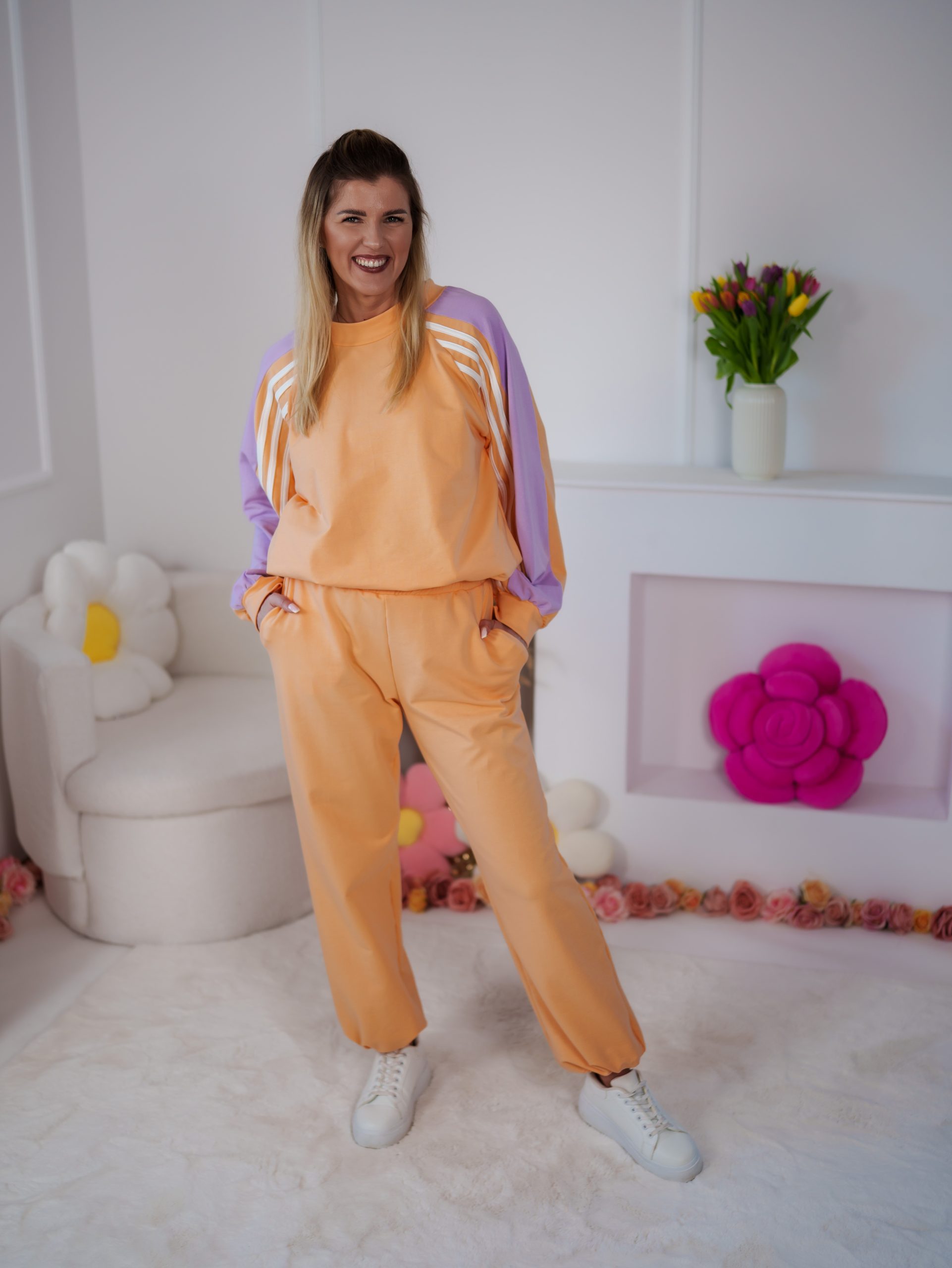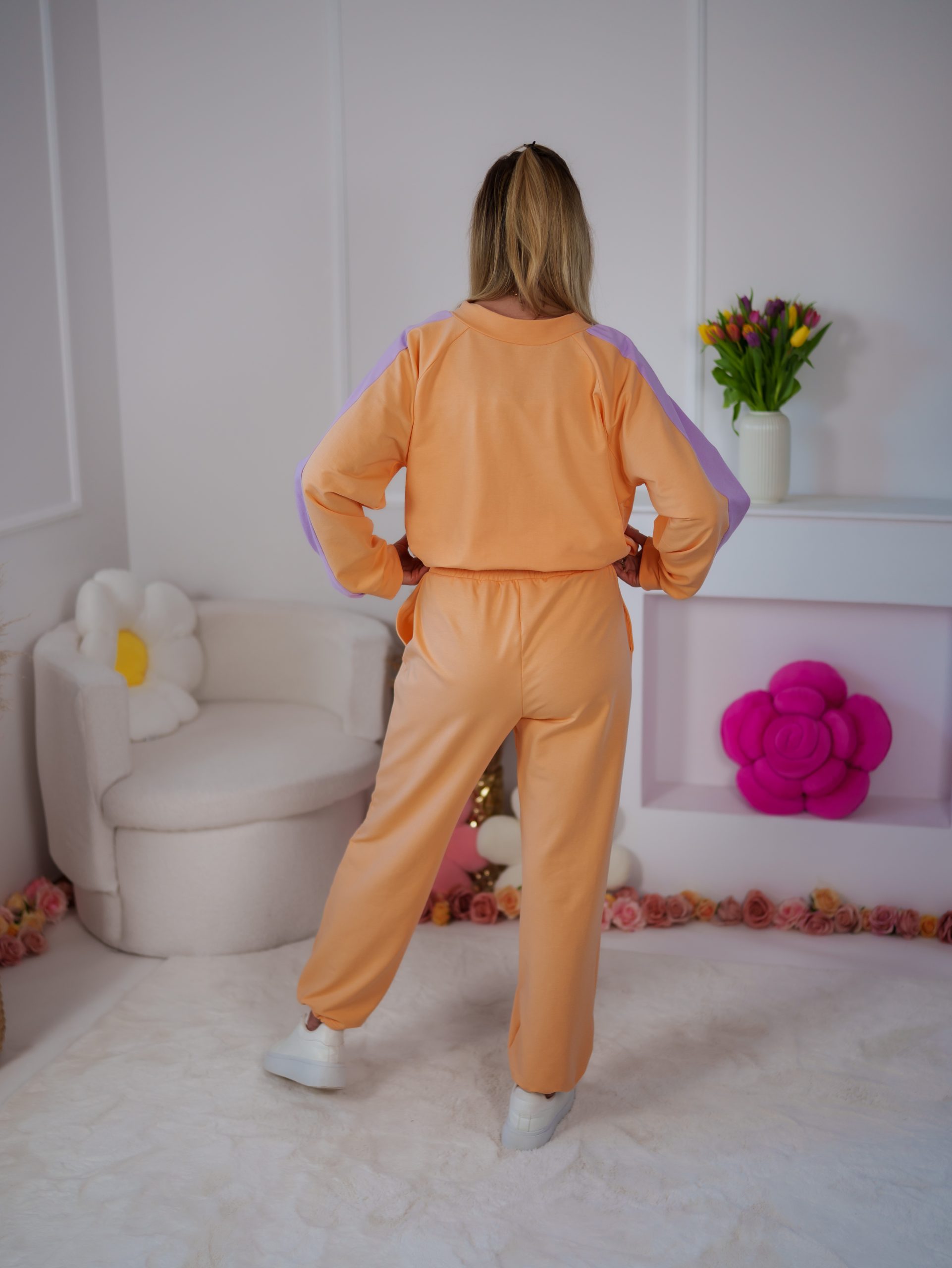 Dzianinowy komplet dresowy Color Block z lampasami i stoperami liliowo-pomarańczowy