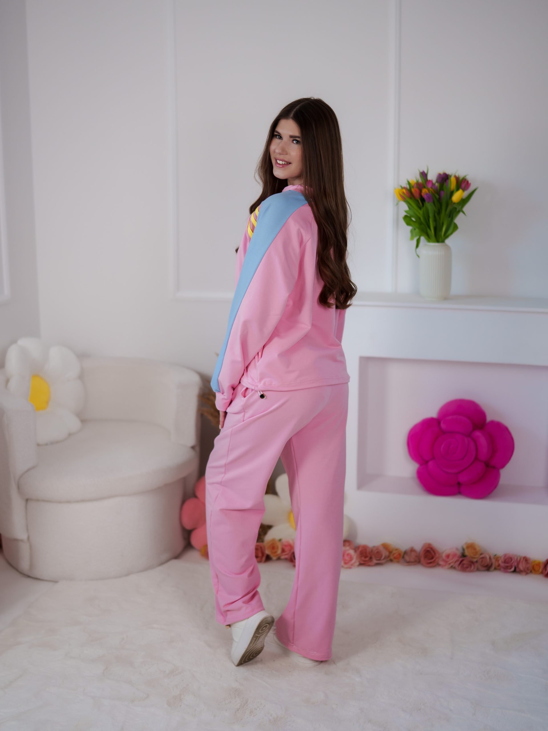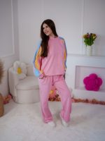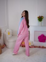 Strona główna Dresy Dzianinowy komplet dresowy Color Block z lampasami i stoperami różowo-błękitny
