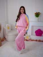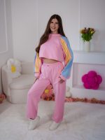 Dzianinowy komplet dresowy Color Block z lampasami i stoperami różowo-błękitny