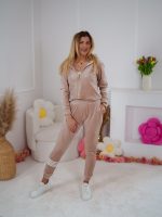 Strona główna Dresy Komplet dresowy z weluru Velvet dopasowana rozpinana bluza i spodnie z lampasami beż