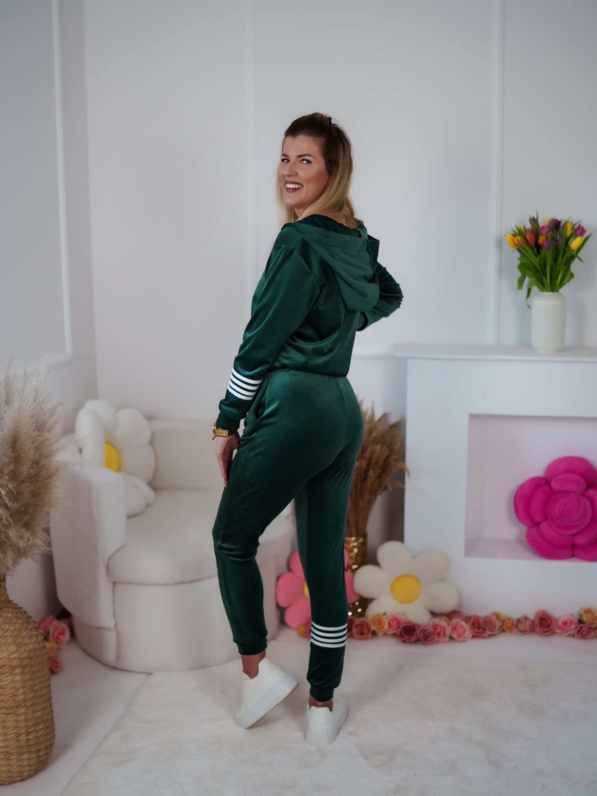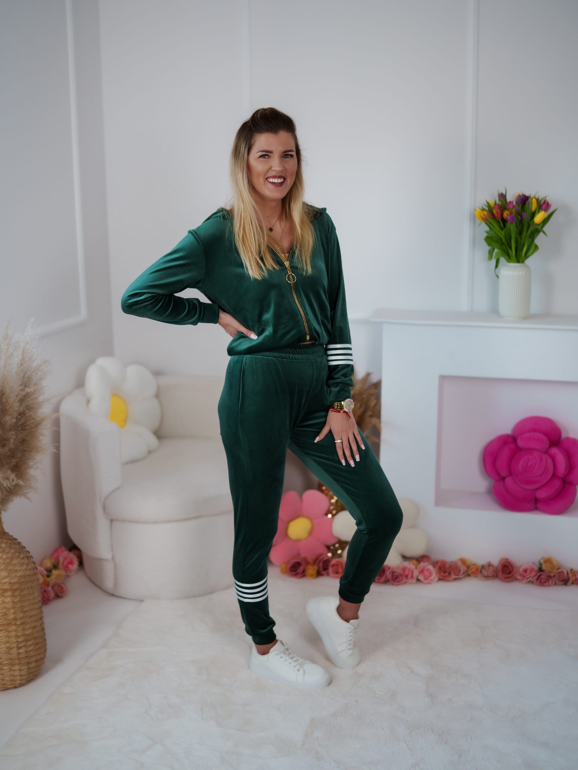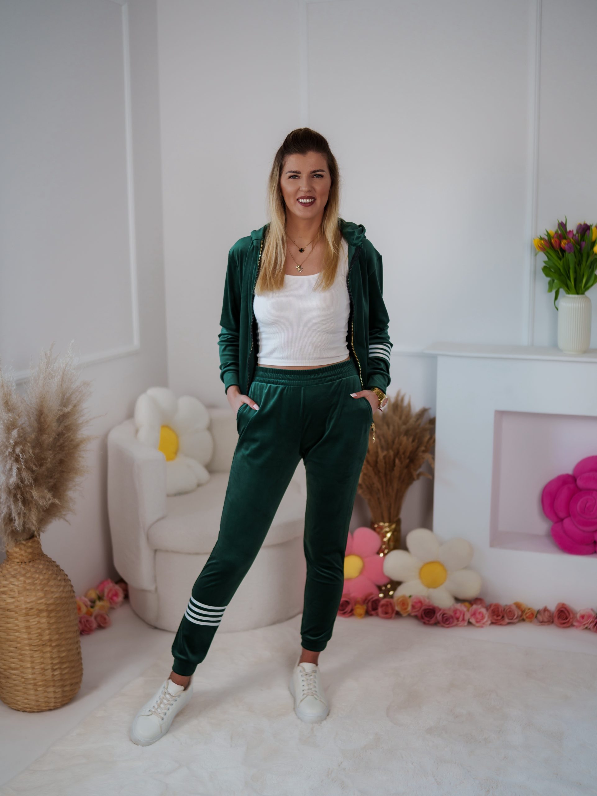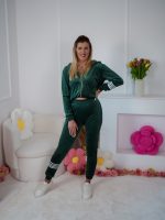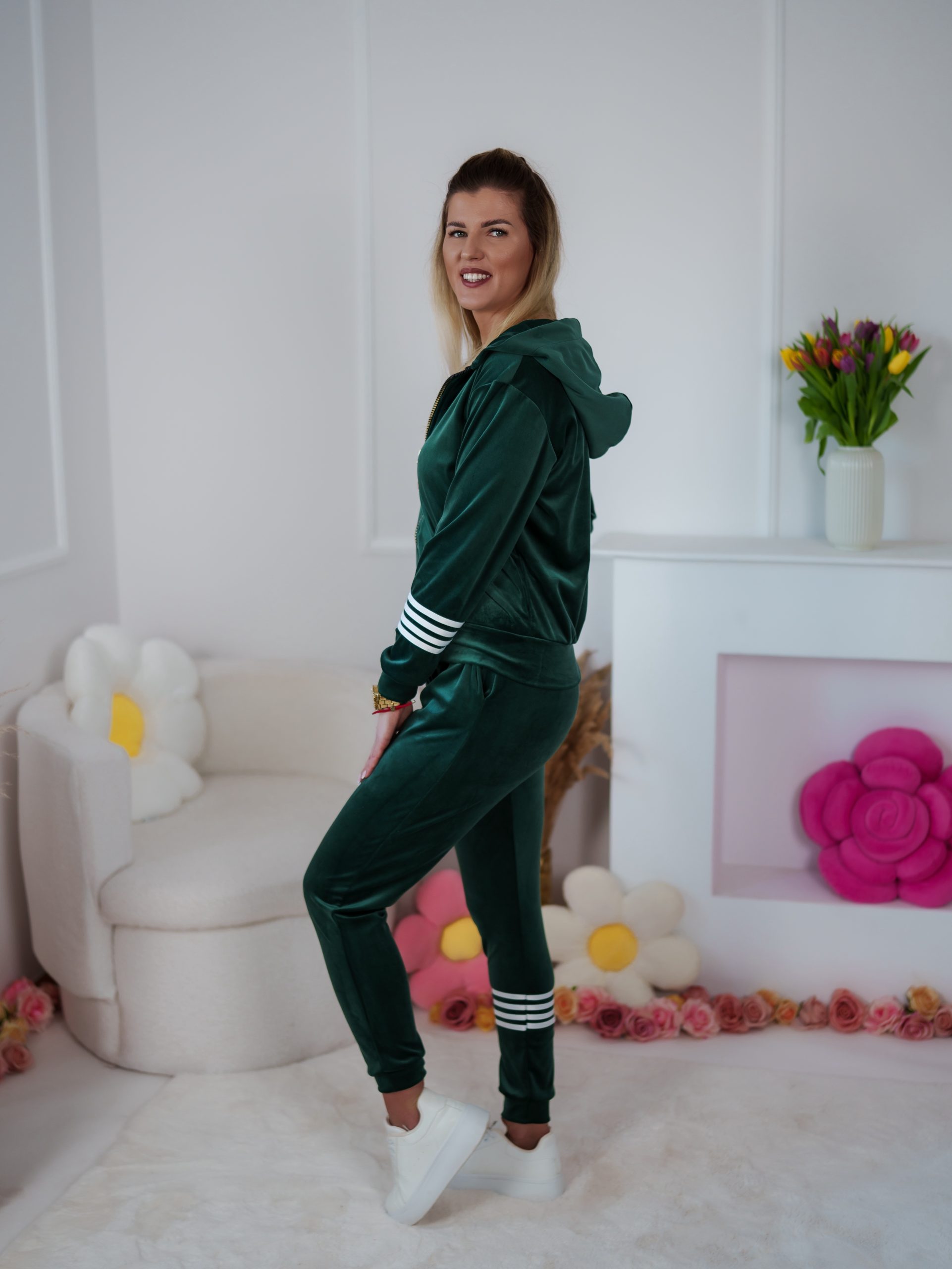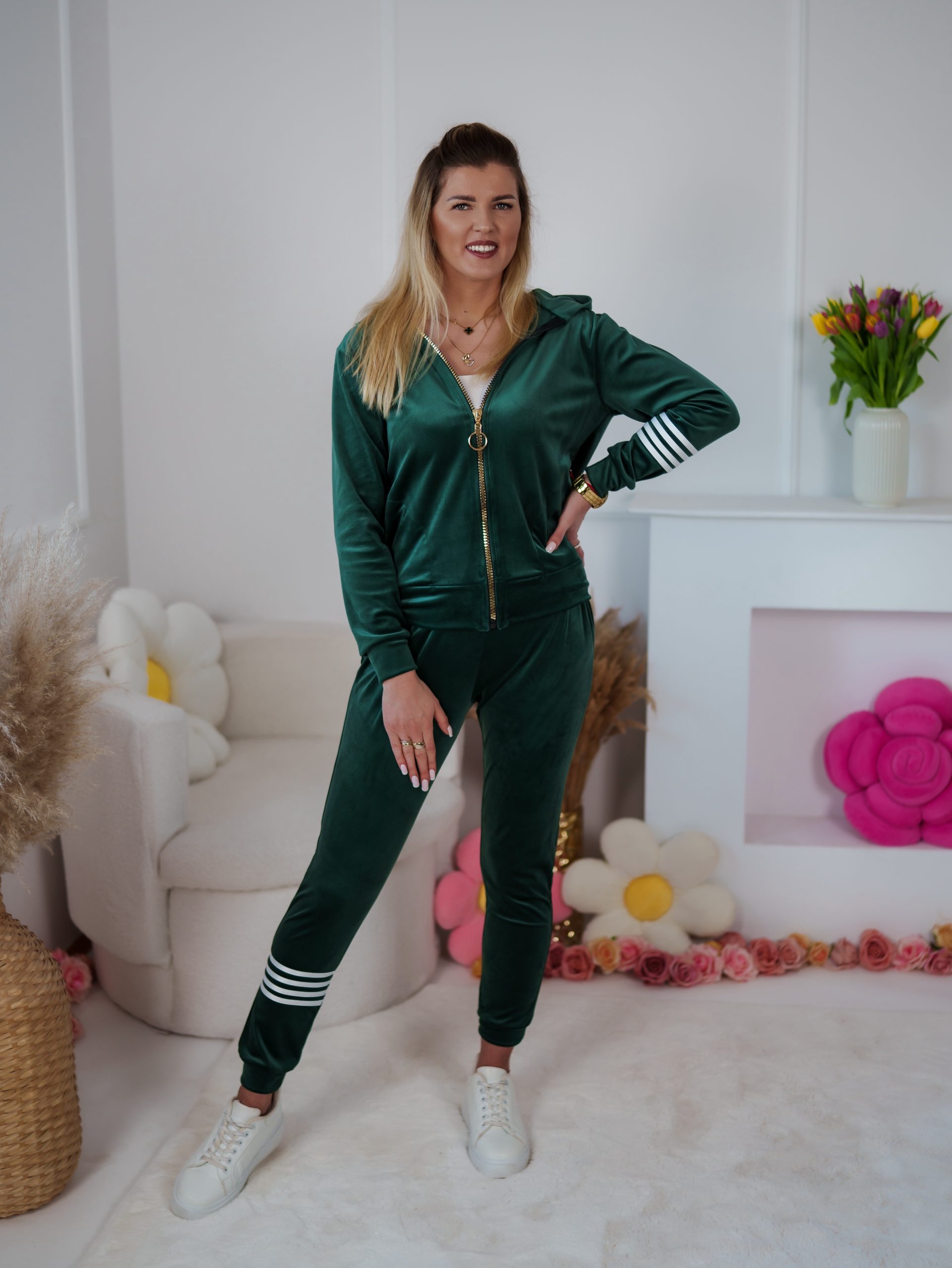 Strona główna Dresy Komplet dresowy z weluru Velvet dopasowana rozpinana bluza i spodnie z lampasami butelkowa zieleń