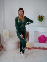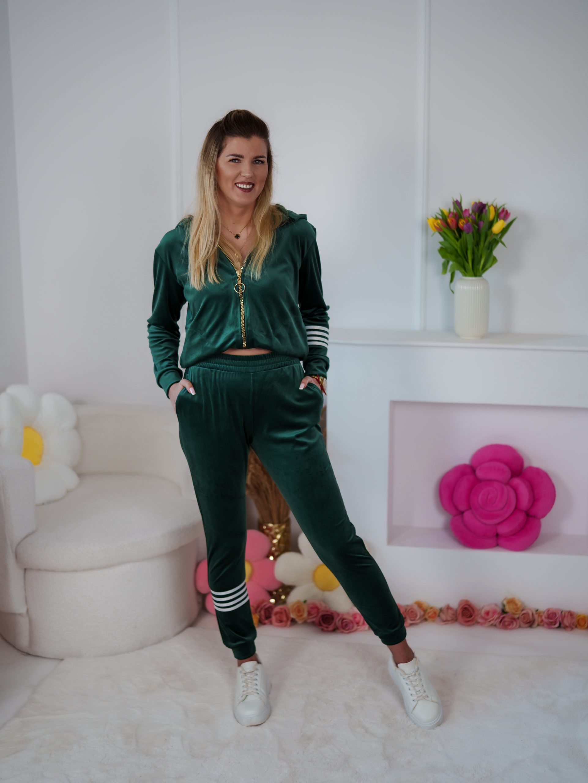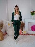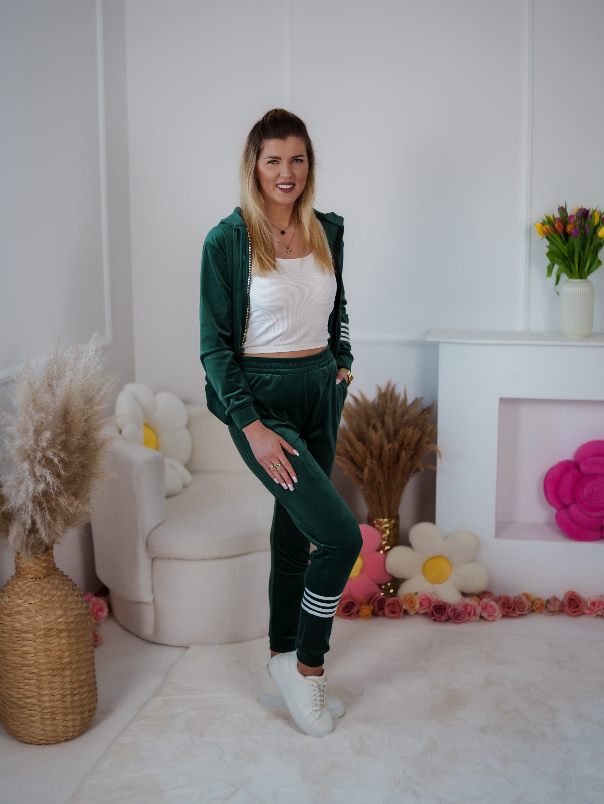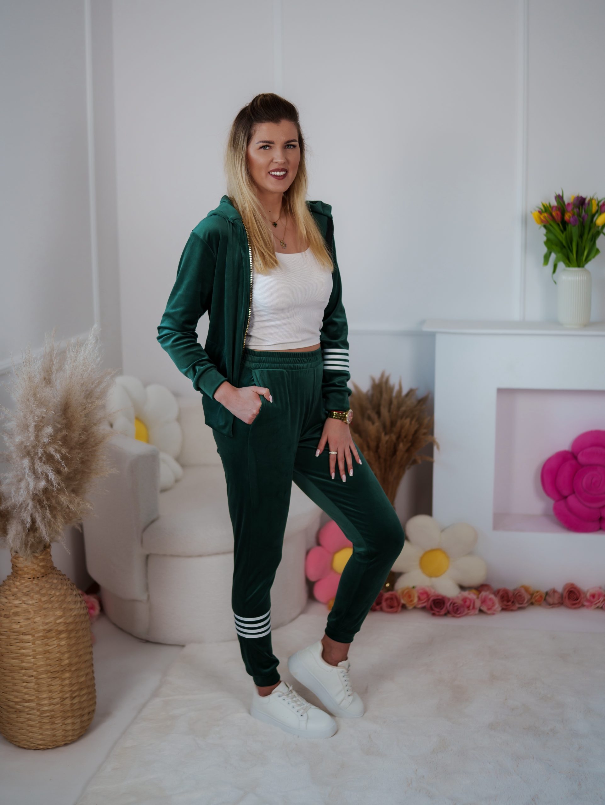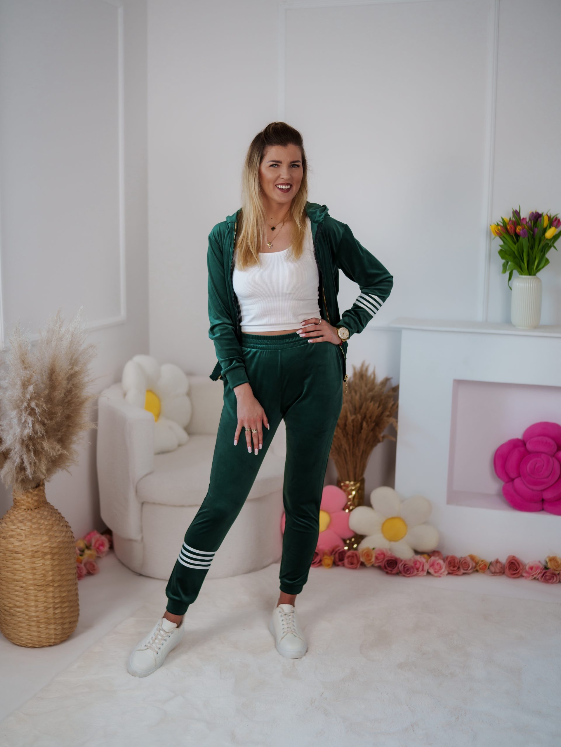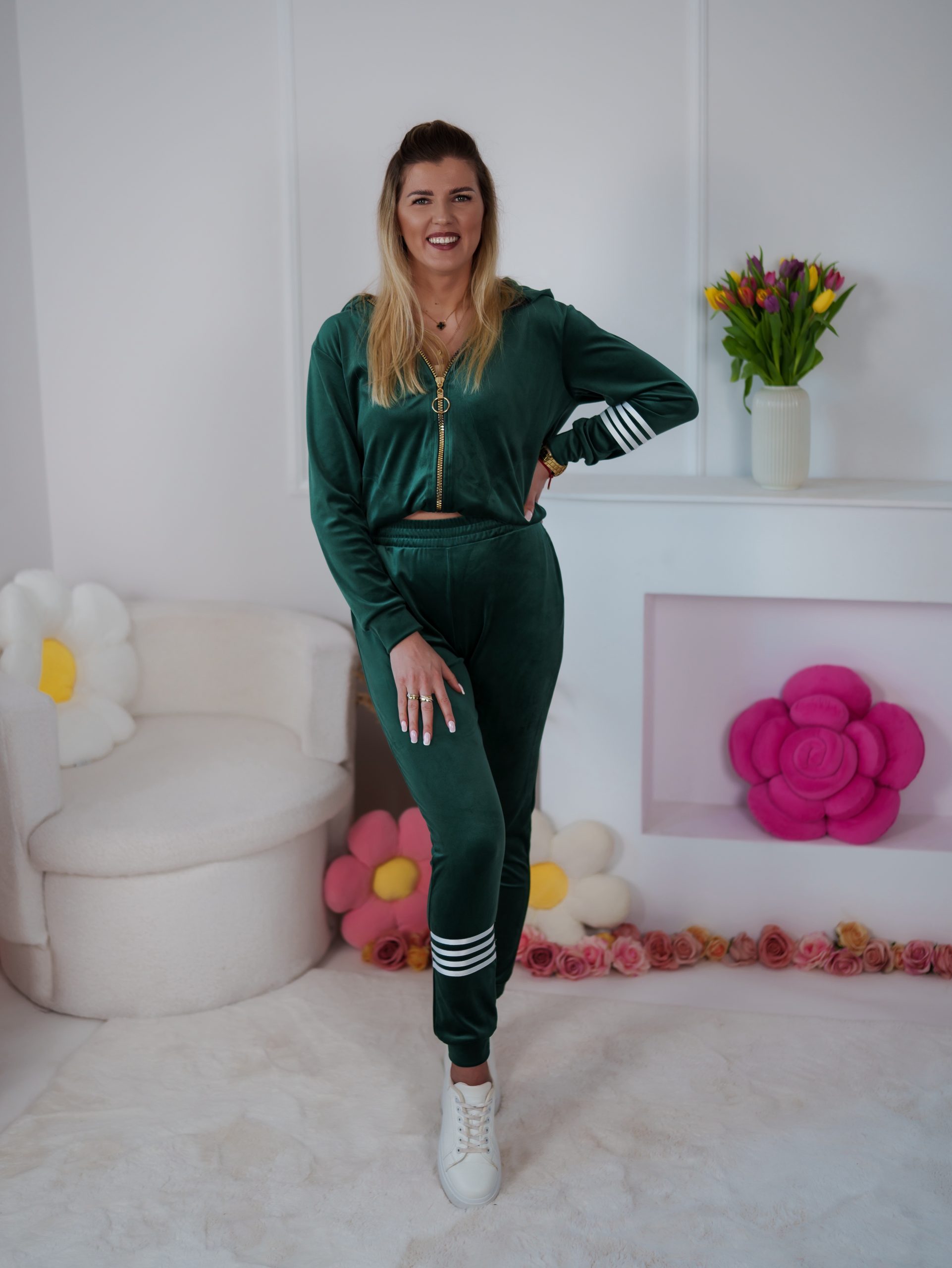 Strona główna Dresy Komplet dresowy z weluru Velvet dopasowana rozpinana bluza i spodnie z lampasami butelkowa zieleń