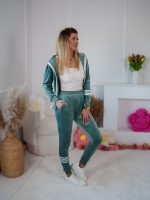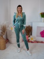 Strona główna Dresy Komplet dresowy z weluru Velvet dopasowana rozpinana bluza i spodnie z lampasami szałwia