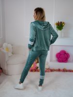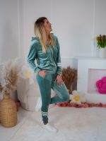 Komplet dresowy z weluru Velvet dopasowana rozpinana bluza i spodnie z lampasami szałwia