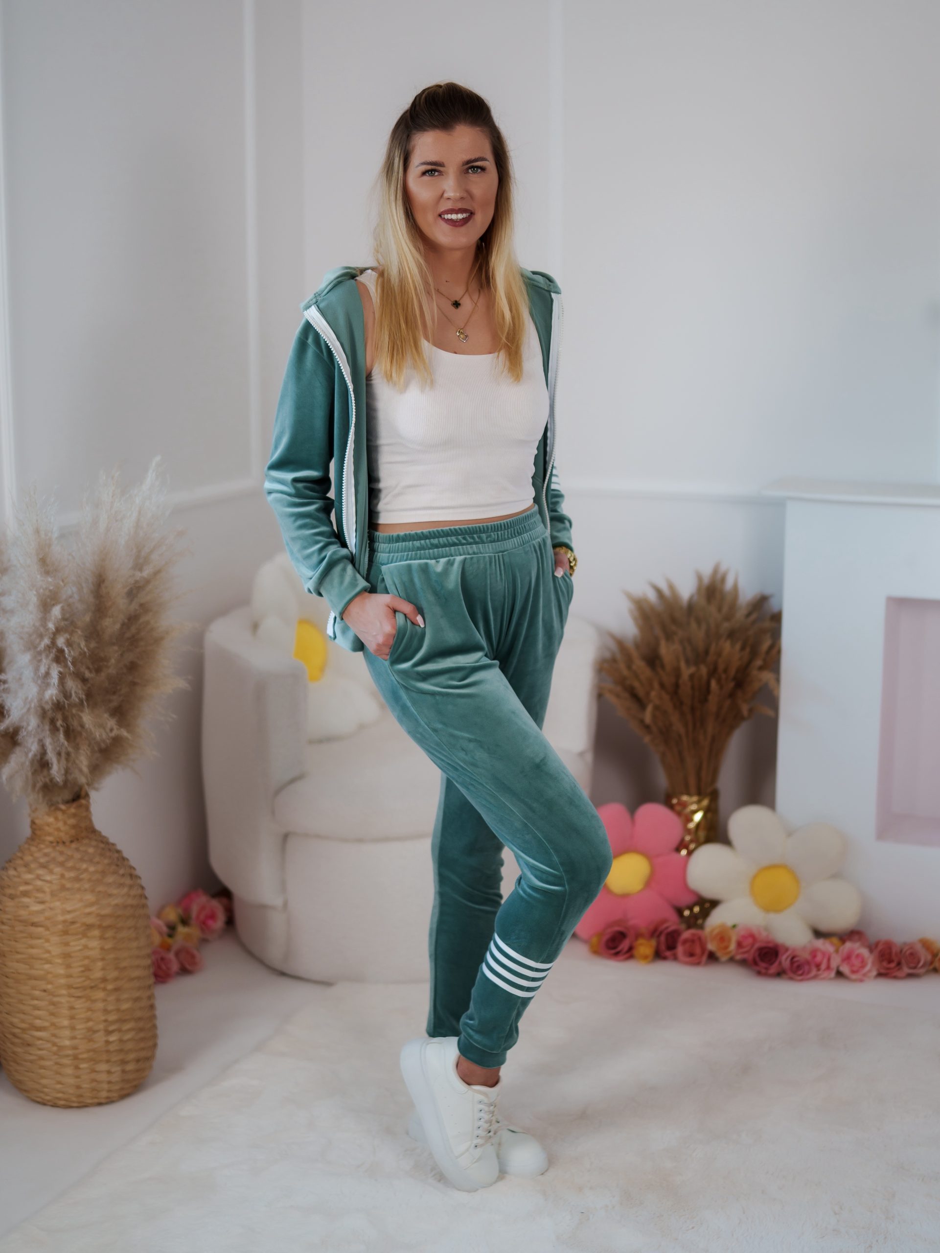 Komplet dresowy Velvet to idealny wybór na każdą porę roku – sprawdzi się zarówno w chłodniejsze dni, jak i podczas wieczornego relaksu – raz założysz i nie będziesz chciała zdjąć 💫