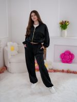 Komplet Dresowy z weluru Velvet Multiway 2w1 rozpinana bluza i spodnie ze stoperami czarny