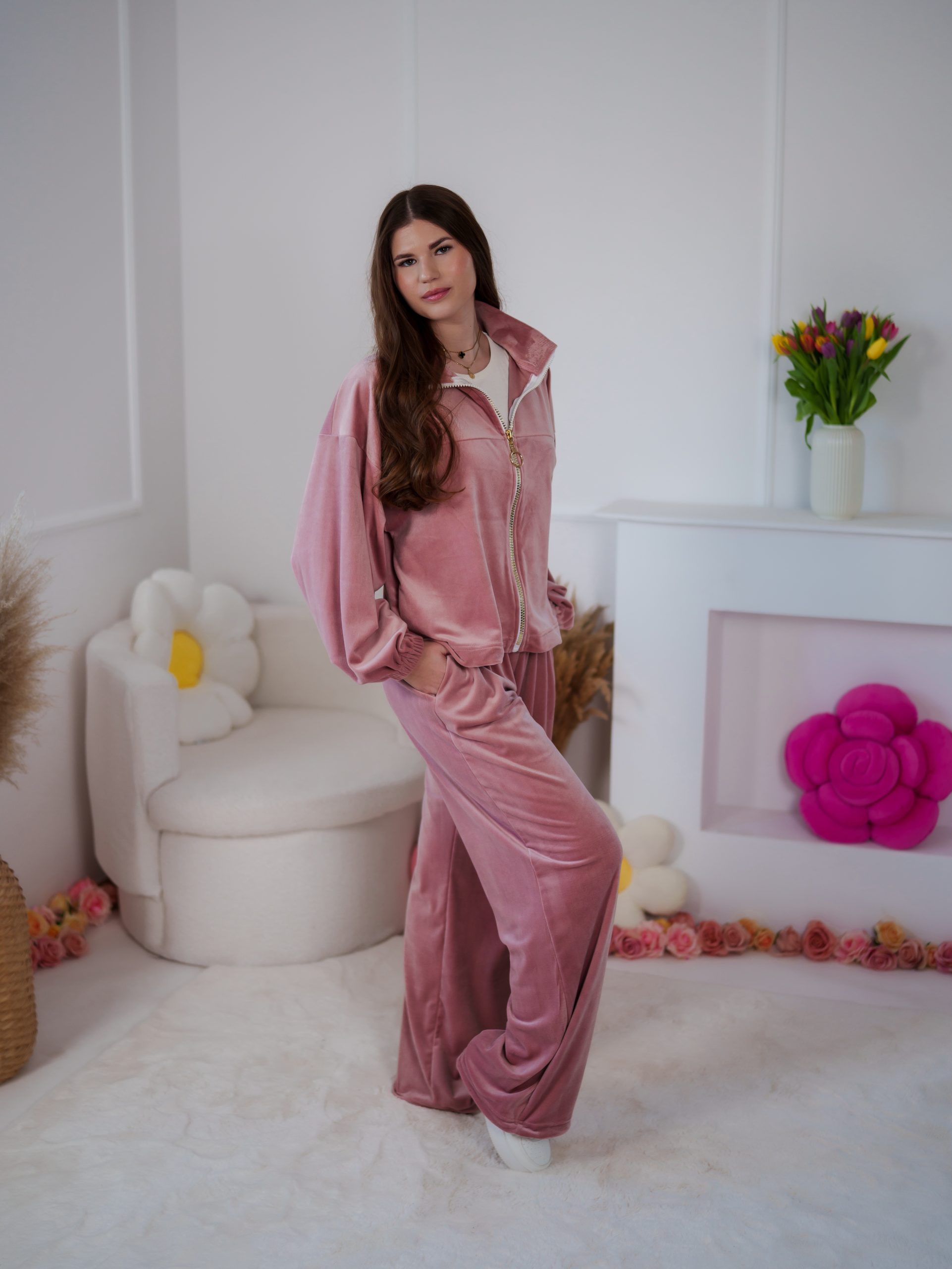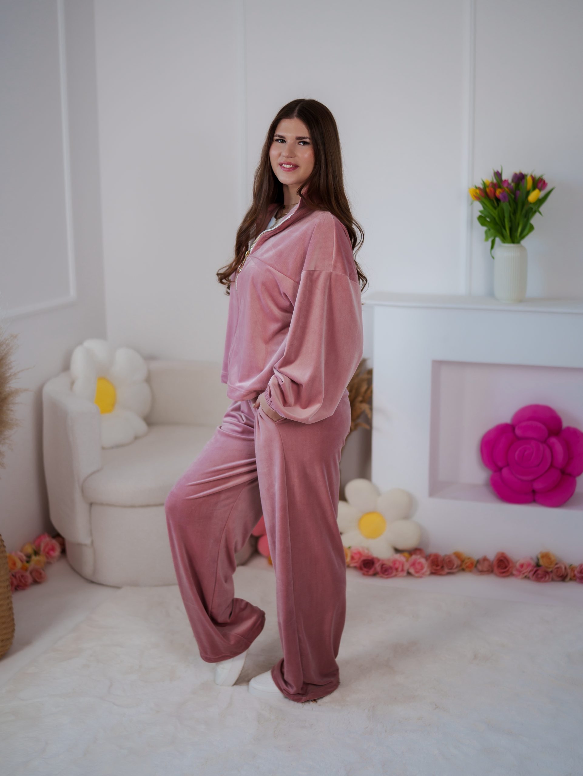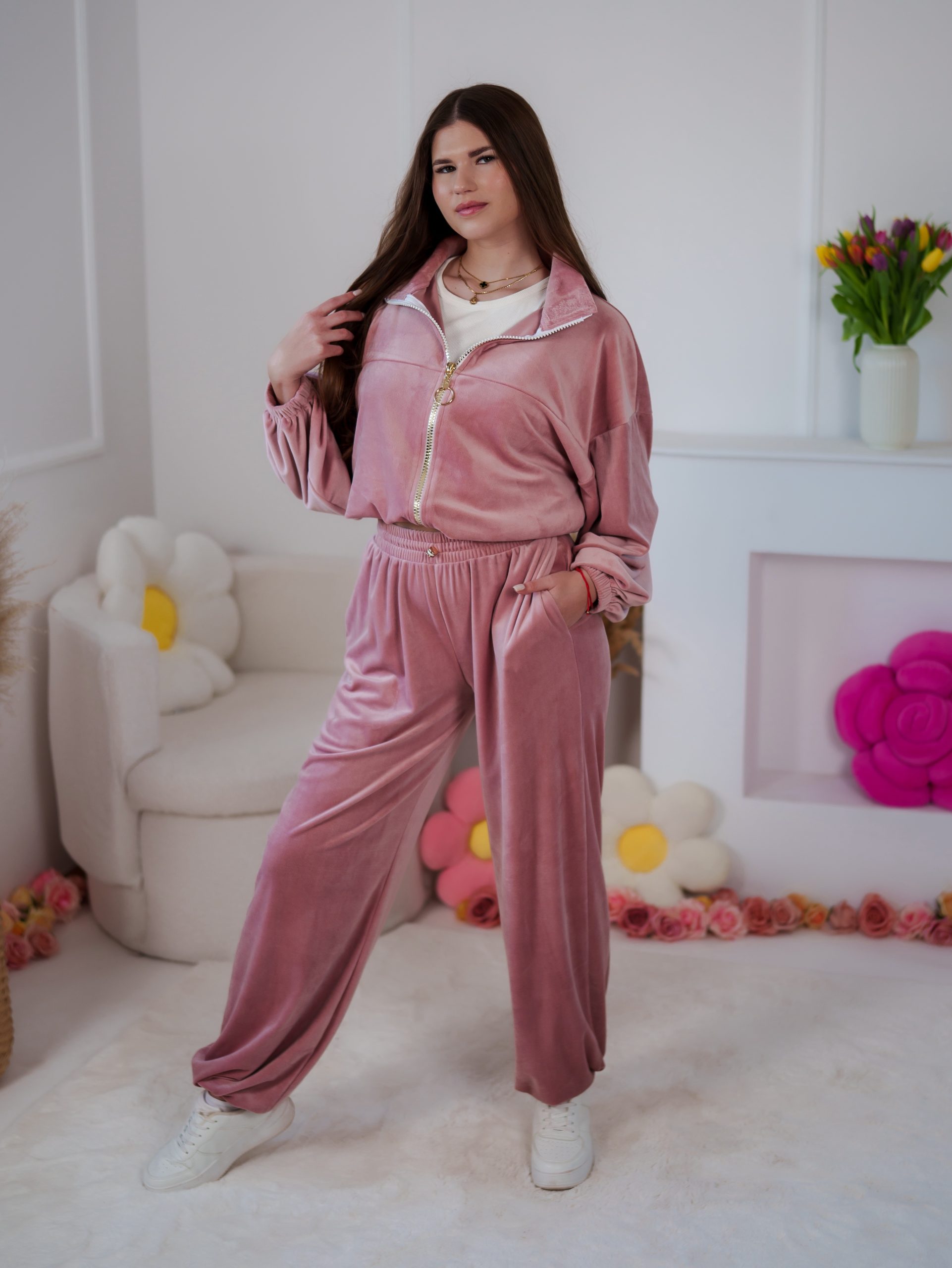 Komplet Dresowy z weluru Velvet Multiway 2w1 rozpinana bluza i spodnie ze stoperami róż