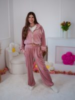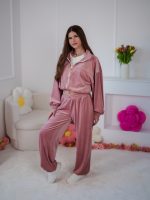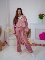 Strona główna Dresy Komplet Dresowy z weluru Velvet Multiway 2w1 rozpinana bluza i spodnie ze stoperami róż