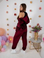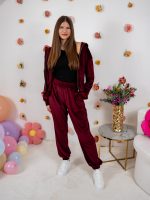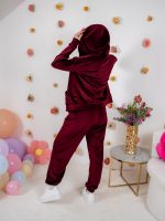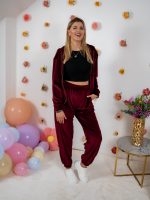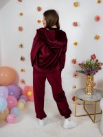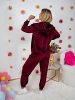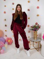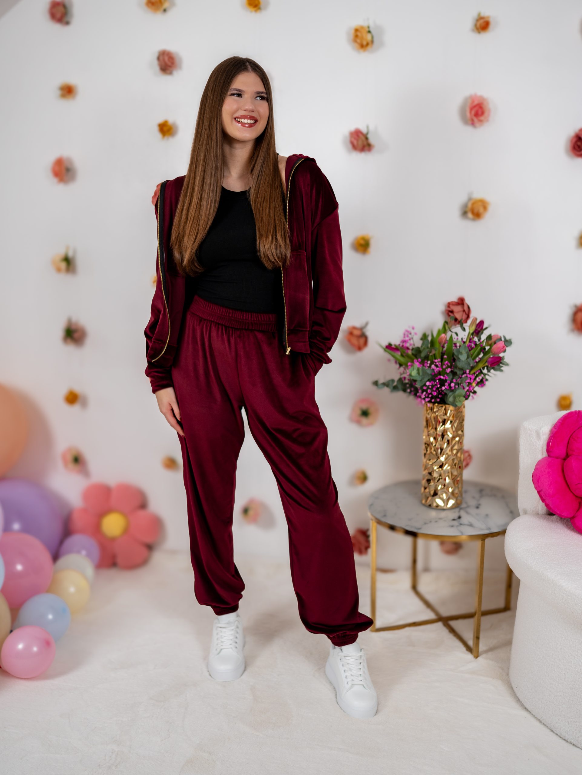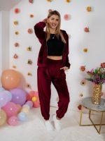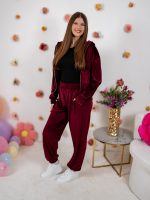 Strona główna Dresy Komplet dresowy z weluru Velvet rozpinana bluza z kapturem i spodnie oversize burgundowy