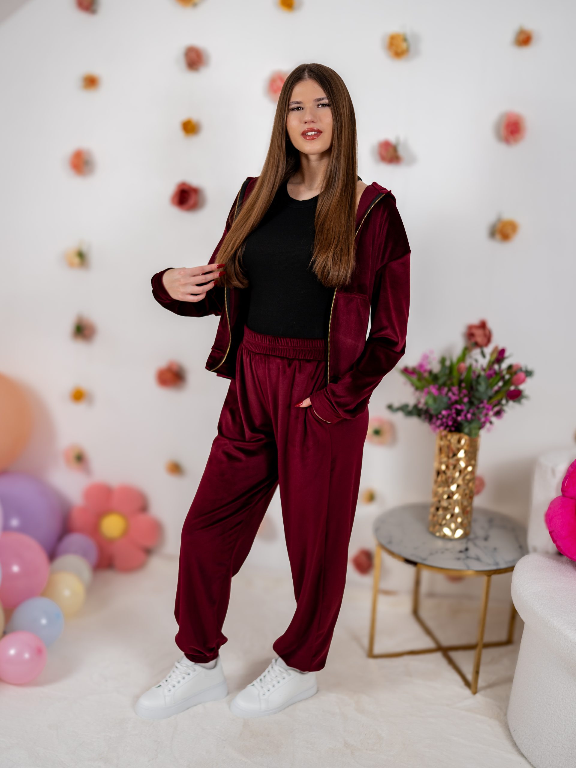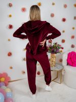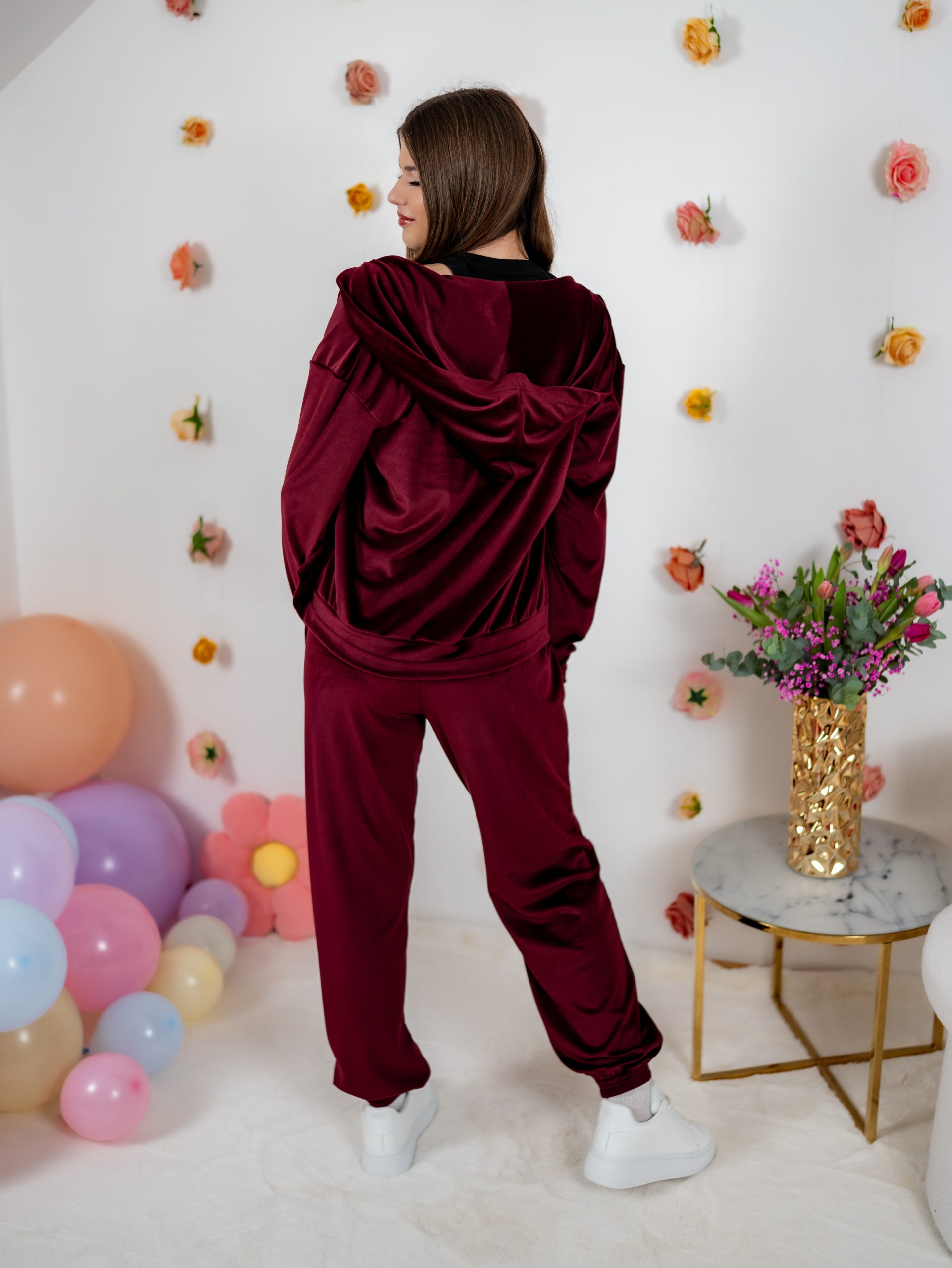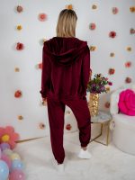 Komplet dresowy z weluru Velvet rozpinana bluza z kapturem i spodnie oversize burgundowy