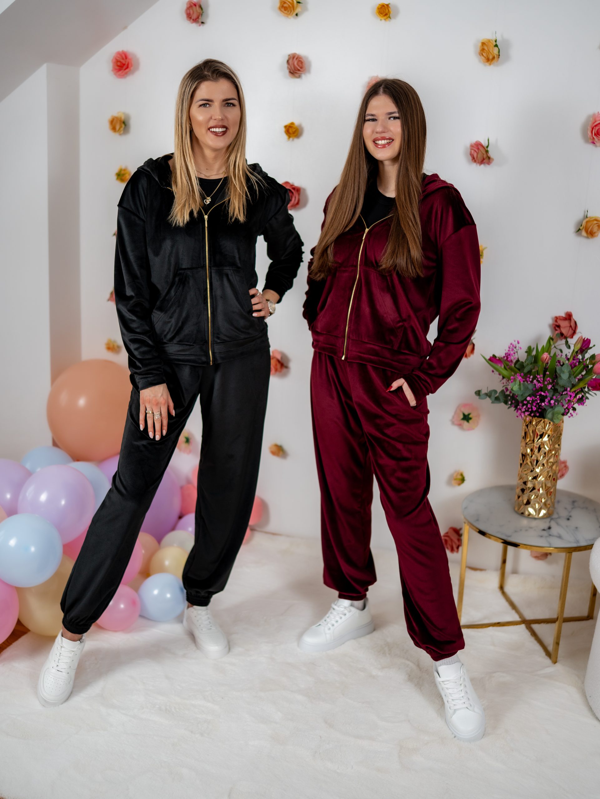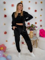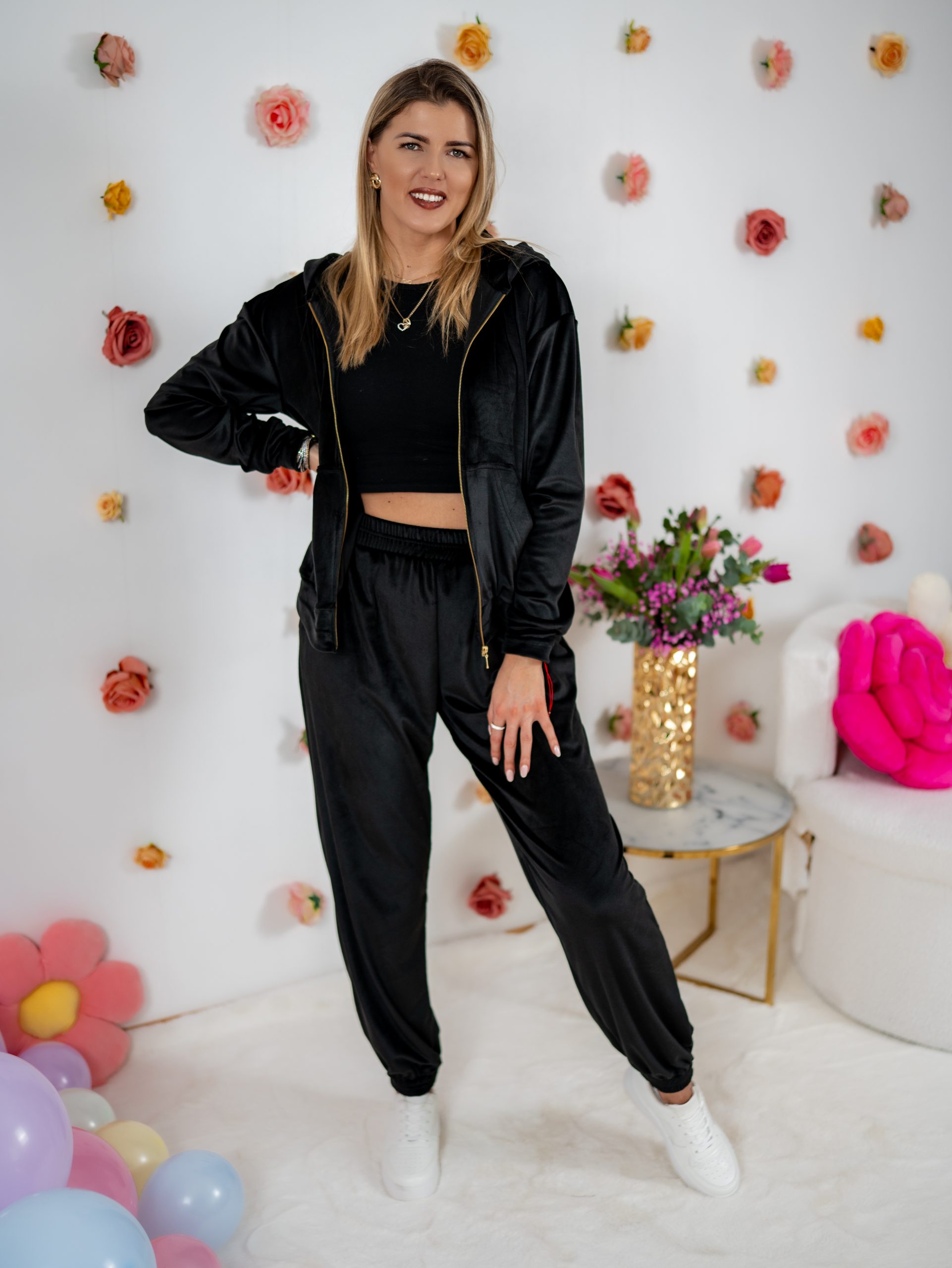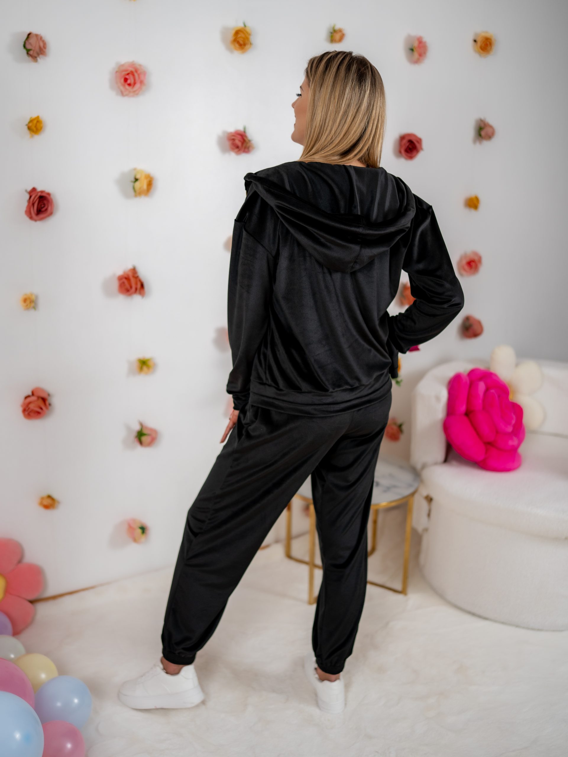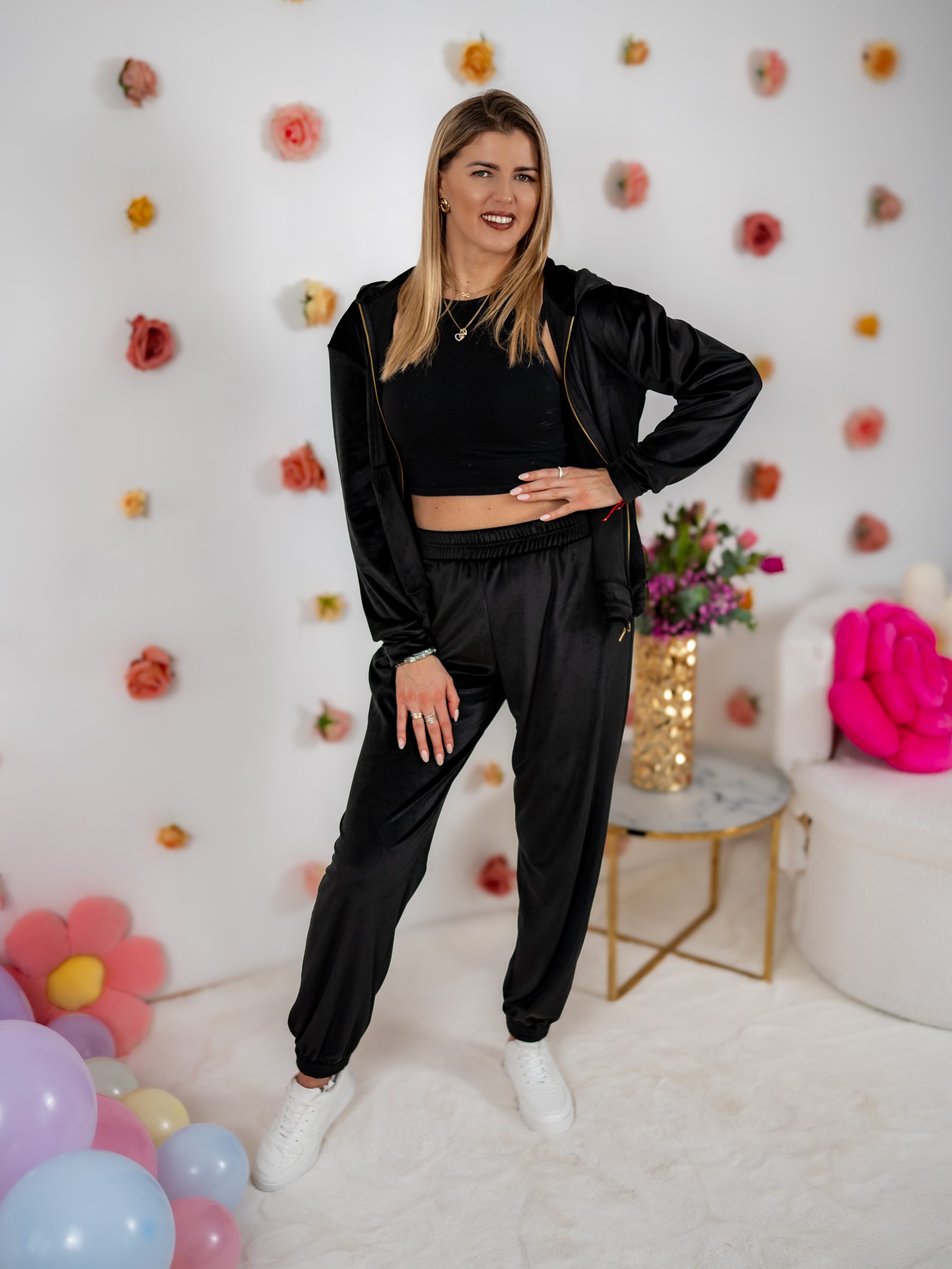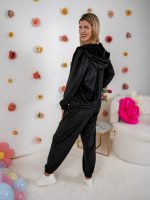 Welurowy komplet dresowy Velvet z szerokimi spodniami czarny
