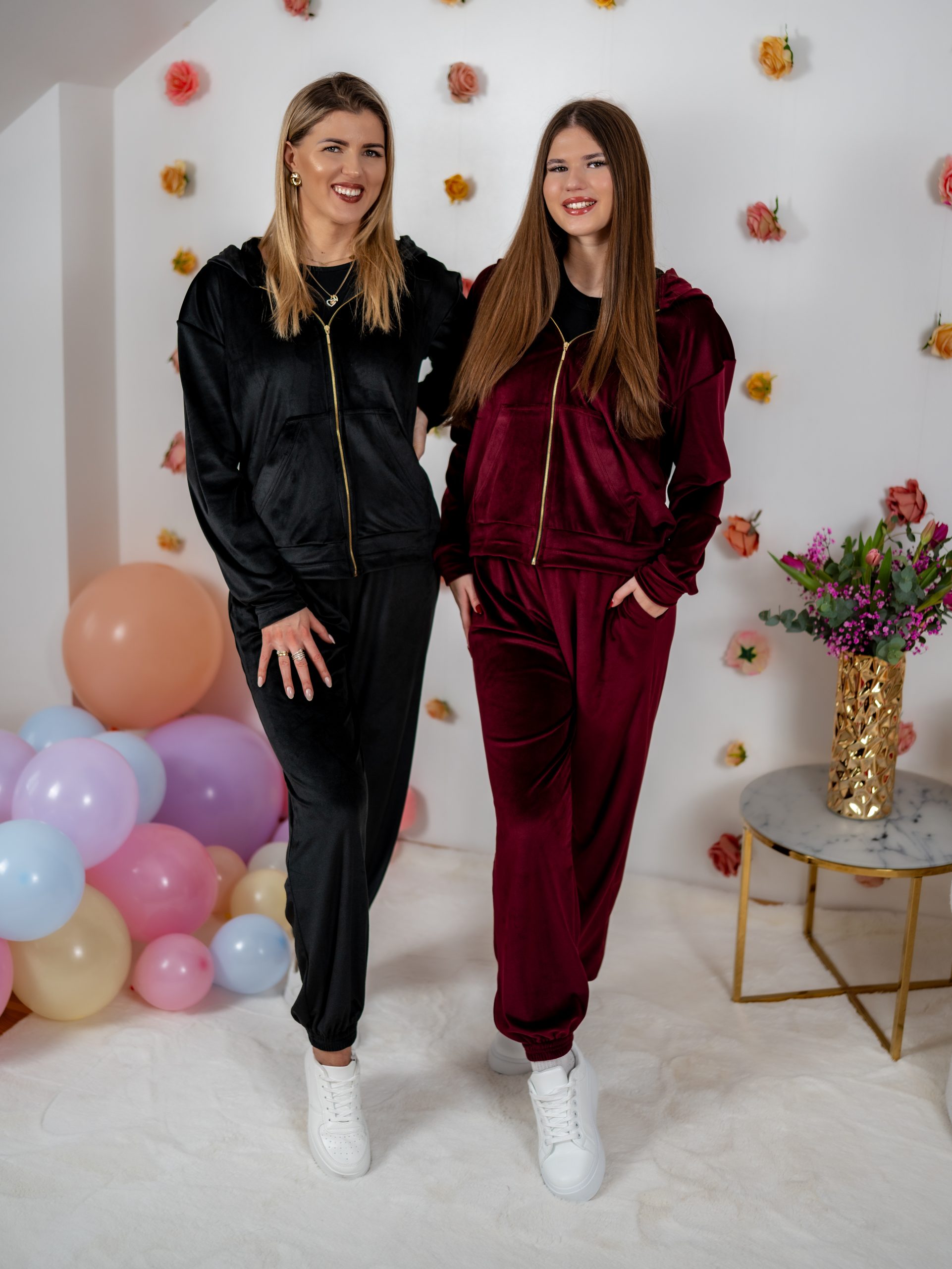 Postaw na wygodę, styl i odrobinę luksusu – wybierz komplet welurowy z bluzą na złoty suwak i spodniami oversize, by cieszyć się modnym lookiem każdego dnia! ✨