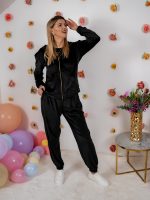 Komplet dresowy z weluru Velvet rozpinana bluza z kapturem i spodnie oversize czarny