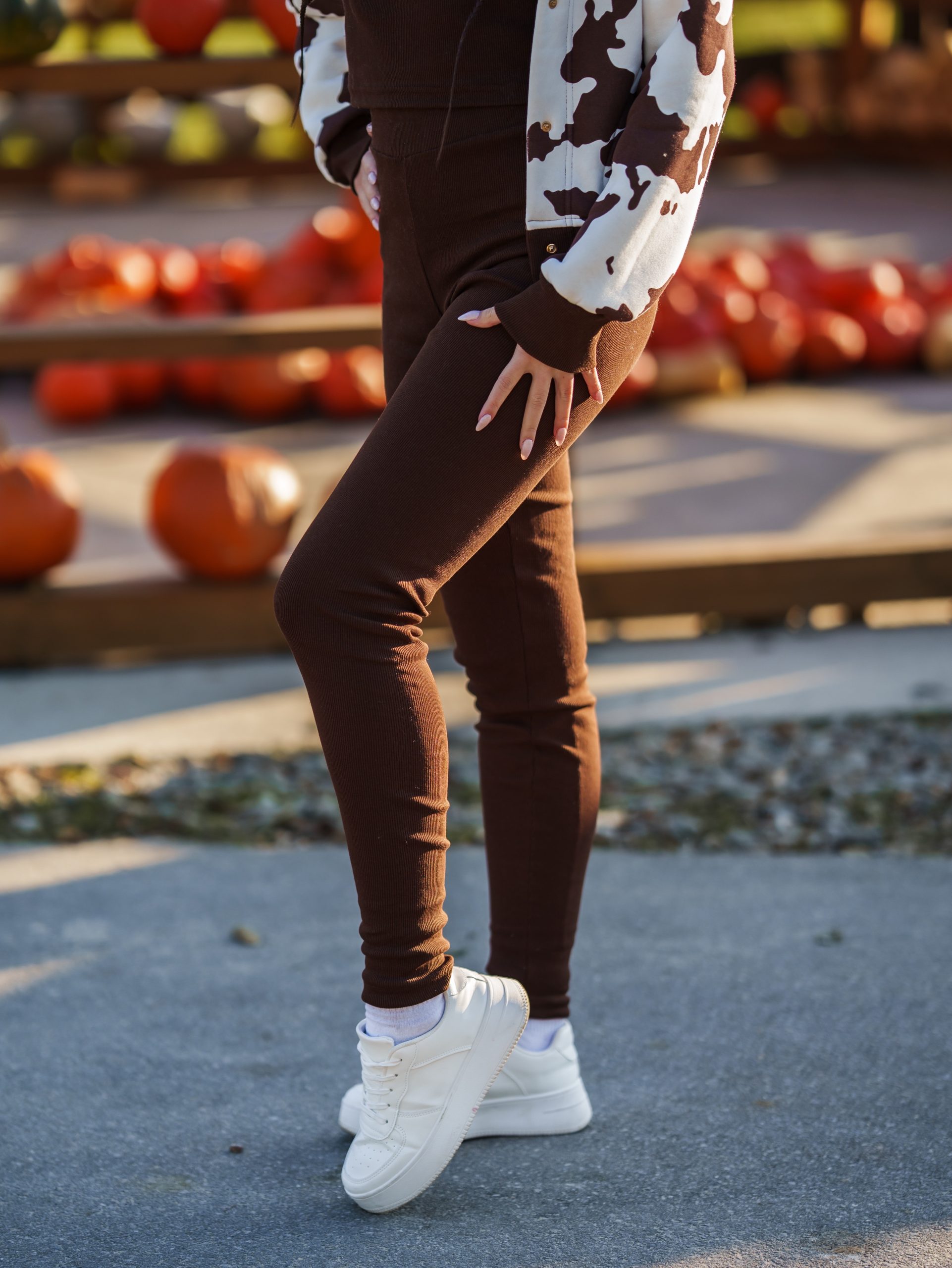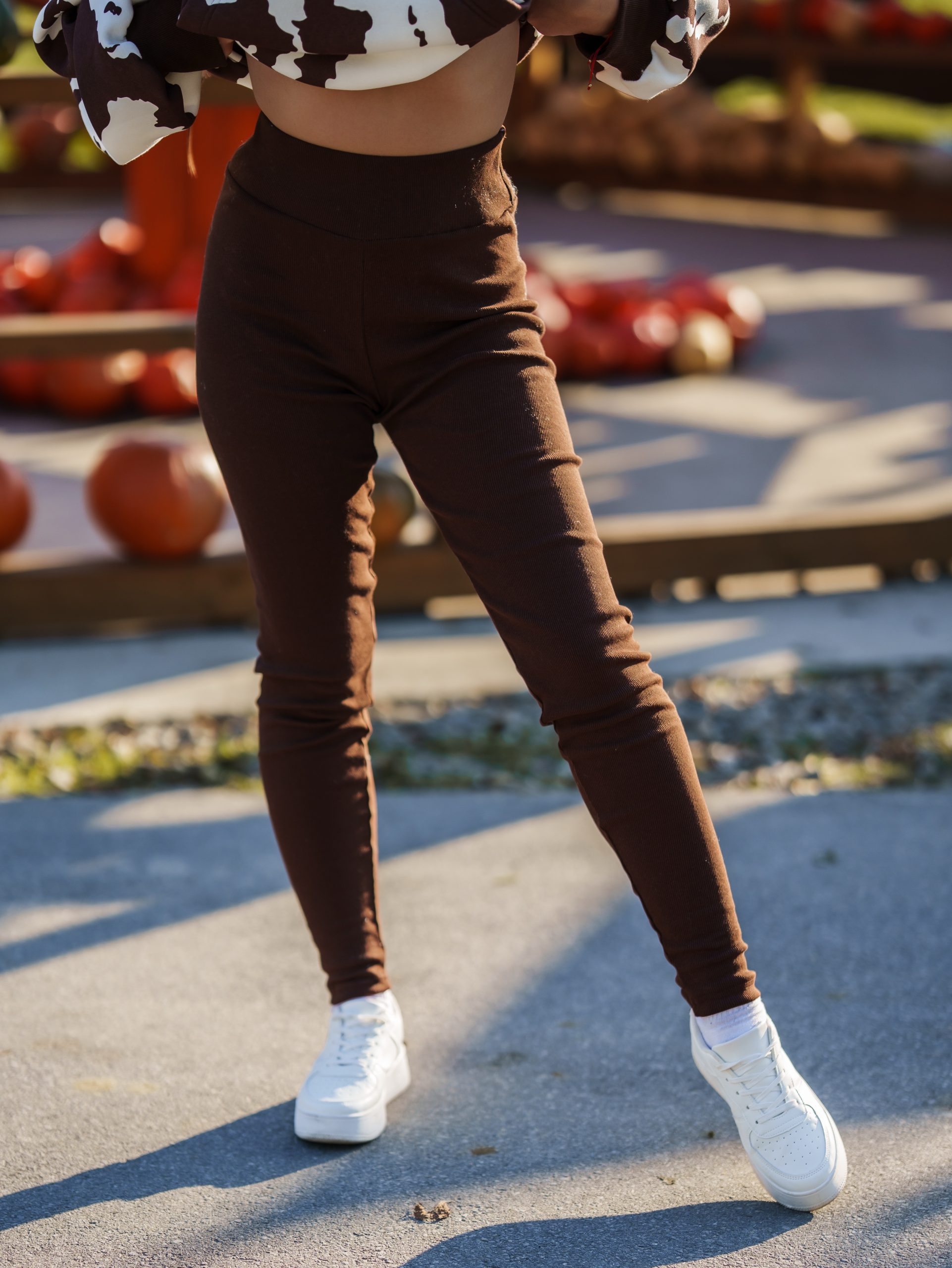 Legginsy z prążka w odcieniu czekoladowego brązu. Idealnie pasują do naszych krówkowych bluz. Wysmuklają sylwetkę i optycznie wydłużają nogi. Uszyte z dzianiny prążkowanej z certyfikatem Oeko-Tex 100.