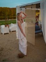 Sukienka muślinowa maxi „Bali” z ręcznie plecionymi warkoczami i rozporkiem błękitna