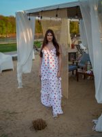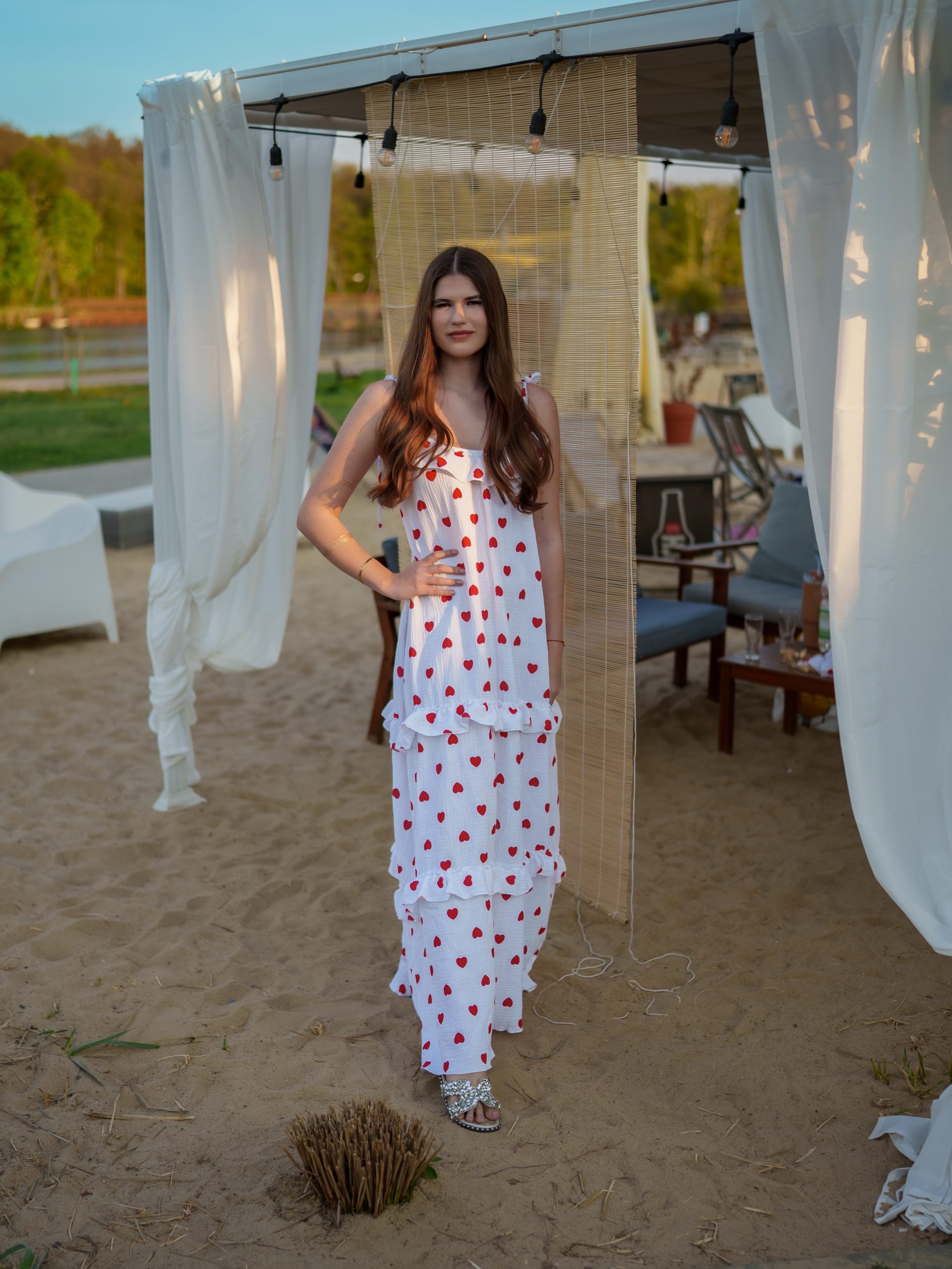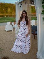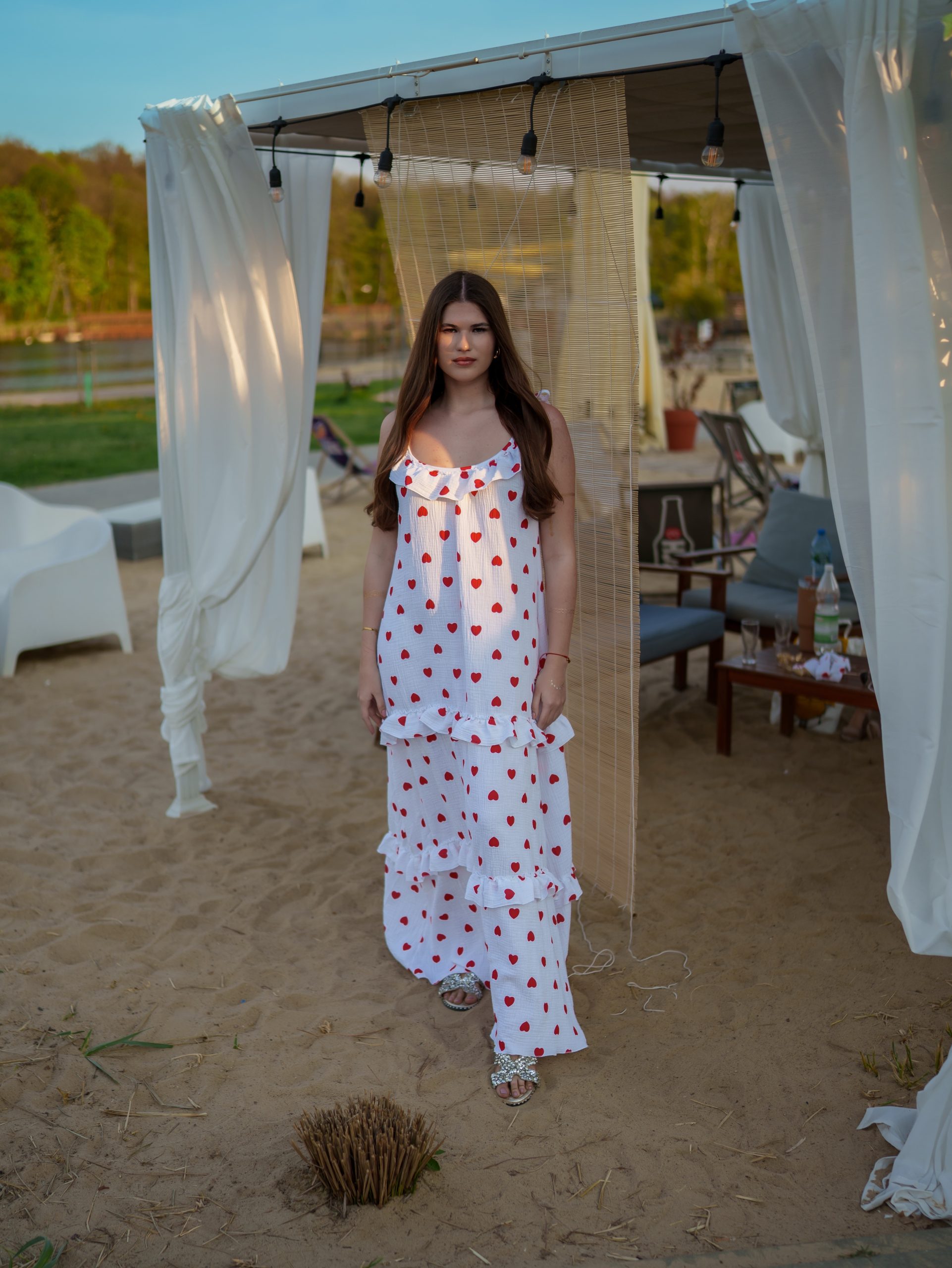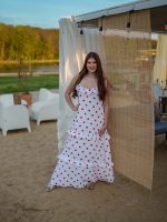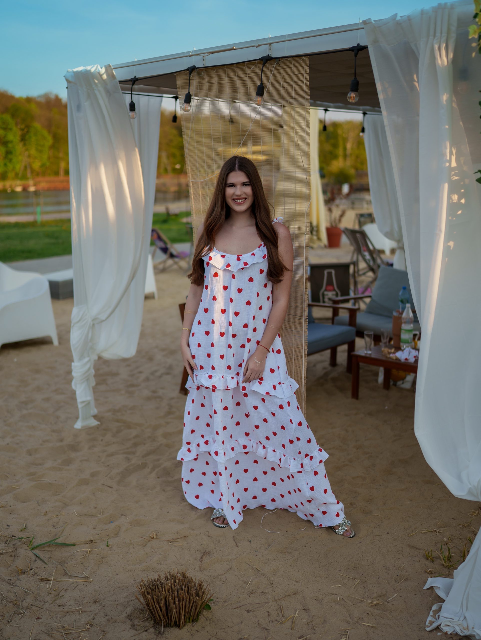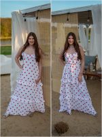 Strona główna Boho Maxi sukienka muślinowa oversize z trzema falbanami 2w1 z paskiem biały w serduszka