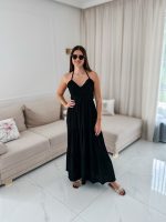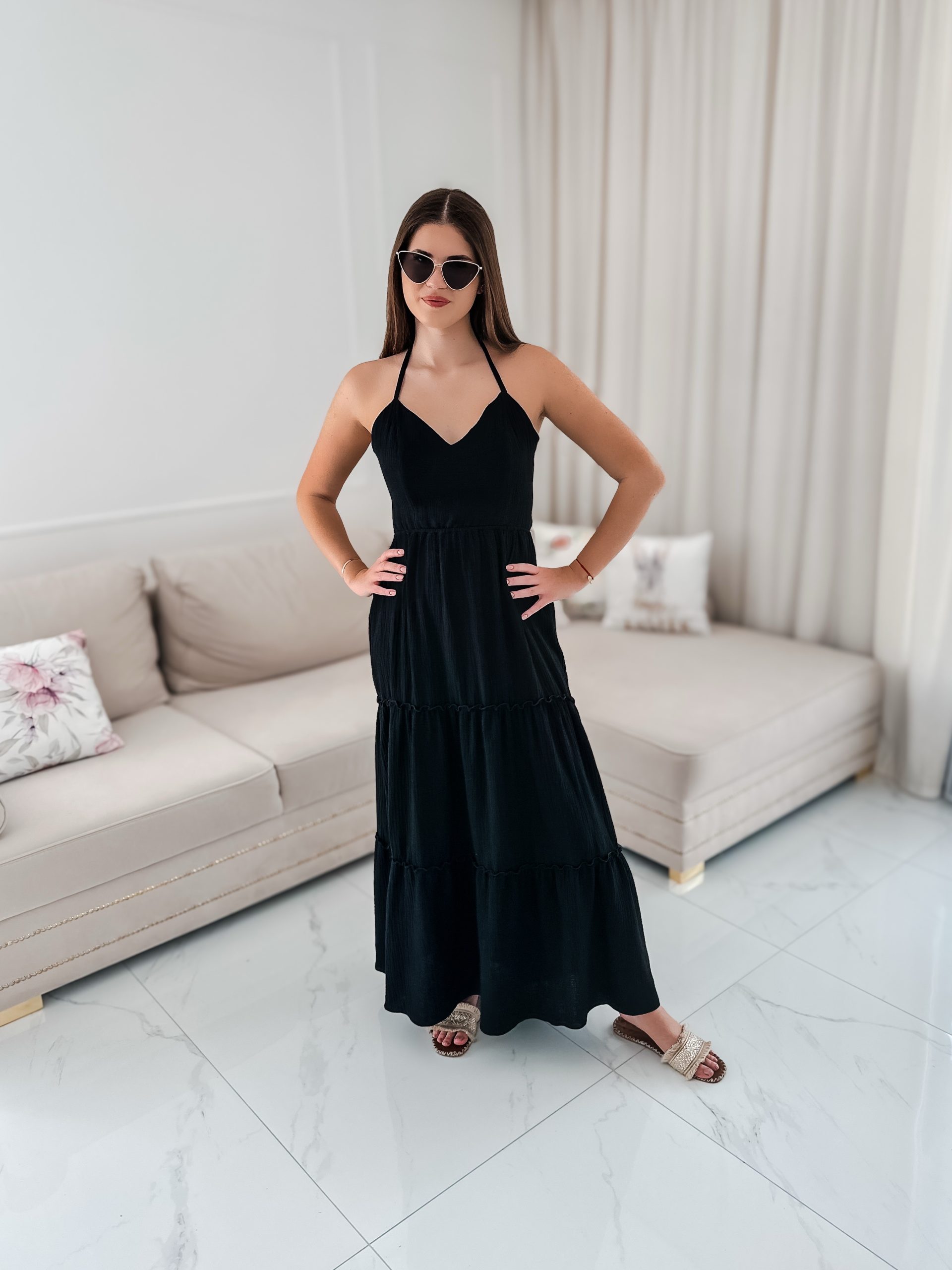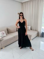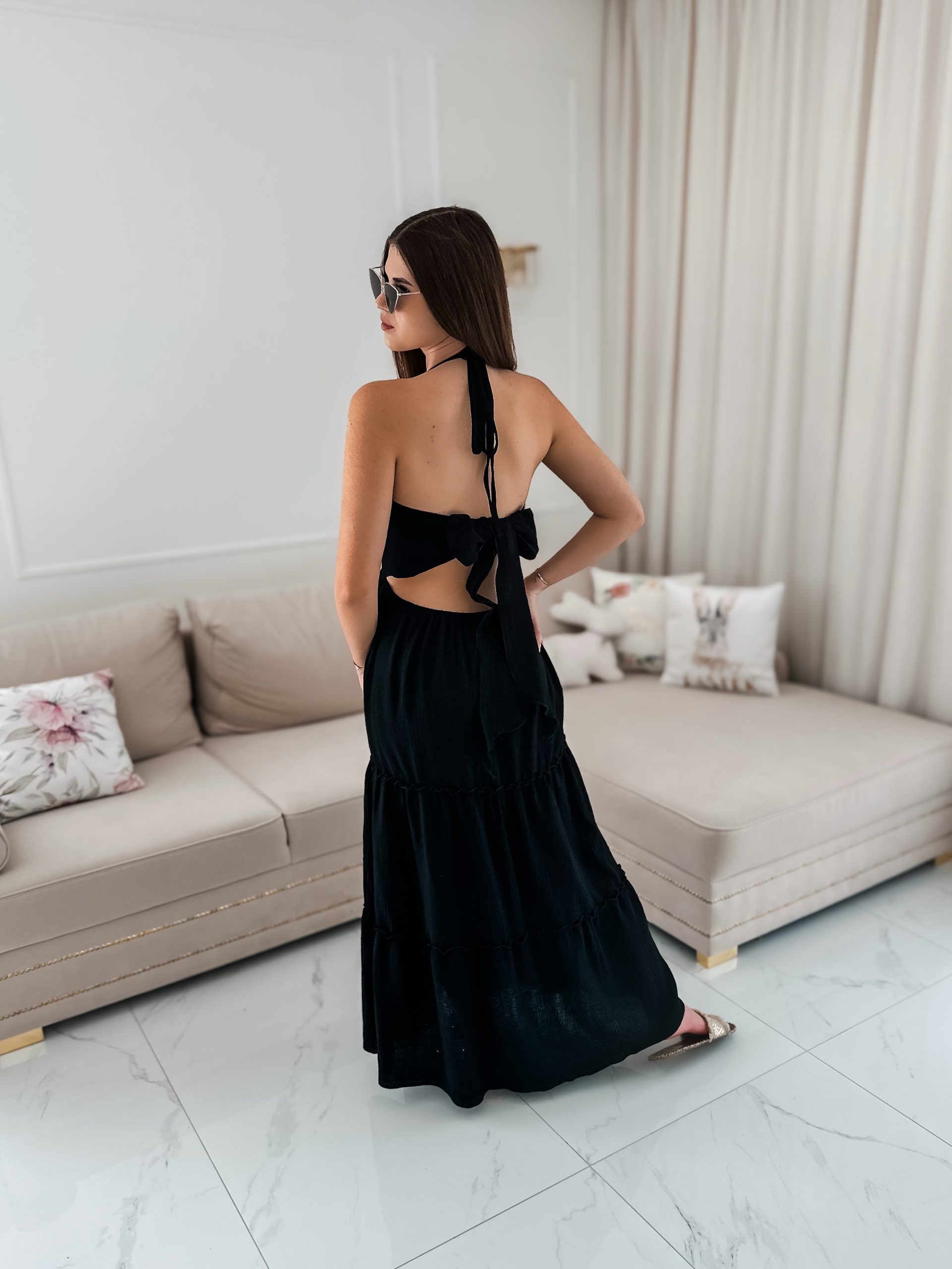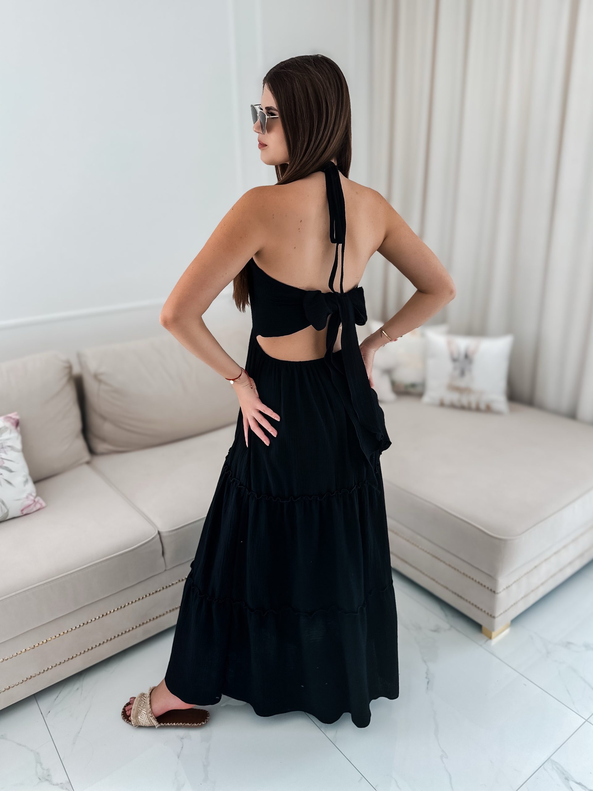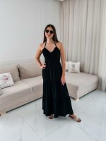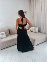 Sukienka muślinowa maxi „Bali” z ręcznie plecionymi warkoczami i rozporkiem czarna