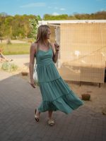 Strona główna Boho Muślinowa sukienka maxi z falbanami i gorsetową górą szałwiowy
