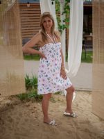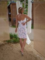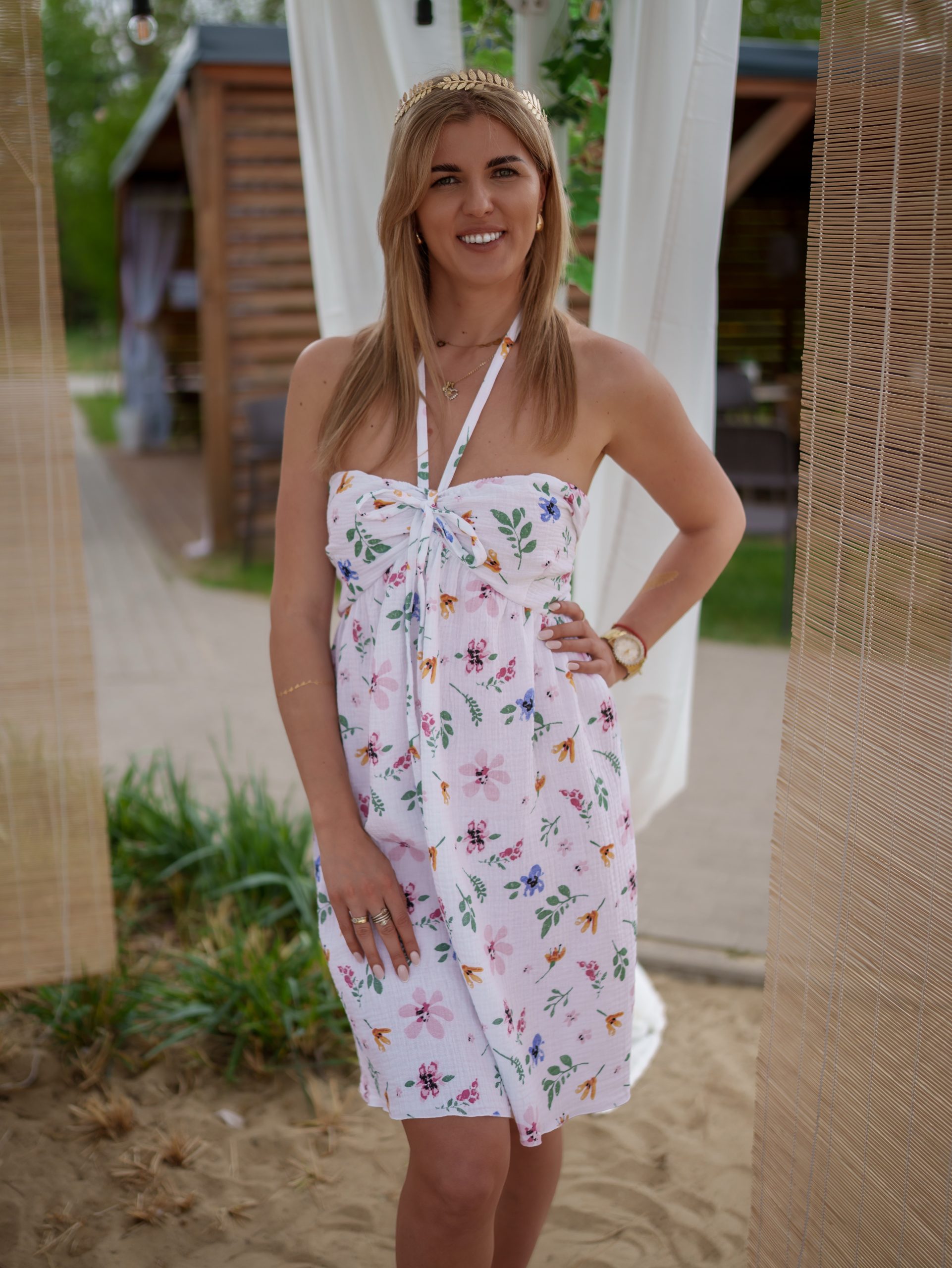 Muślinowa sukienka plażowa mini biała w kwiaty