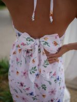 Strona główna Boho Muślinowa sukienka plażowa mini biała w kwiaty