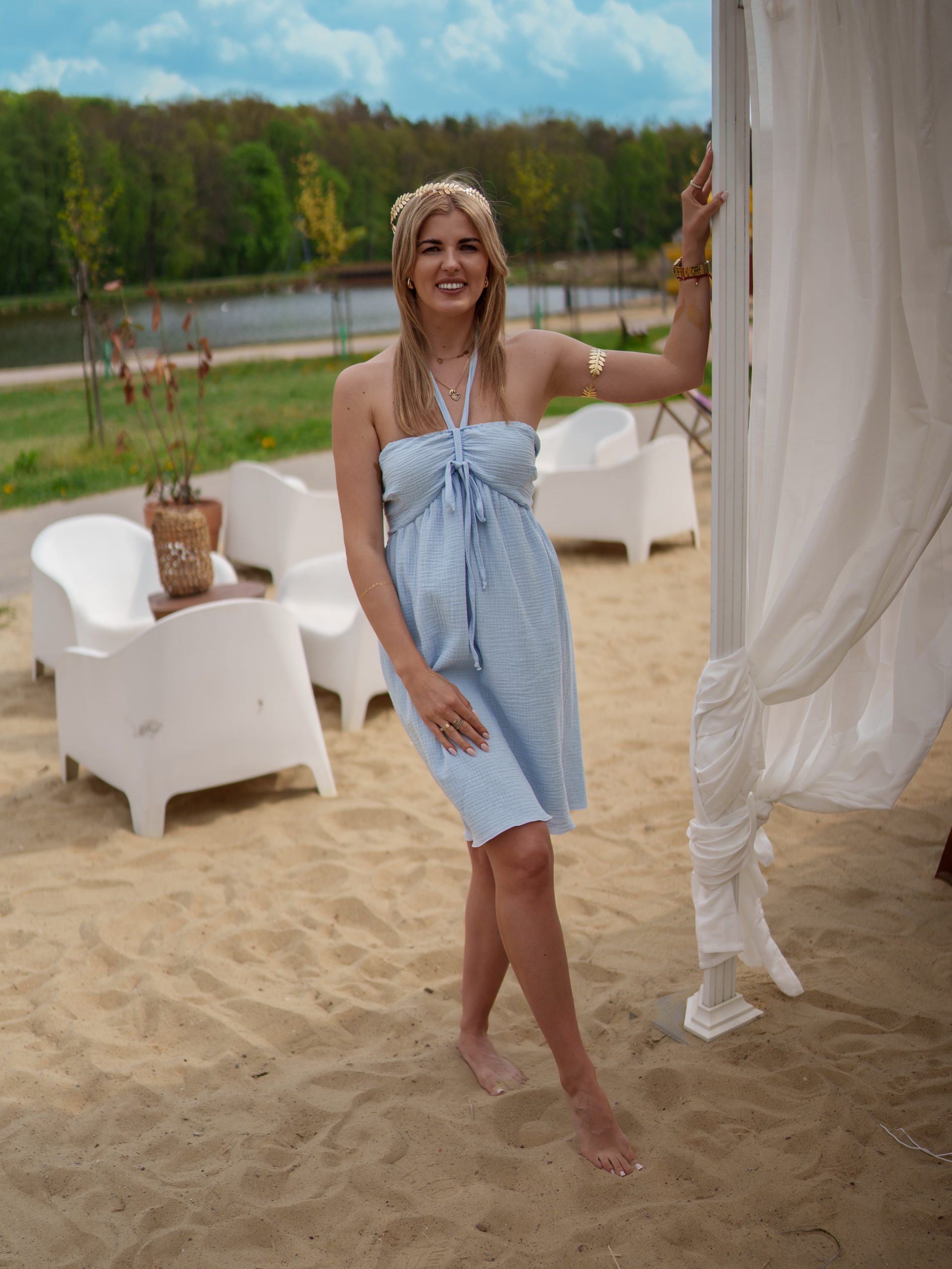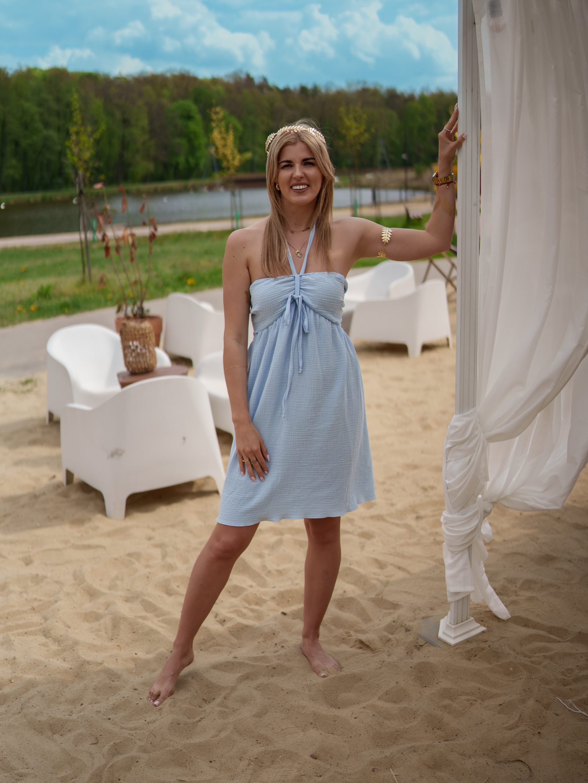 Strona główna Boho Muślinowa sukienka plażowa mini błękitny