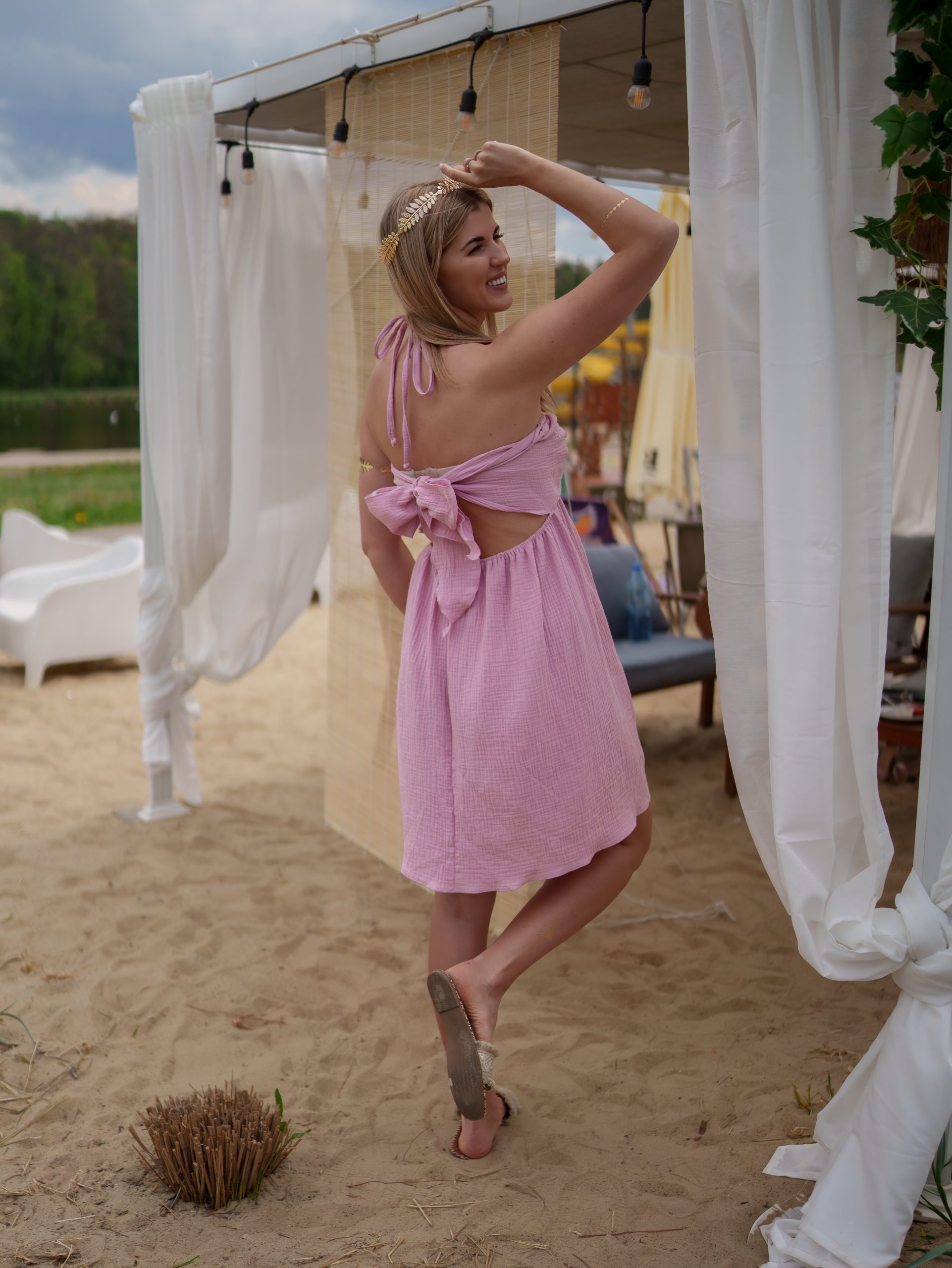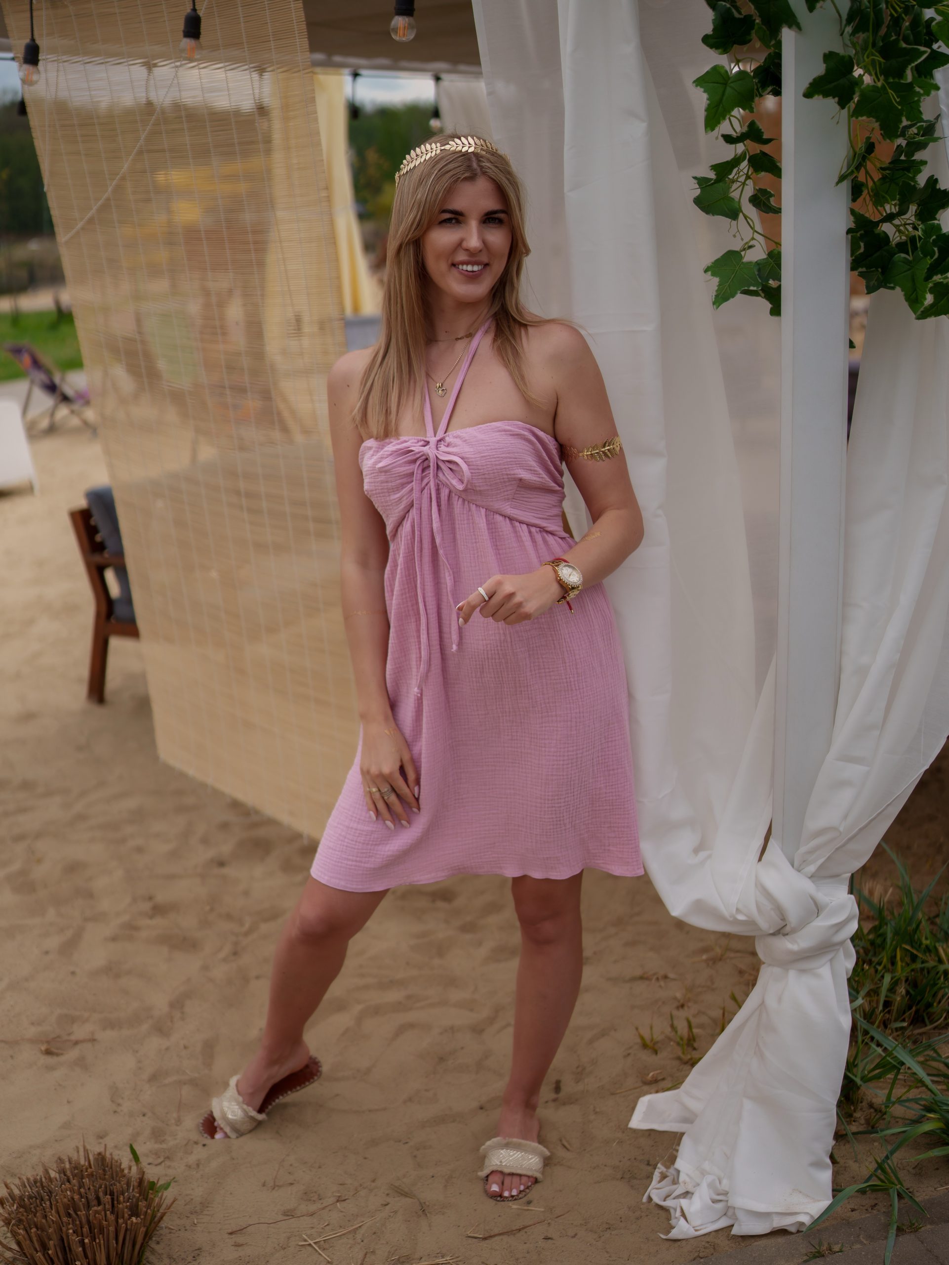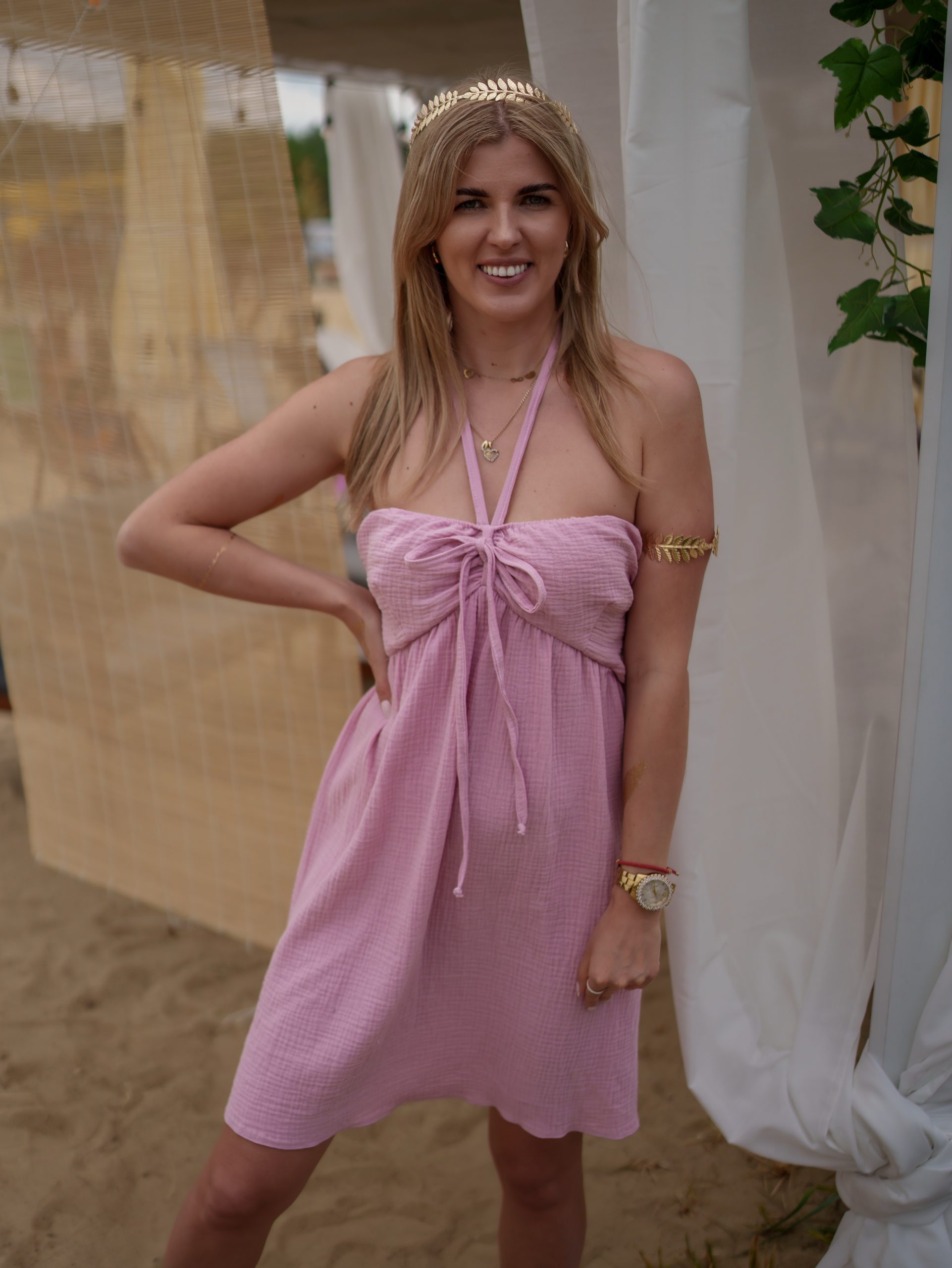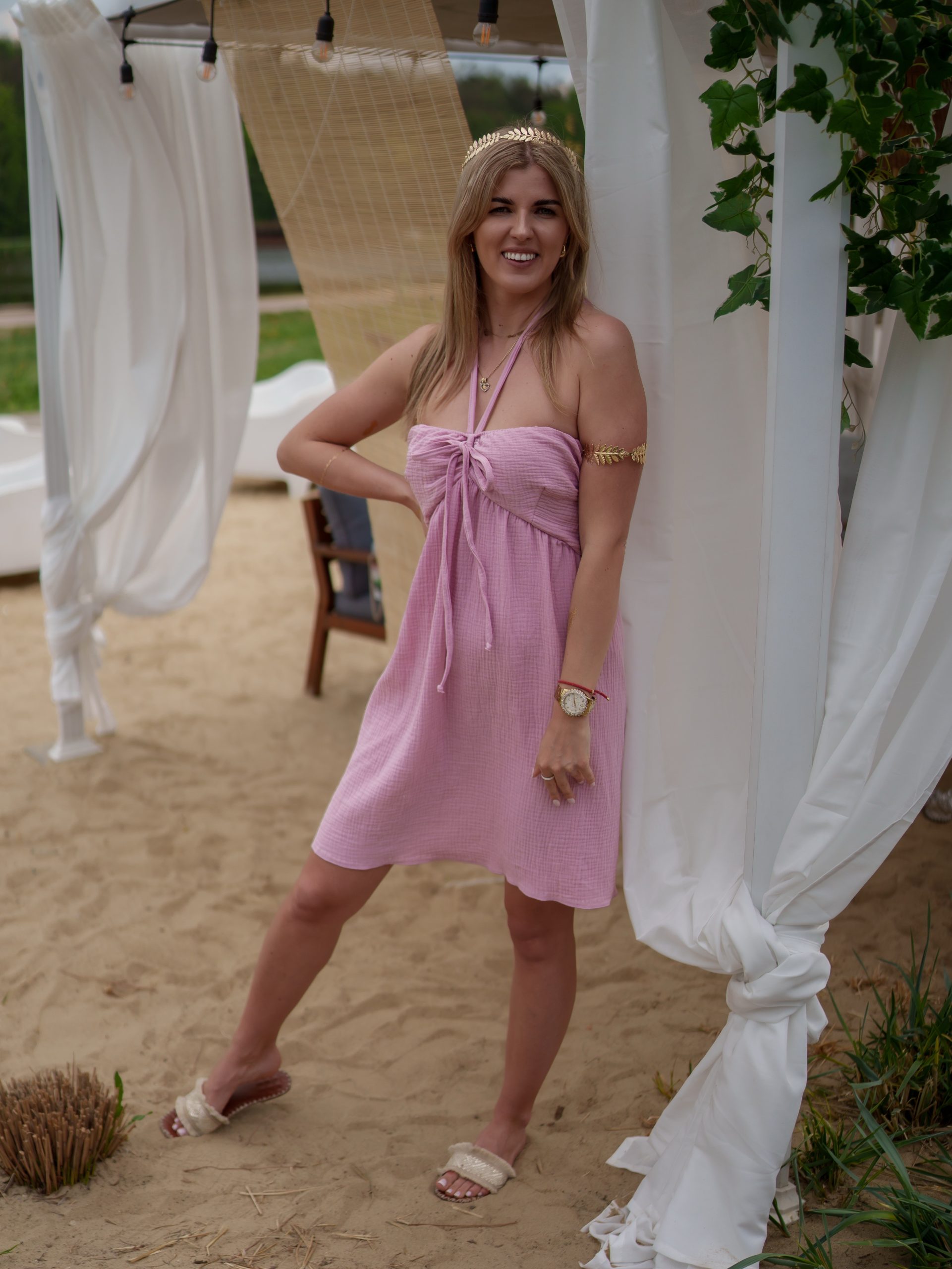 Strona główna Boho Muślinowa sukienka plażowa mini różowy