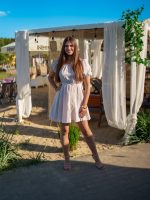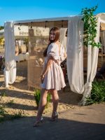 Muślinowa sukienka z rozkloszowanym dołem i wiązaną górą beżowy