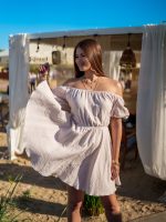 Podkreśl swoją kobiecość w wyjątkowej muślinowej sukience uszytej z 100% naturalnej bawełny. Ten model zachwyca lekkością i romantycznym krojem – dół sukienki uszyty z koła pięknie układa się w ruchu, tworząc delikatną, zwiewną linię.