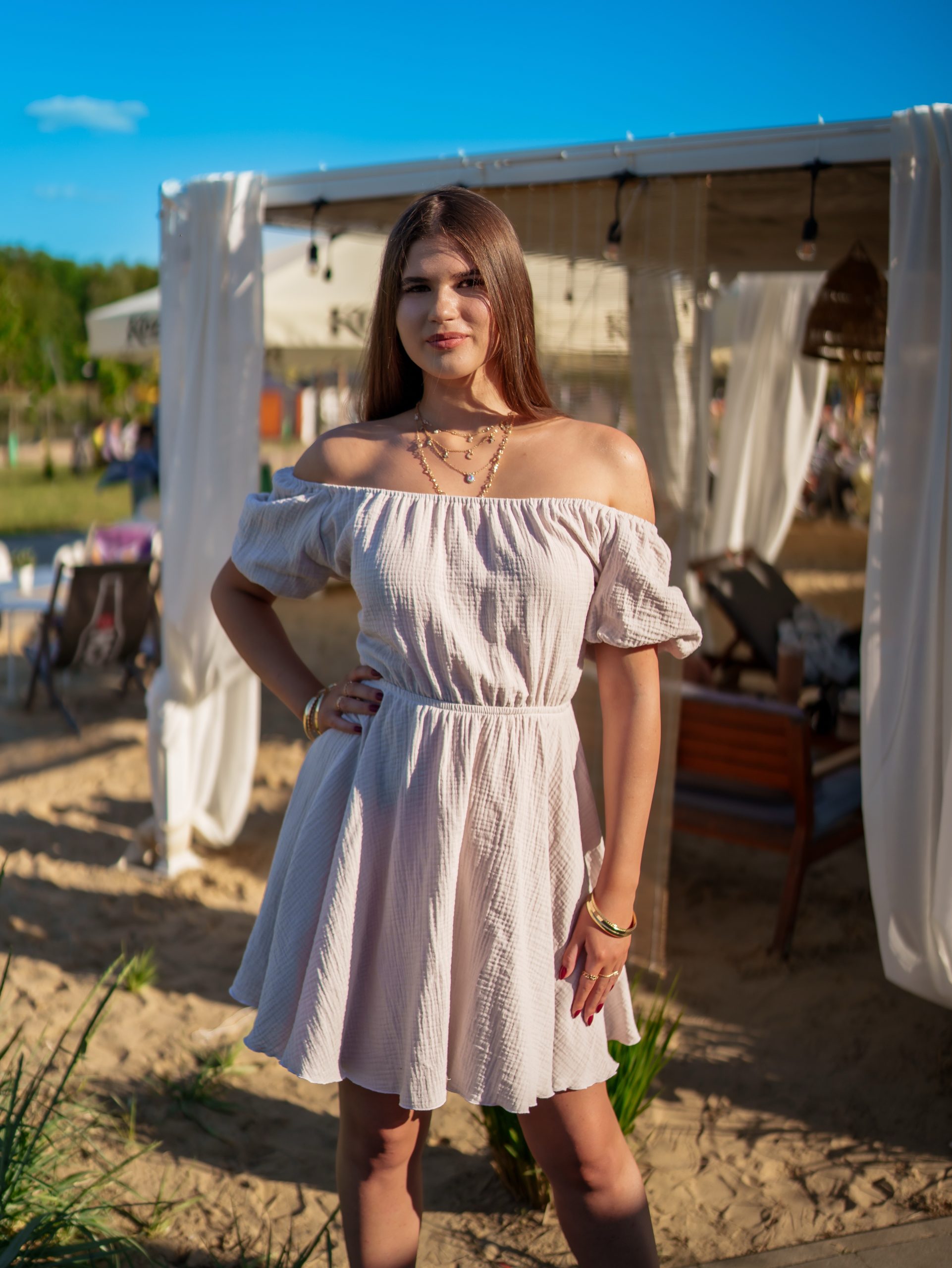 To doskonały wybór na letnie dni – sprawdzi się na wakacjach, spacerach, randkach i letnich przyjęciach.