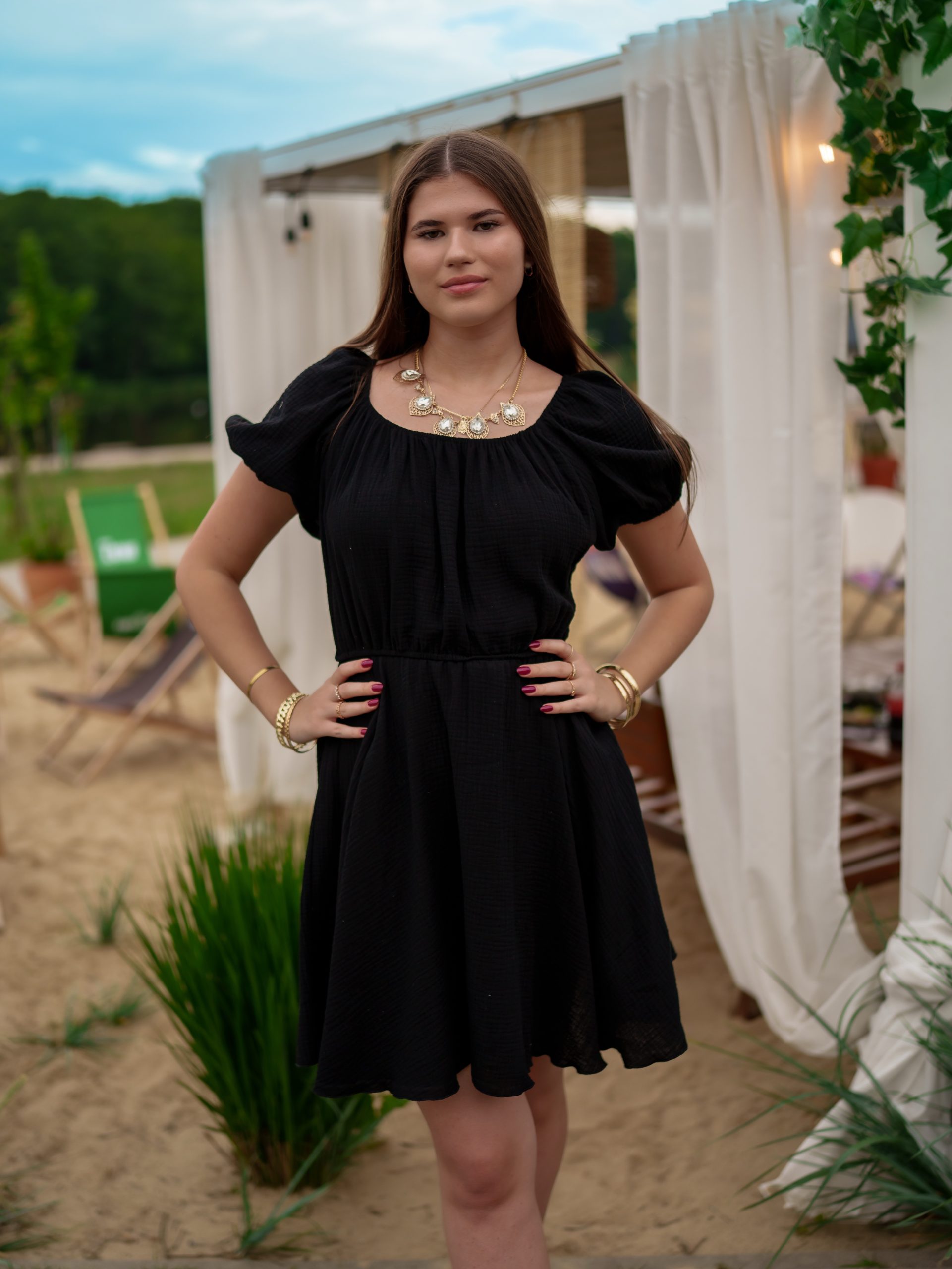 To doskonały wybór na letnie dni – sprawdzi się na wakacjach, spacerach, randkach i letnich przyjęciach.
