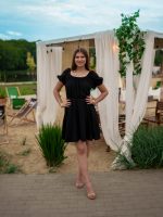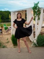 Muślinowa sukienka z rozkloszowanym dołem i wiązaną górą czarny