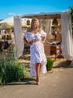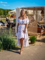 Zachwyć latem w naszym wyjątkowym muślinowym komplecie – połączeniu stylu, wygody i kobiecego uroku. Zestaw składa się z bluzeczki w stylu hiszpanki z regulacją długości oraz efektownej spódnicy z falbanami. Spódnica posiada unikalny, asymetryczny krój – krótsza z przodu, dłuższa z tyłu – co pięknie podkreśla nogi i dodaje sylwetce lekkości.