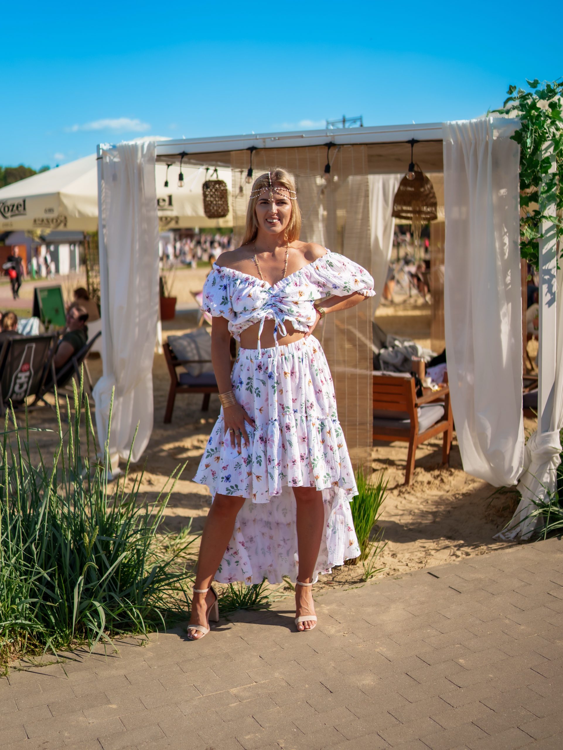 Strona główna Boho Muślinowy komplet Zosia 3.0 z asymetryczną spódnicą biały w kwiaty