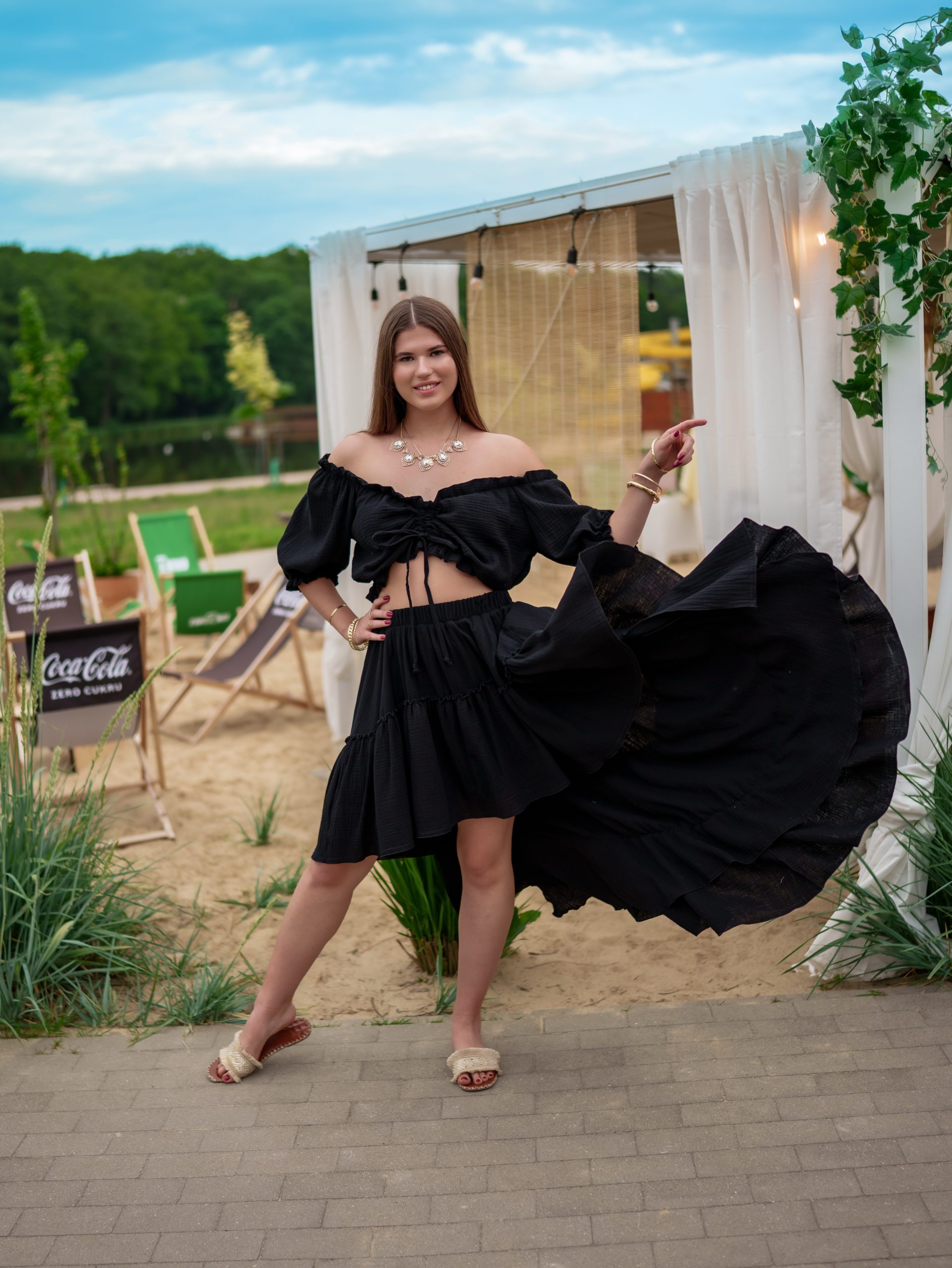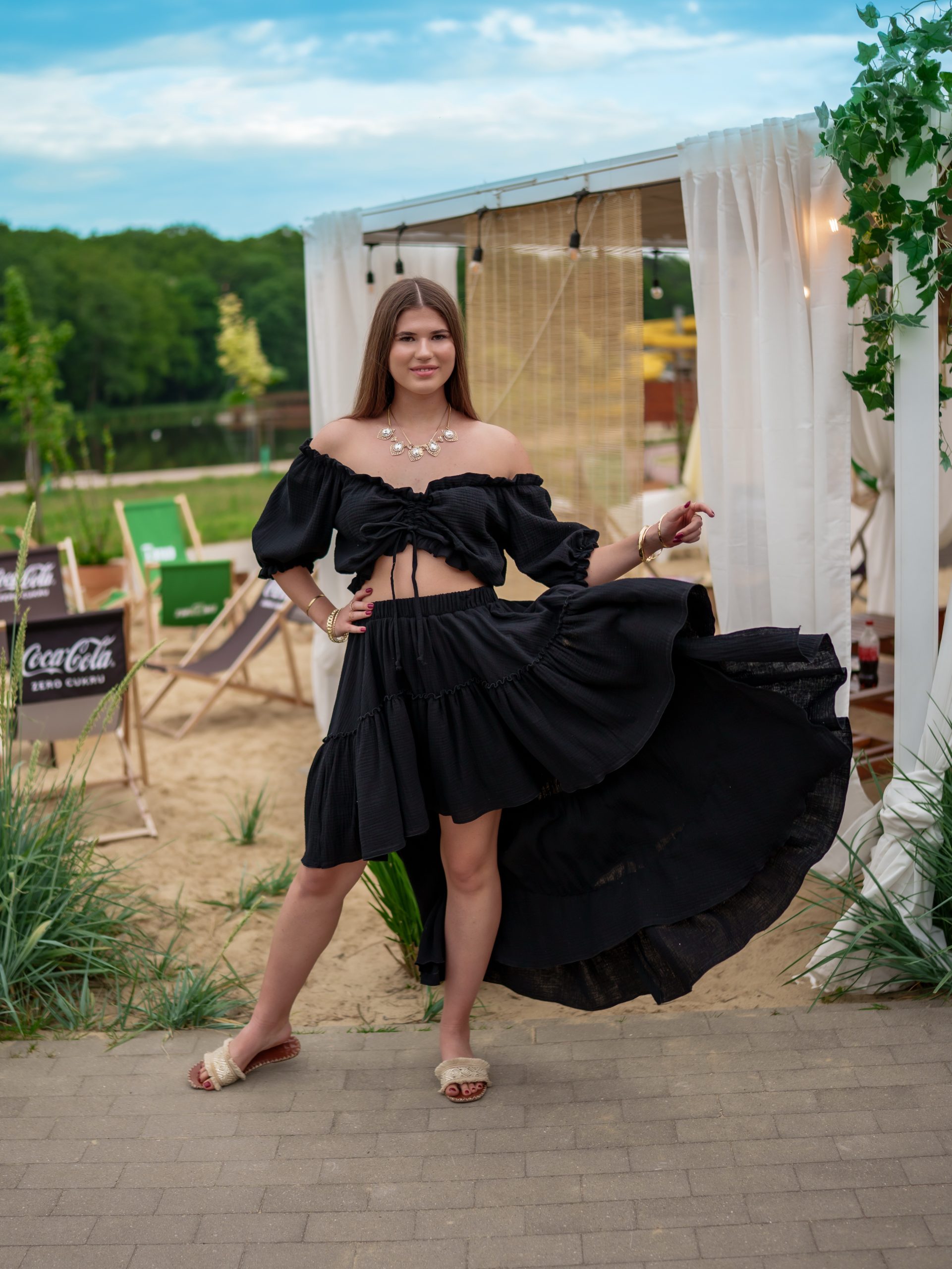 Muślinowy komplet z hiszpanką i asymetryczną spódnicą – romantyczny must-have na lato