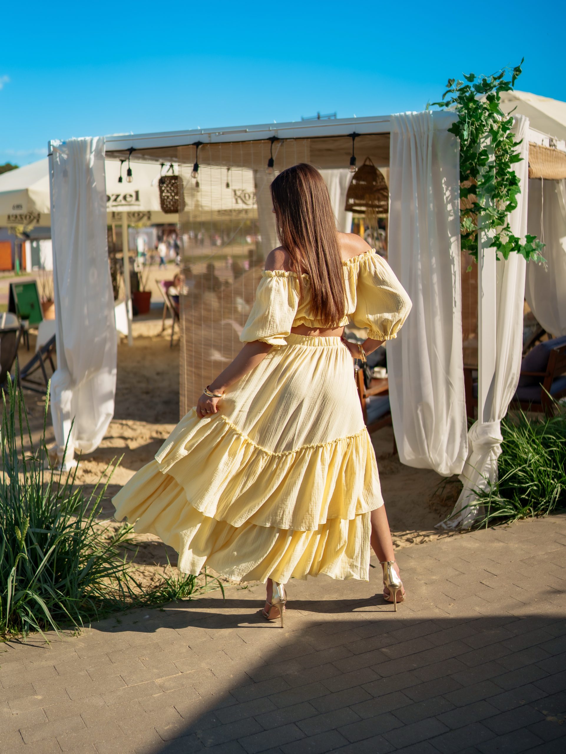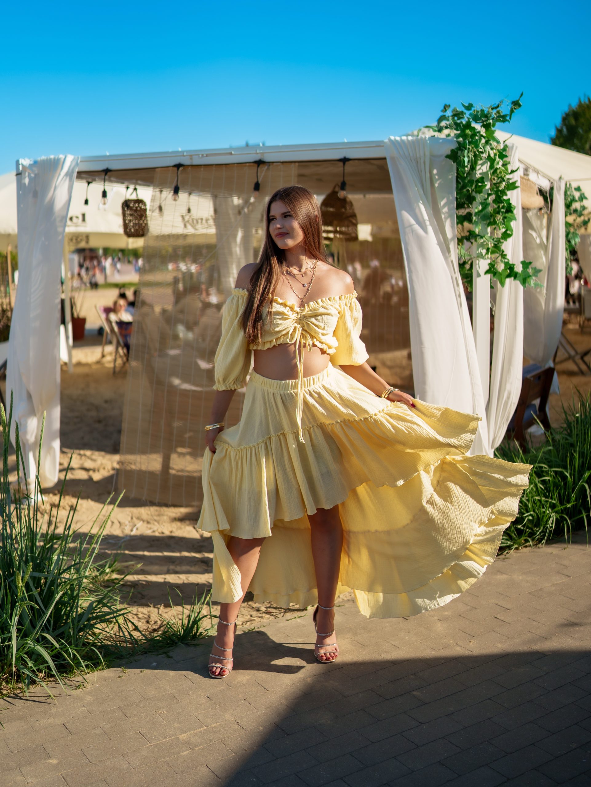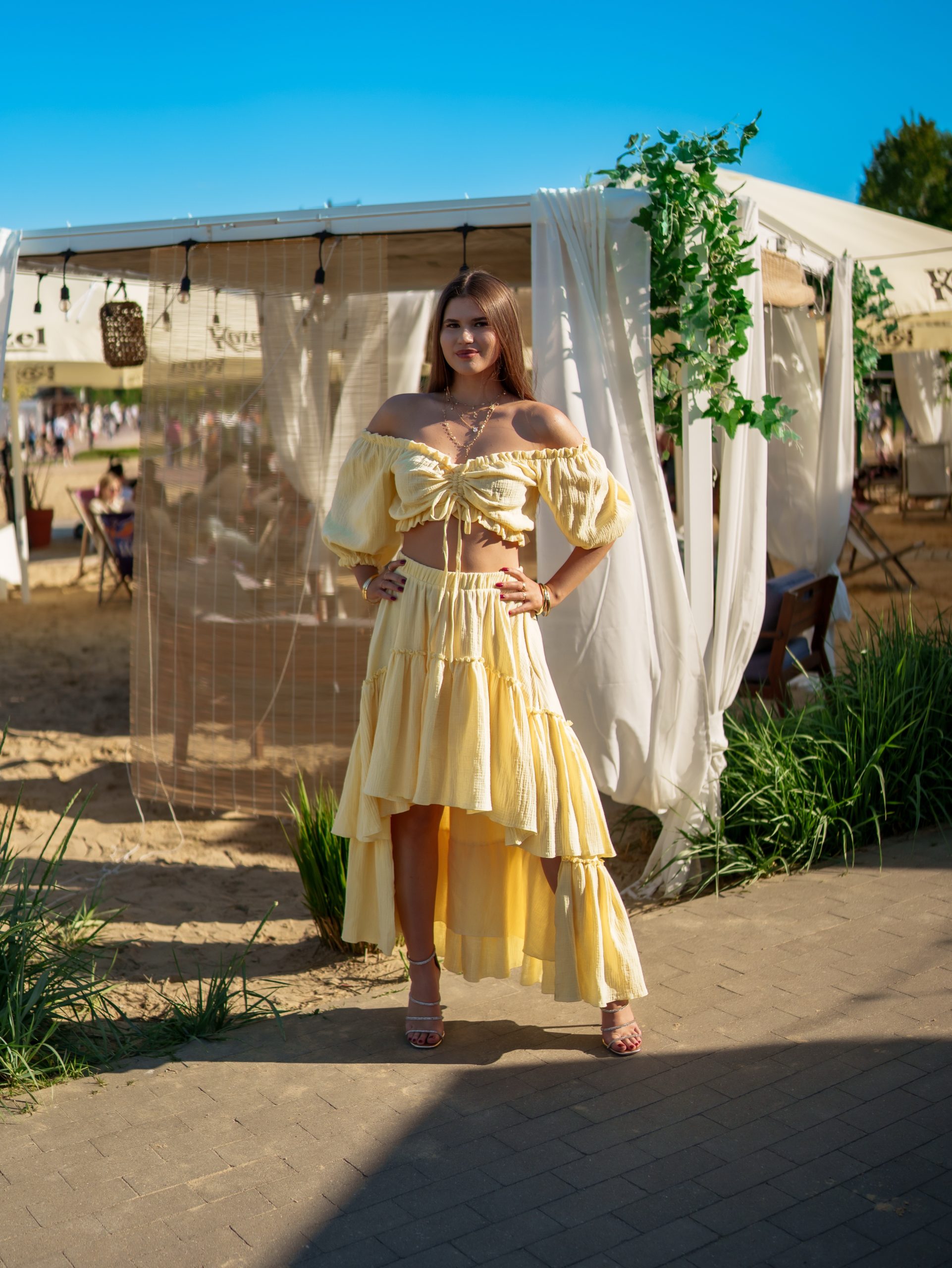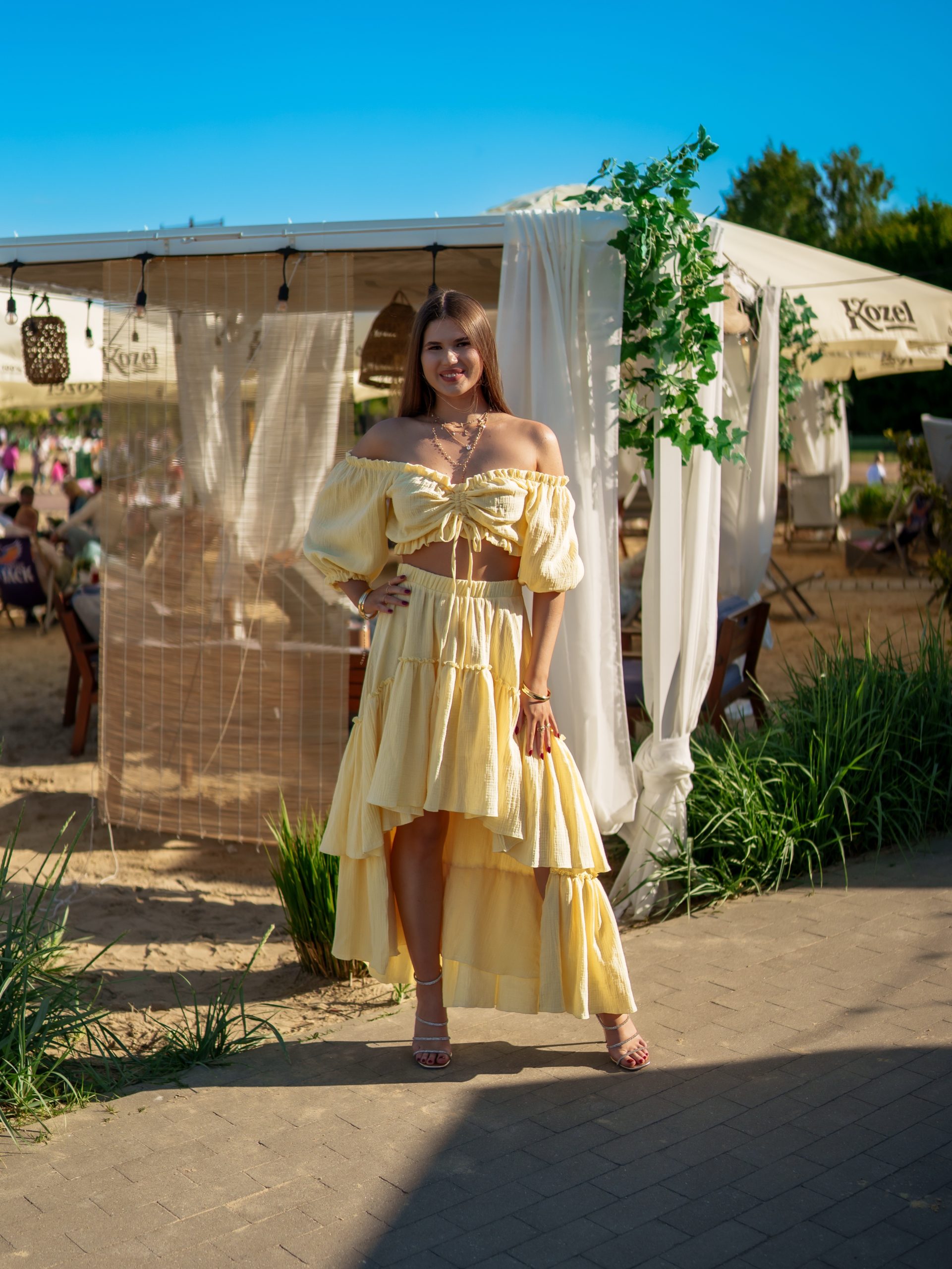 Strona główna Boho Muślinowy komplet Zosia 3.0 z asymetryczną spódnicą żółty