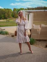 Sukienka muślinowa 3w1 z paskiem beżowy