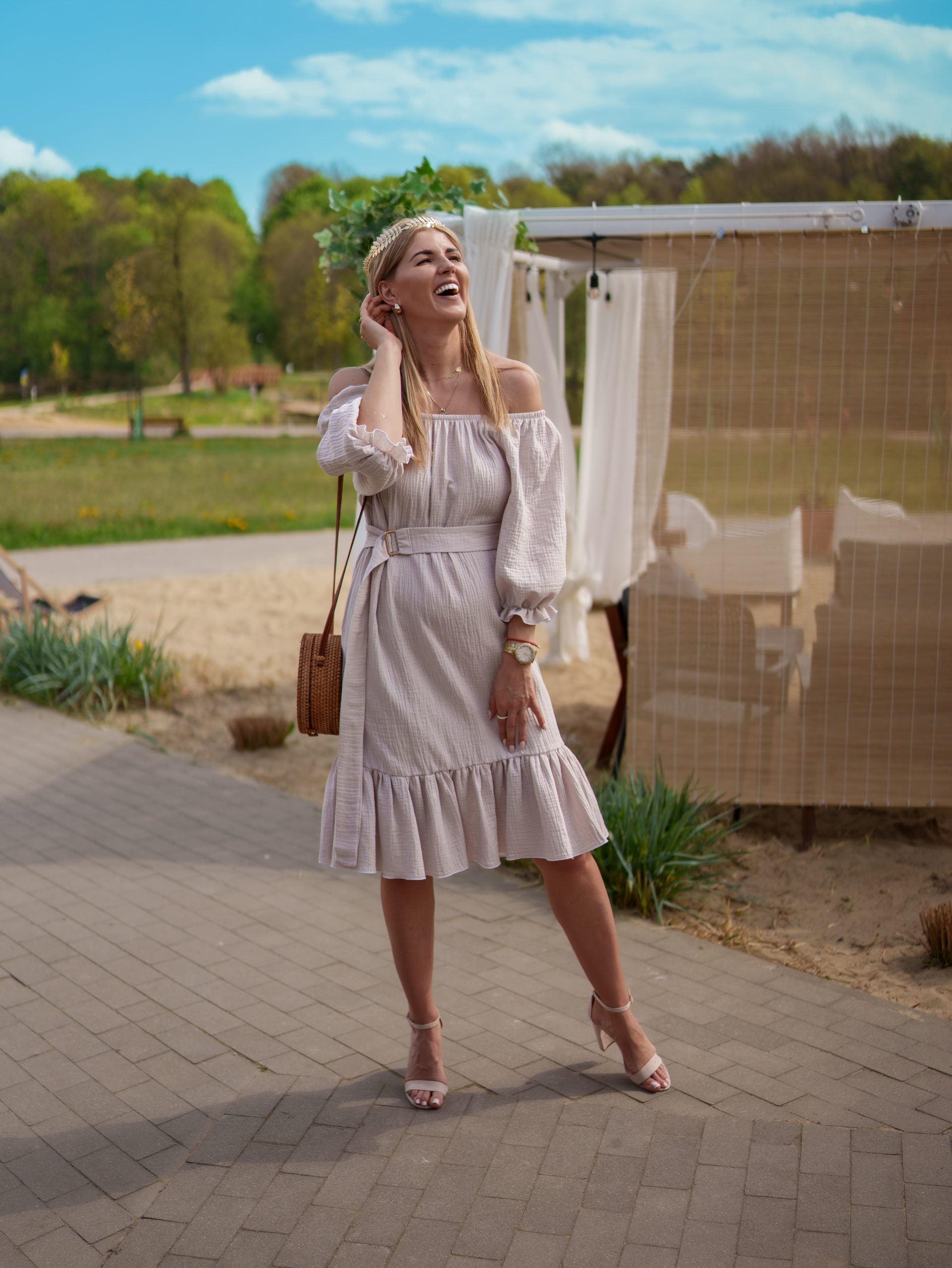 Strona główna Boho Sukienka muślinowa 3w1 z paskiem beżowy