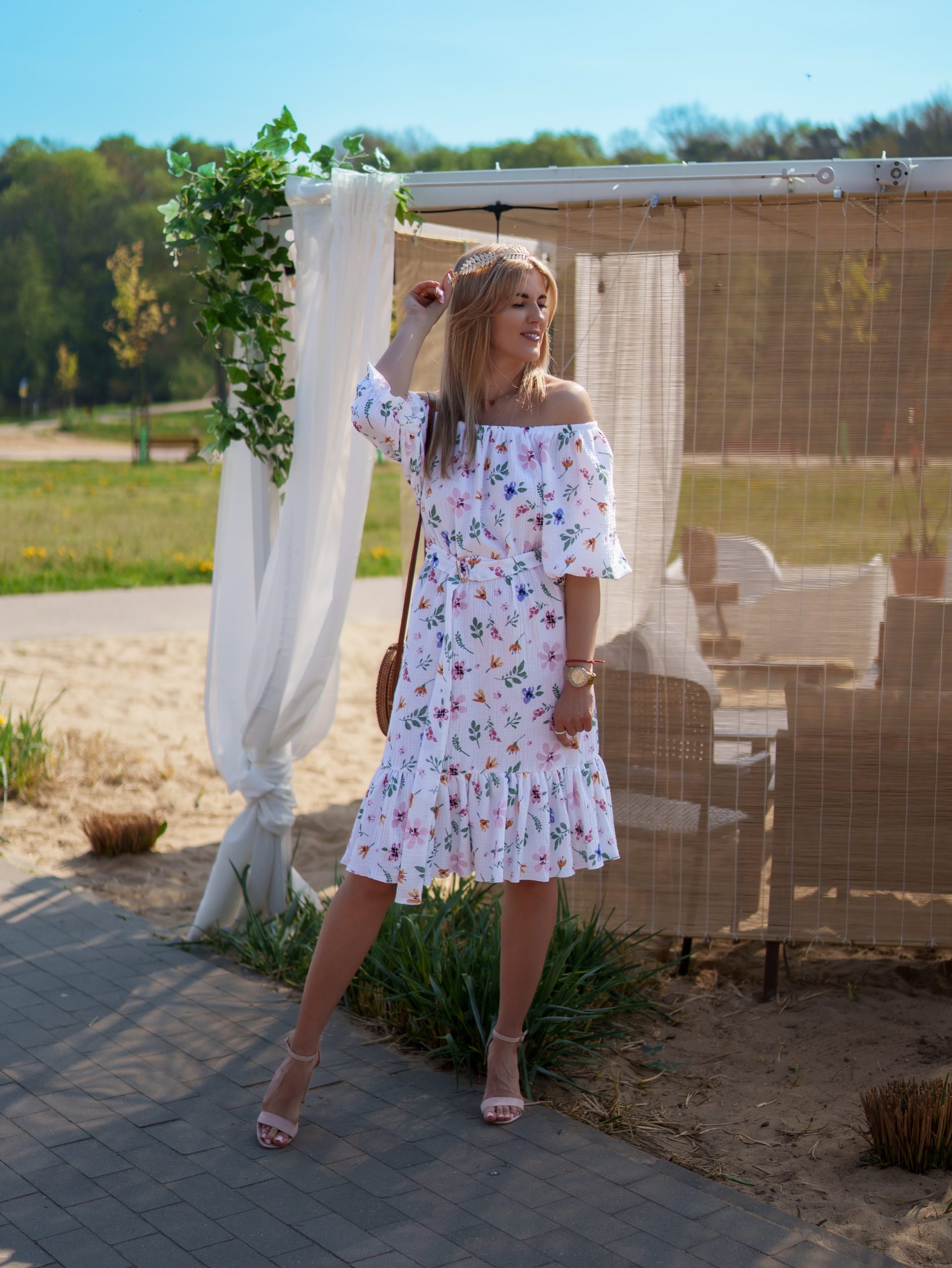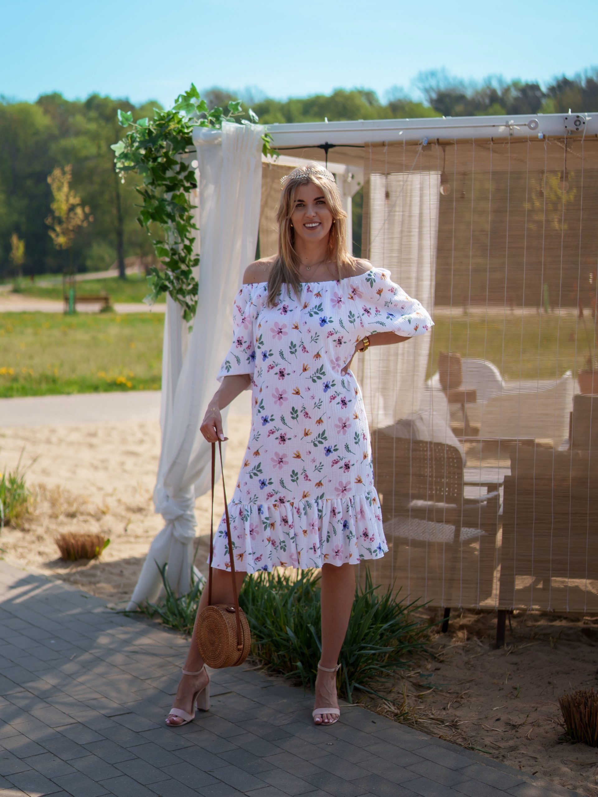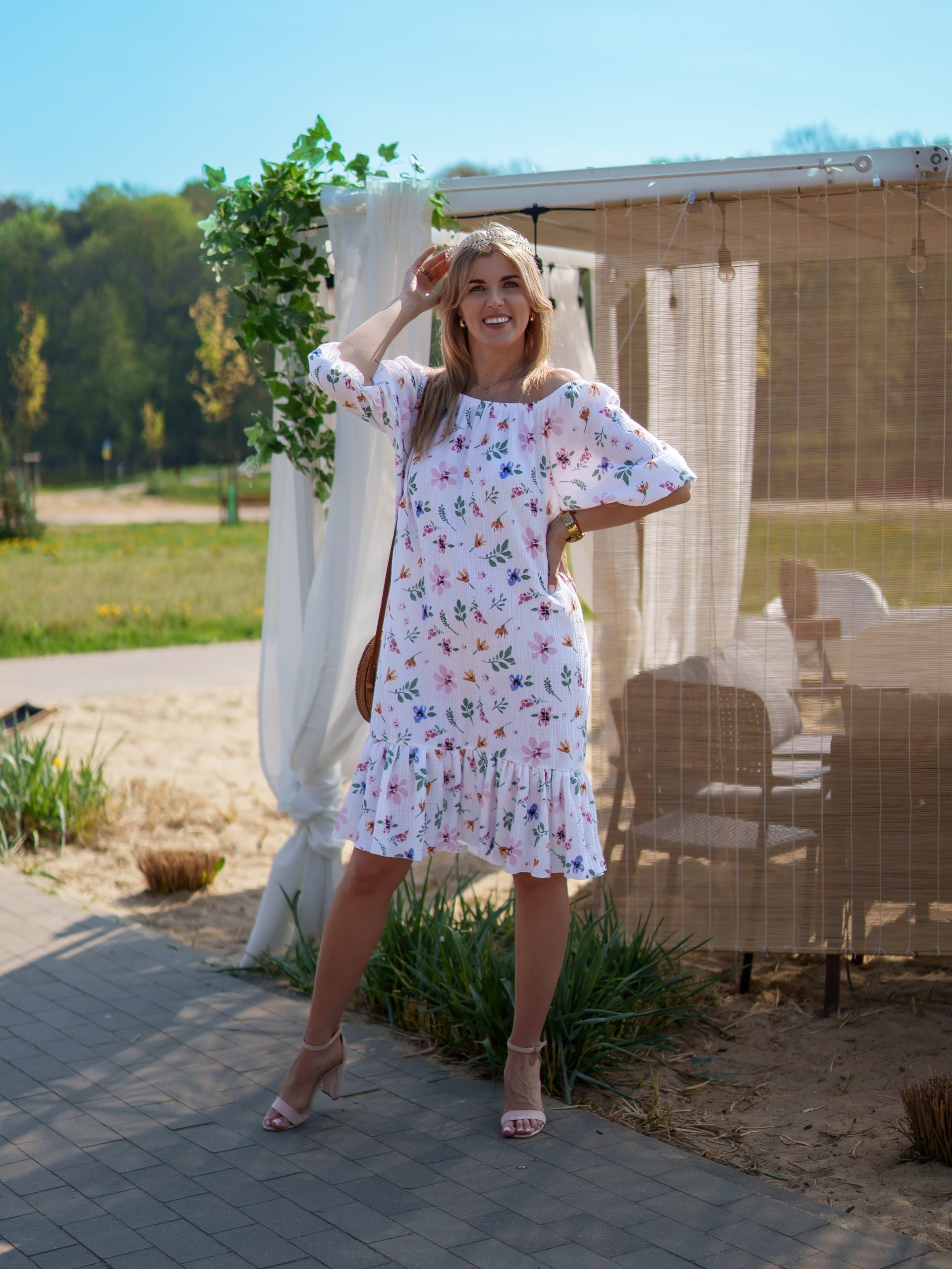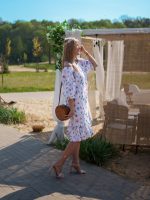 Strona główna Boho Sukienka muślinowa 3w1 z paskiem biała w kwiaty