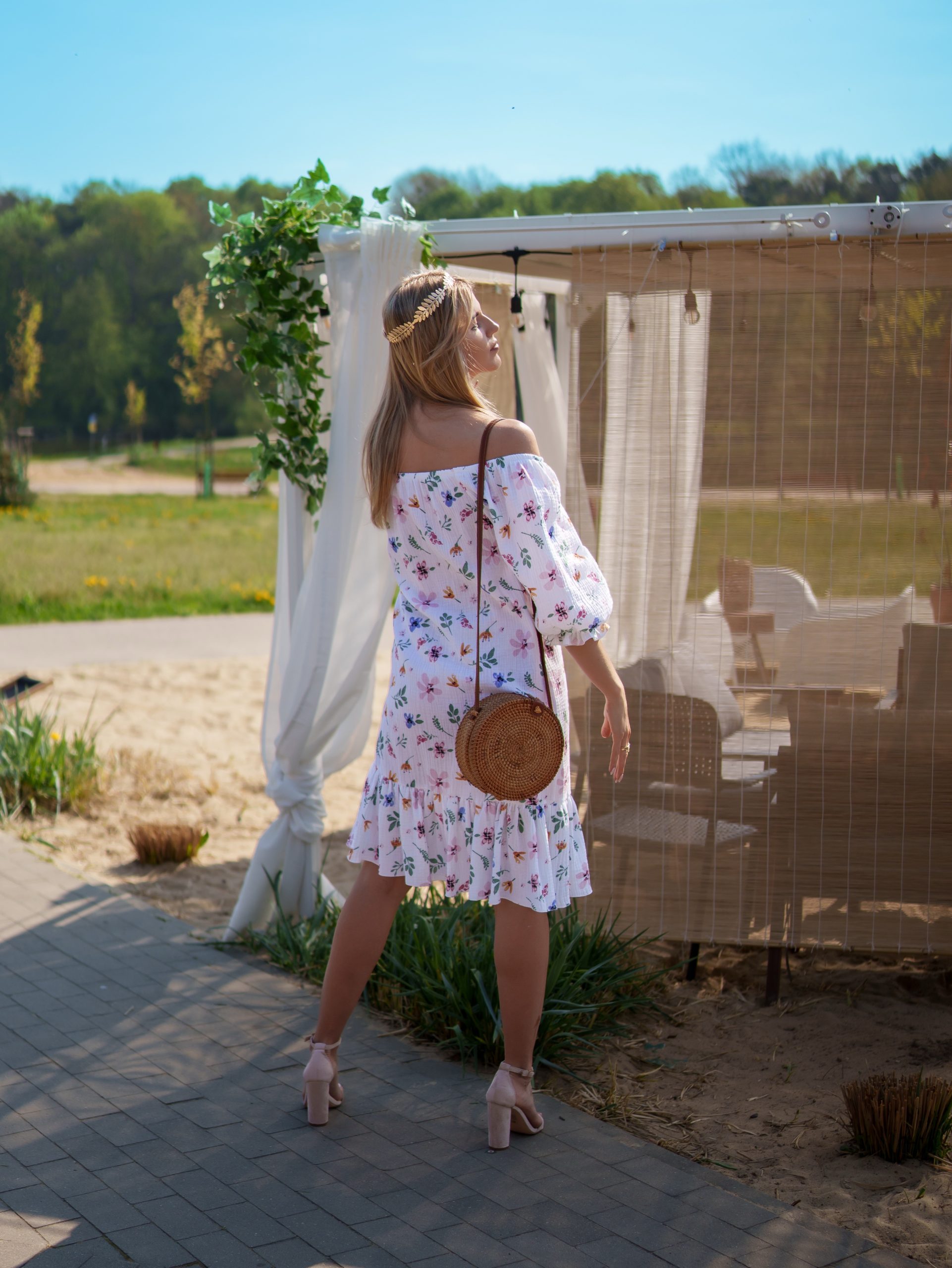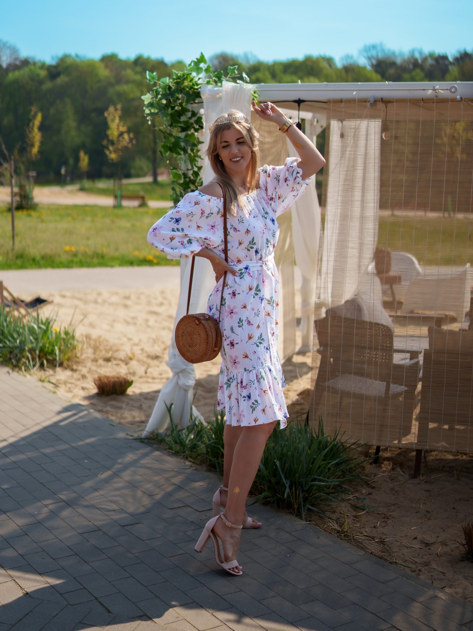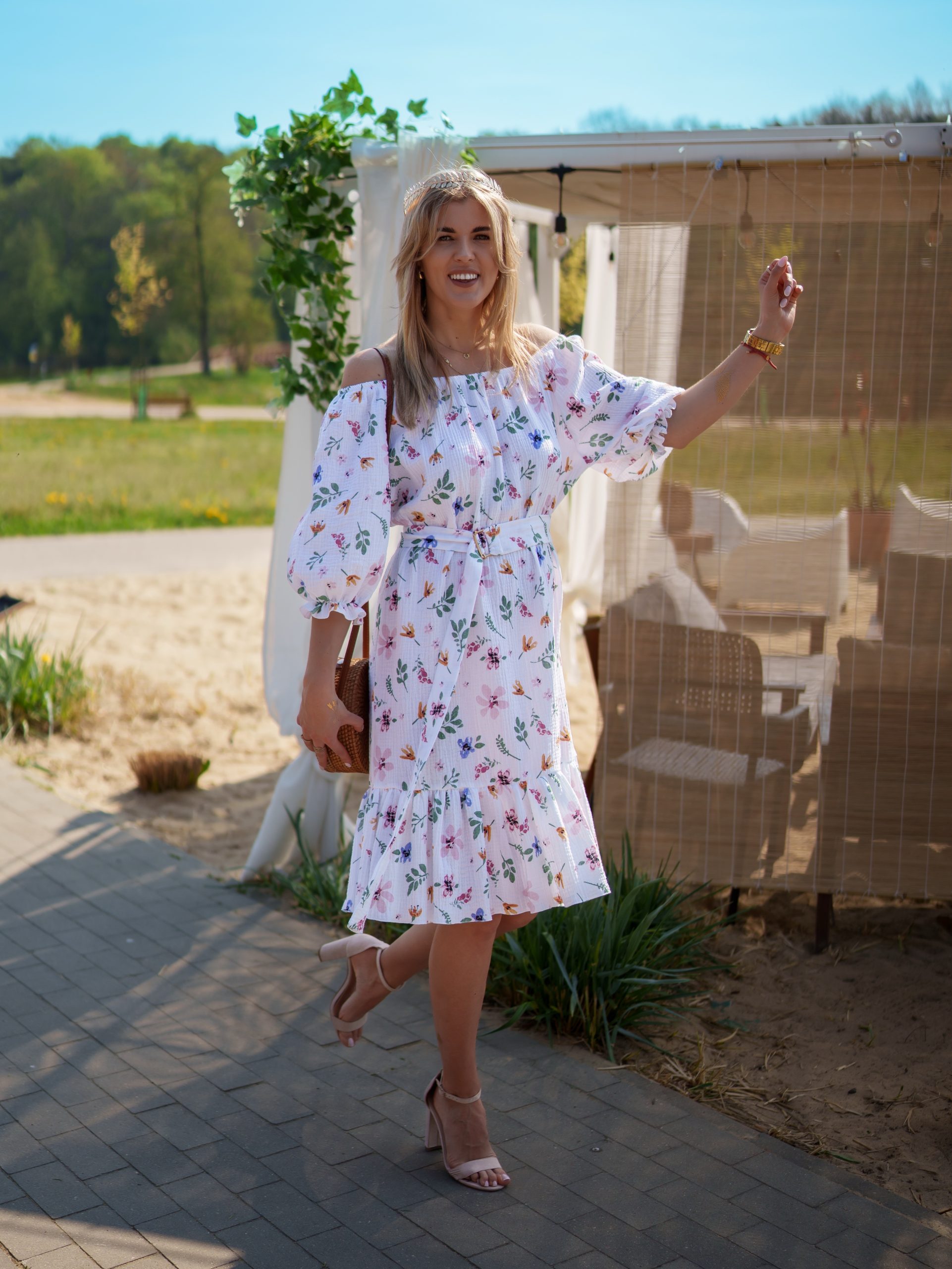Strona główna Boho Sukienka muślinowa 3w1 z paskiem biała w kwiaty