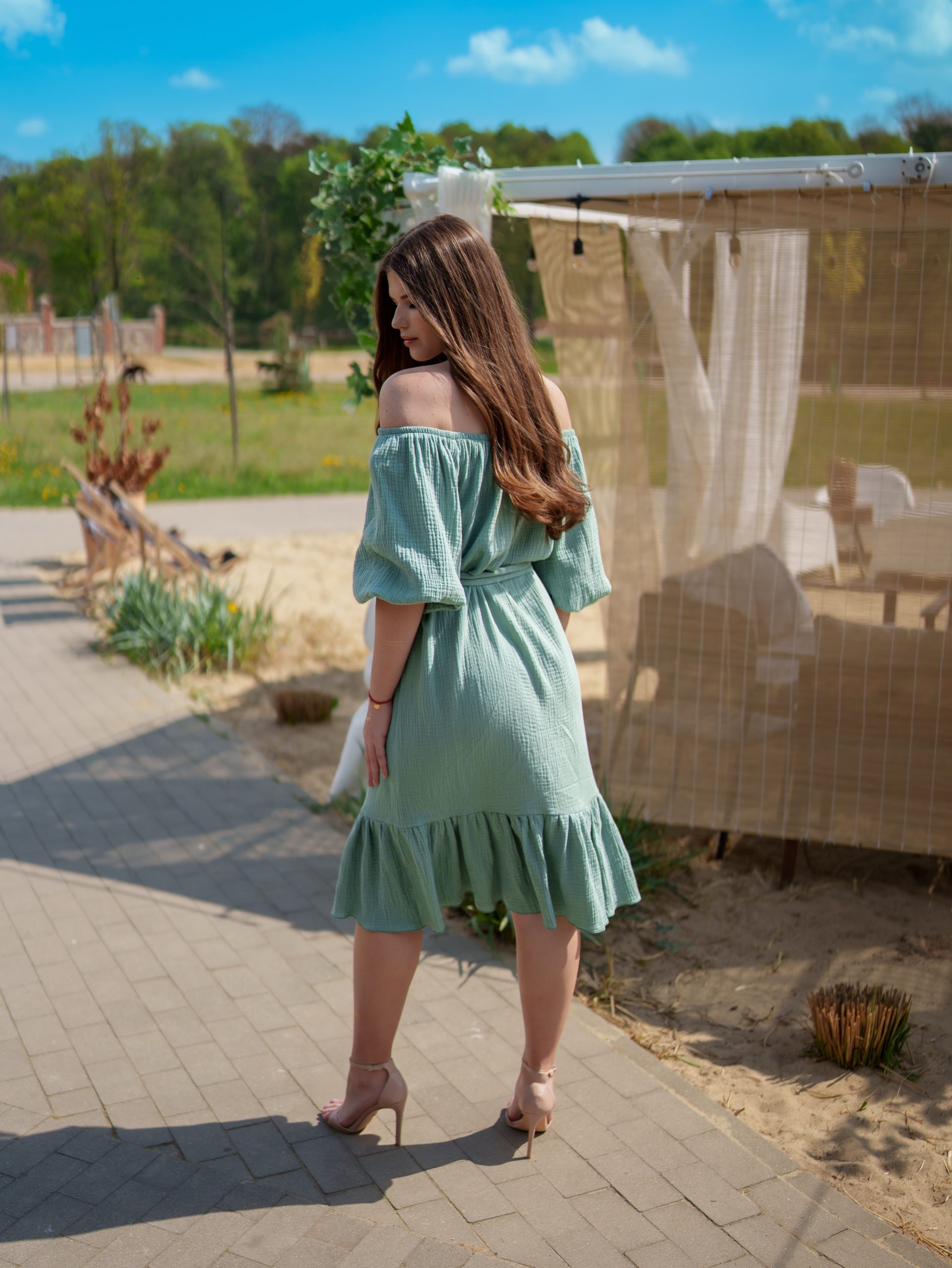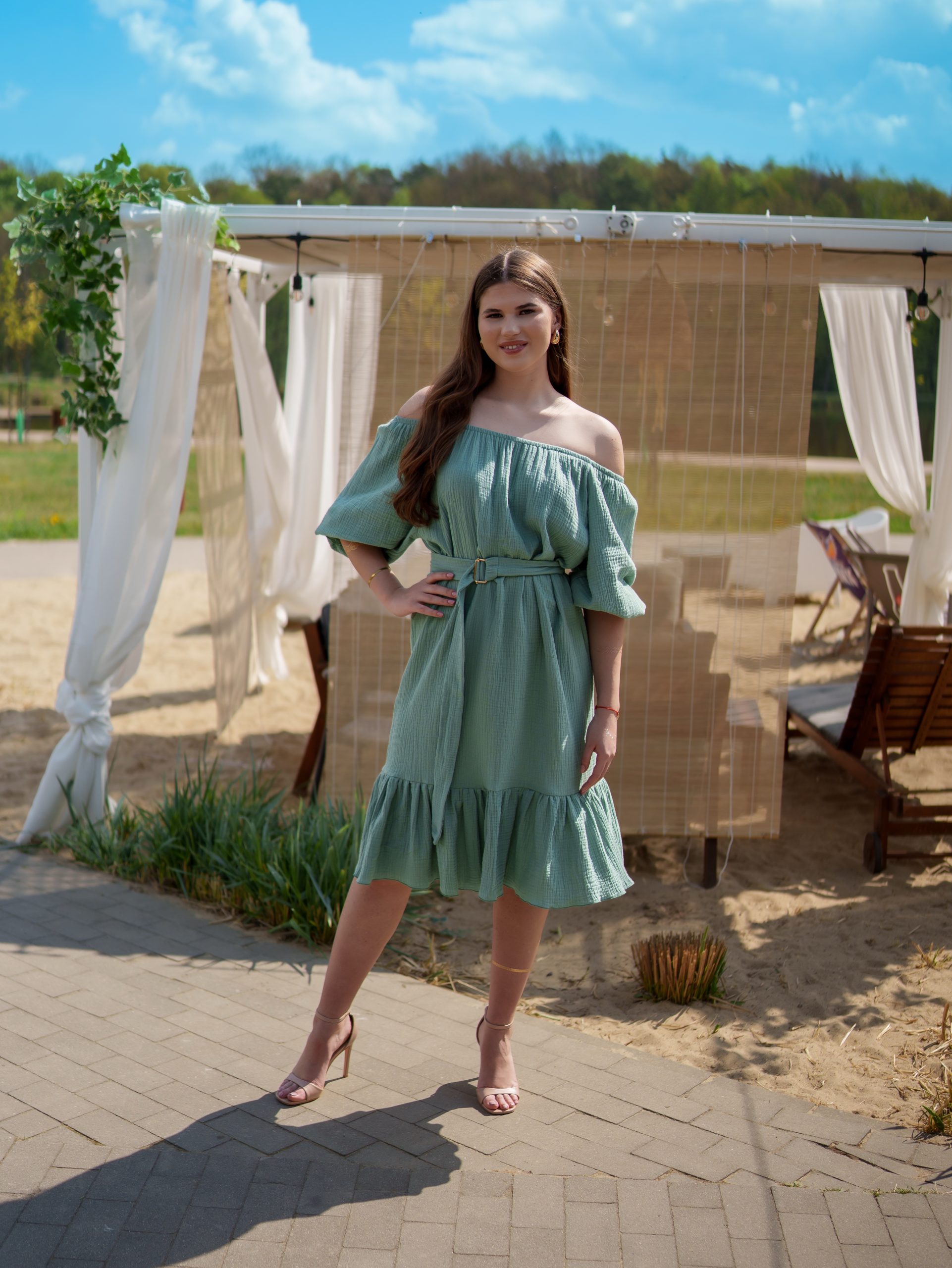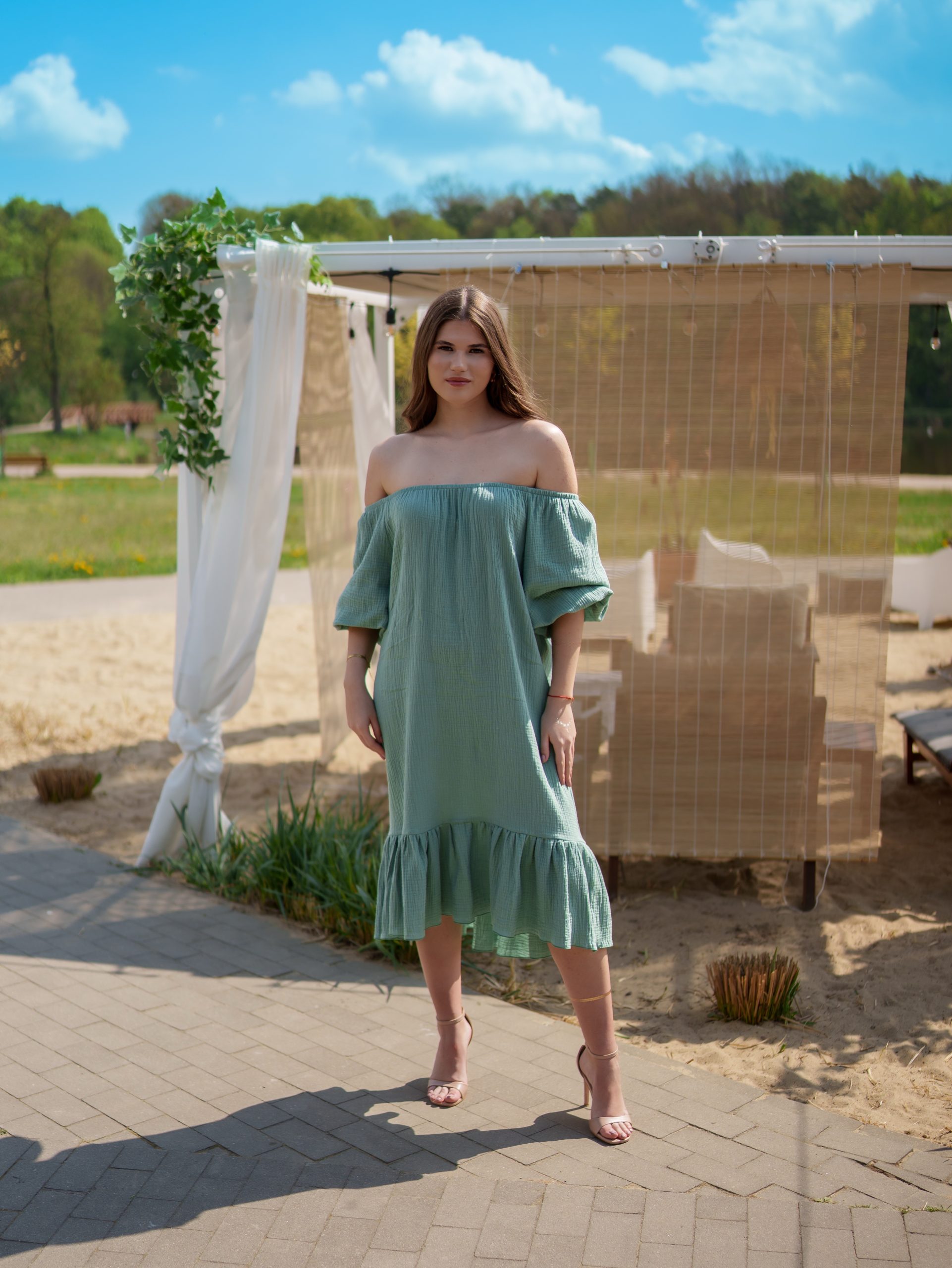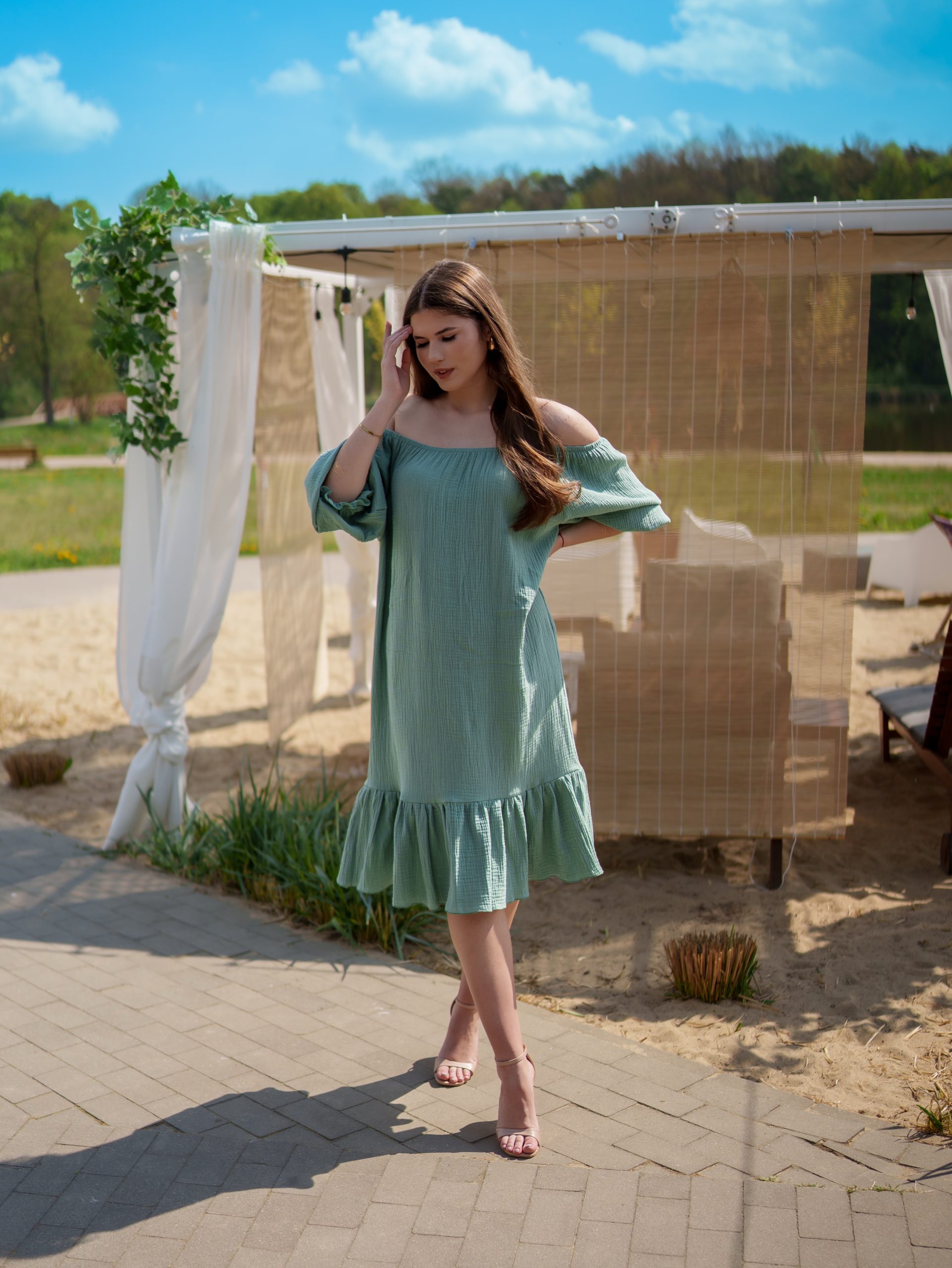 Strona główna Boho Sukienka muślinowa 3w1 z paskiem szałwiowy