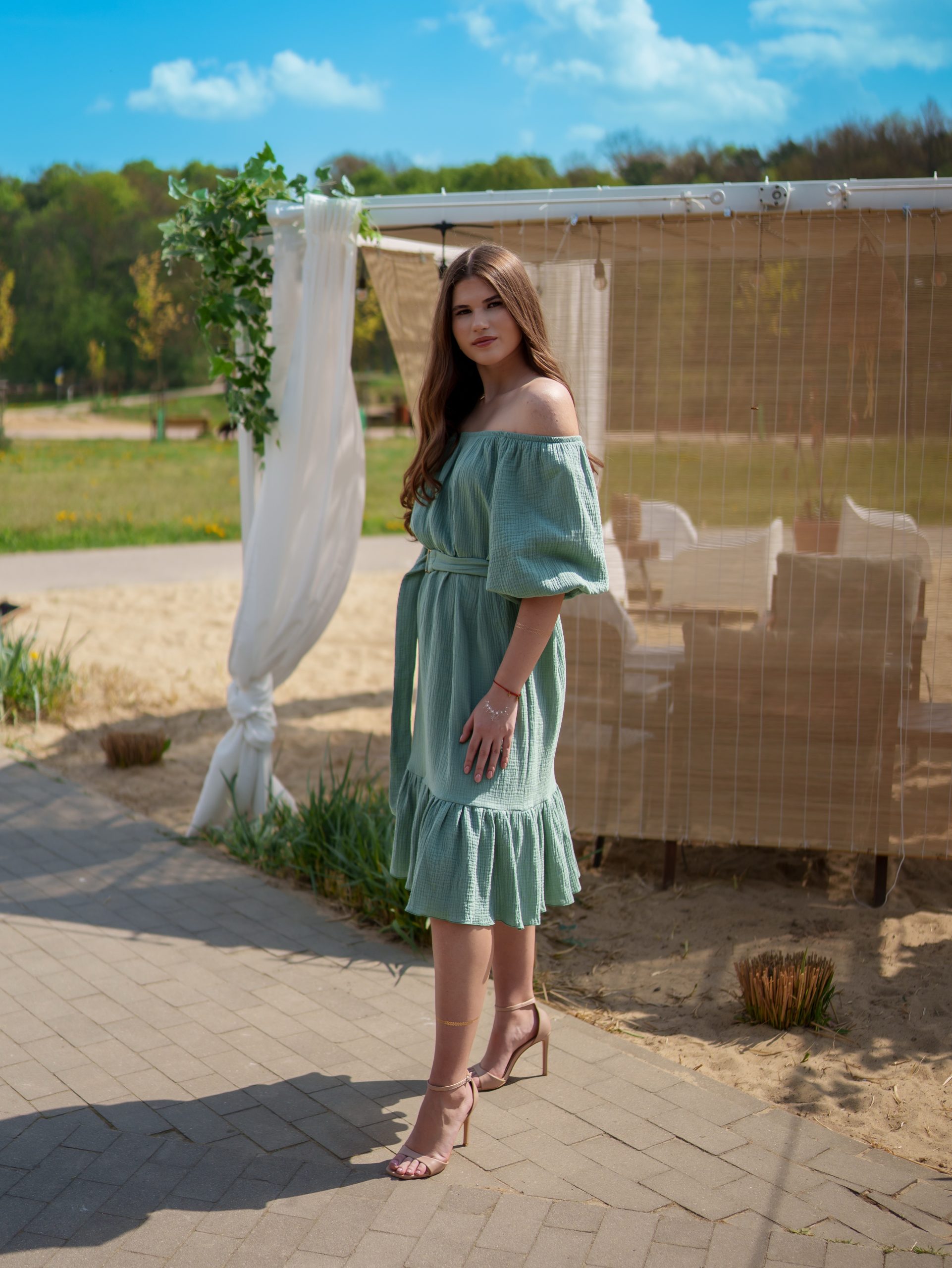 Sukienka muślinowa 3w1 z paskiem szałwiowy